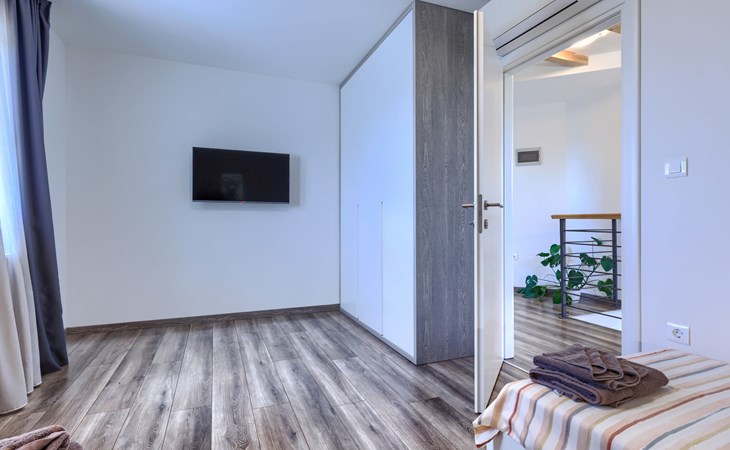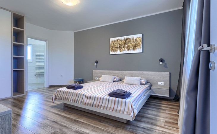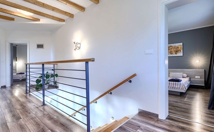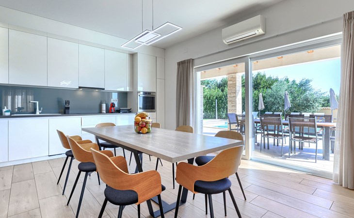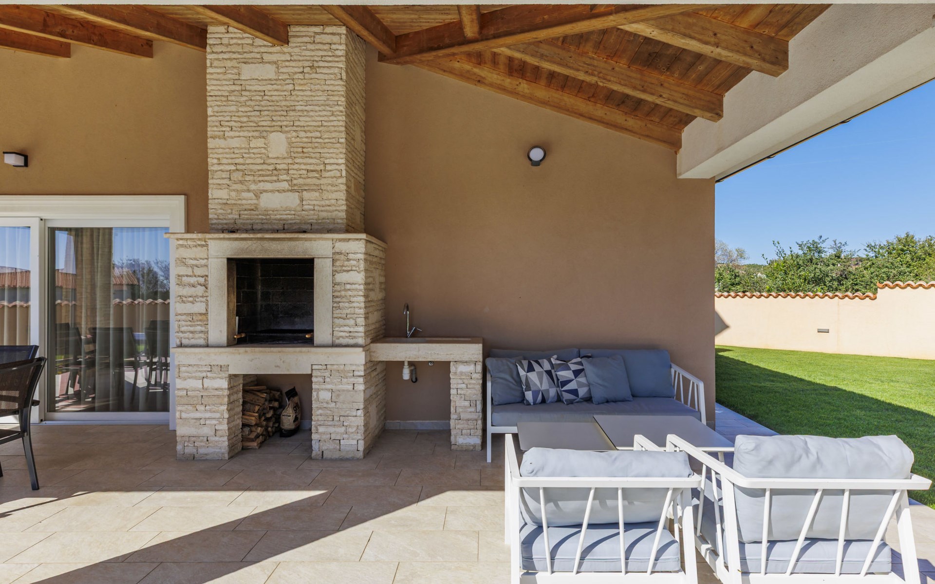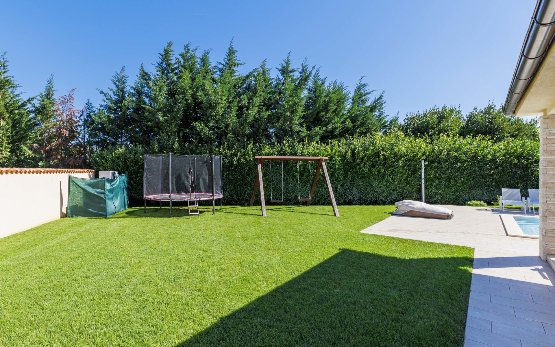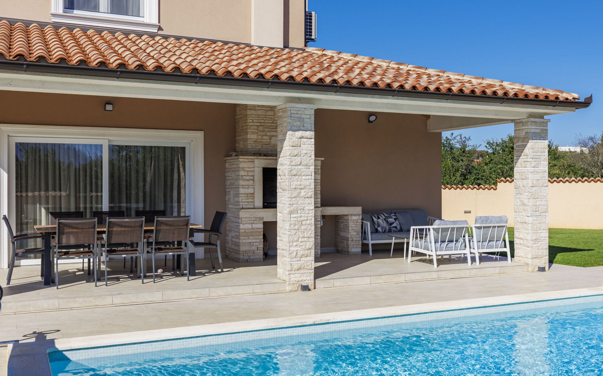 Villa "Magica", auf 2 Stockwerken. Im Weiler Loborika, 6 km vom Zentrum von Pula, 6 km vom Zentrum von Marčana, ruhige, sonnige Lage, 8 km vom Meer. Zur Alleinbenutzung: Grundstück 1'200 m2 (eingezäunt), Garten mit Pflanzen und Blumen, Schwimmbad eckig, beheizt (8 x 4 m, 140 cm tief, saisonale Verfügbarkeit: 01.Apr. - 01.Nov.) mit Innentreppe. Aussendusche, Terrasse (30 m2), Gartenmöbel, Grill, Kinderspielplatz (Schaukel), Poolpflege durch den Besitzer/Gärtner. Im Hause: Internetzugang, Trampolin, Waschmaschine. Parkplatz (für 4 Autos) beim Haus auf dem Grundstück. Einkaufsgeschäft 2.3 km, Supermarkt 6 km, Restaurant 2 km, Café 2.3 km, Bushaltestelle 2.3 km, Sandstrand 16 km, Kieselstrand 13 km. Tennis 15 km, Reitstall 5 km, Wanderwege ab Haus 100 m, Radweg 150 m. Nahe gelegene Sehenswürdigkeiten: Amphitheater 8 km, National park Brijuni 14 km, Nature park Rt. Kamenjak 18 km.