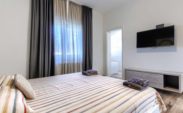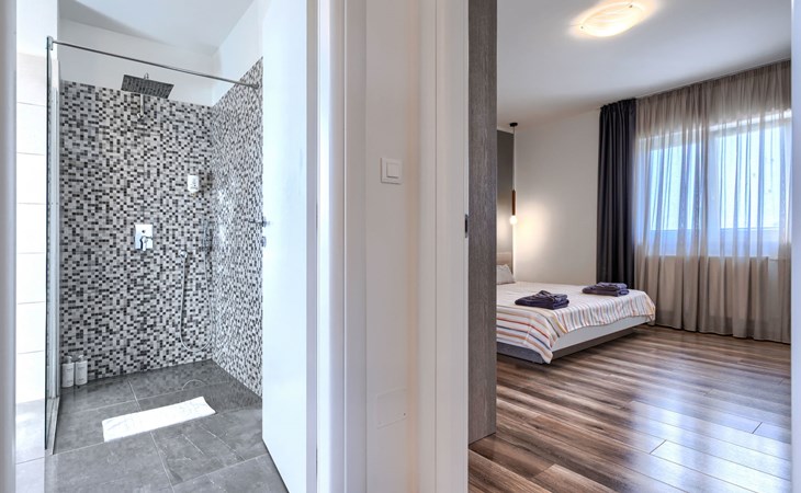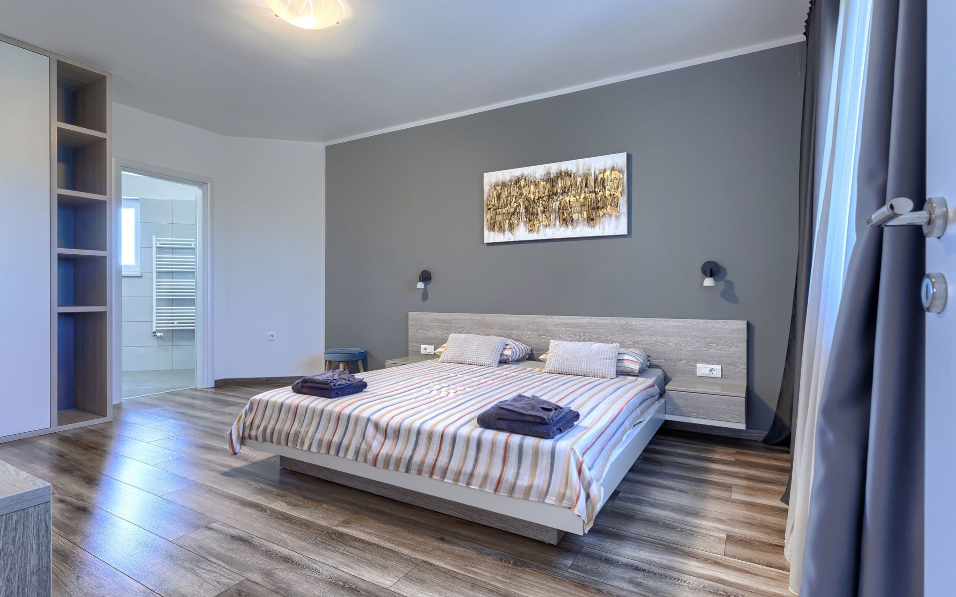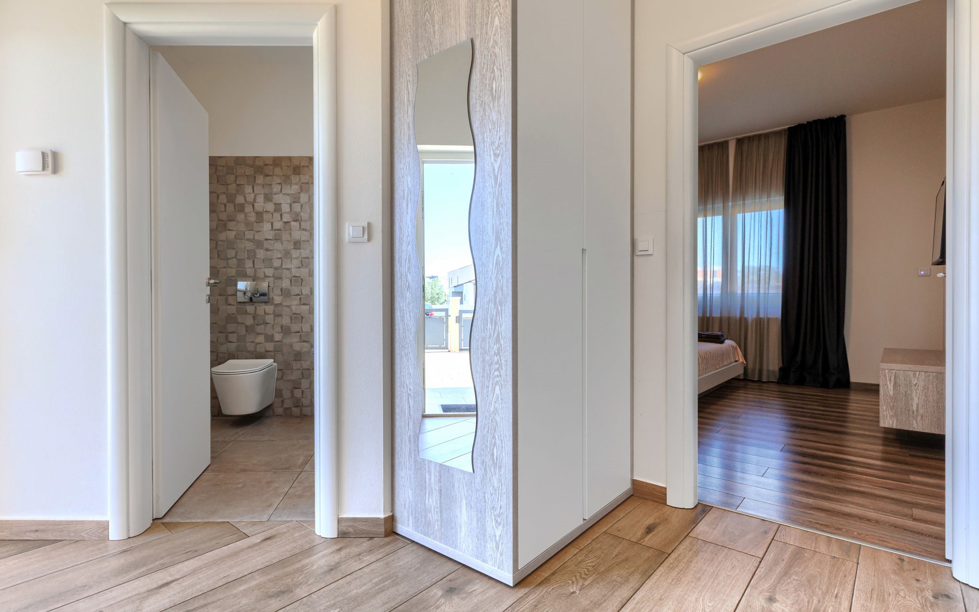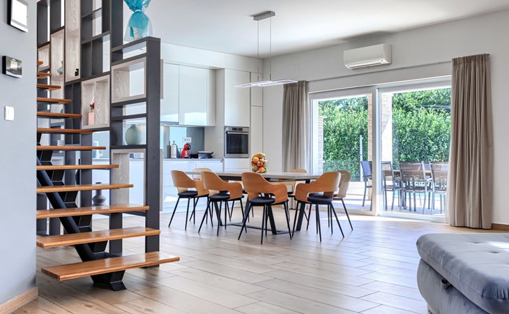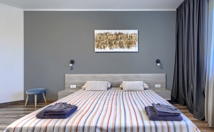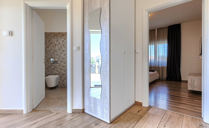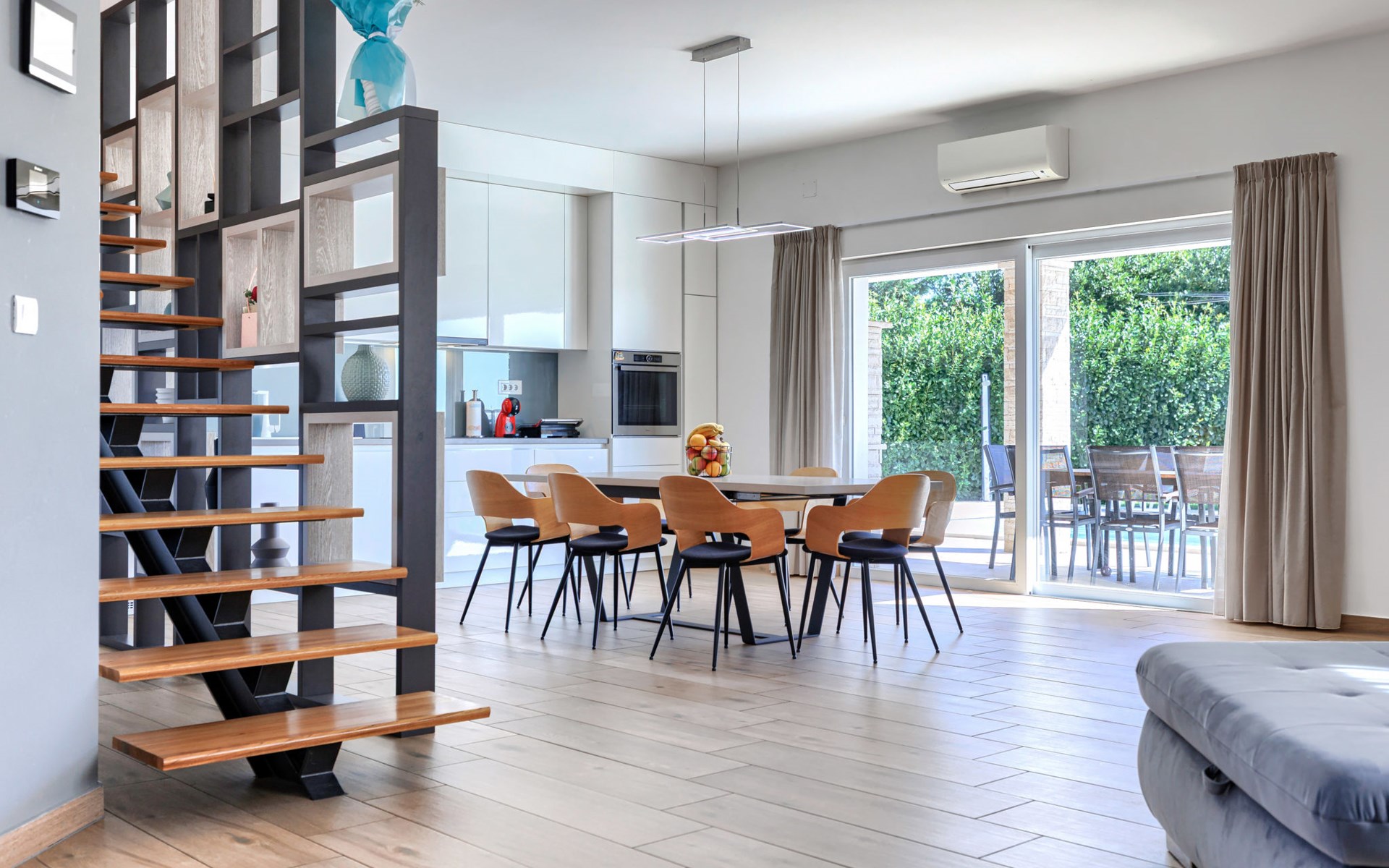 Villa "Magica", auf 2 Stockwerken. Im Weiler Loborika, 6 km vom Zentrum von Pula, 6 km vom Zentrum von Marčana, ruhige, sonnige Lage, 8 km vom Meer. Zur Alleinbenutzung: Grundstück 1'200 m2 (eingezäunt), Garten mit Pflanzen und Blumen, Schwimmbad eckig, beheizt (8 x 4 m, 140 cm tief, saisonale Verfügbarkeit: 01.Apr. - 01.Nov.) mit Innentreppe. Aussendusche, Terrasse (30 m2), Gartenmöbel, Grill, Kinderspielplatz (Schaukel), Poolpflege durch den Besitzer/Gärtner. Im Hause: Internetzugang, Trampolin, Waschmaschine. Parkplatz (für 4 Autos) beim Haus auf dem Grundstück. Einkaufsgeschäft 2.3 km, Supermarkt 6 km, Restaurant 2 km, Café 2.3 km, Bushaltestelle 2.3 km, Sandstrand 16 km, Kieselstrand 13 km. Tennis 15 km, Reitstall 5 km, Wanderwege ab Haus 100 m, Radweg 150 m. Nahe gelegene Sehenswürdigkeiten: Amphitheater 8 km, National park Brijuni 14 km, Nature park Rt. Kamenjak 18 km.