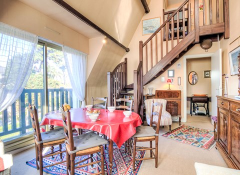 Die Wohnung besteht aus- im ersten Stock:einem Hauptraum mit einer voll ausgestatteten Küche und einem Wohnbereich, der auf eine Loggia führt, die wiederum auf das Tal führt, einem Schlafzimmer (mit einem Bett von 160 x 200 cm), einem Duschbad und einem separaten WC - im zweiten Stock: einem Schlafzimmer im Zwischengeschoss (20 m2) mit Duschbad und WC.