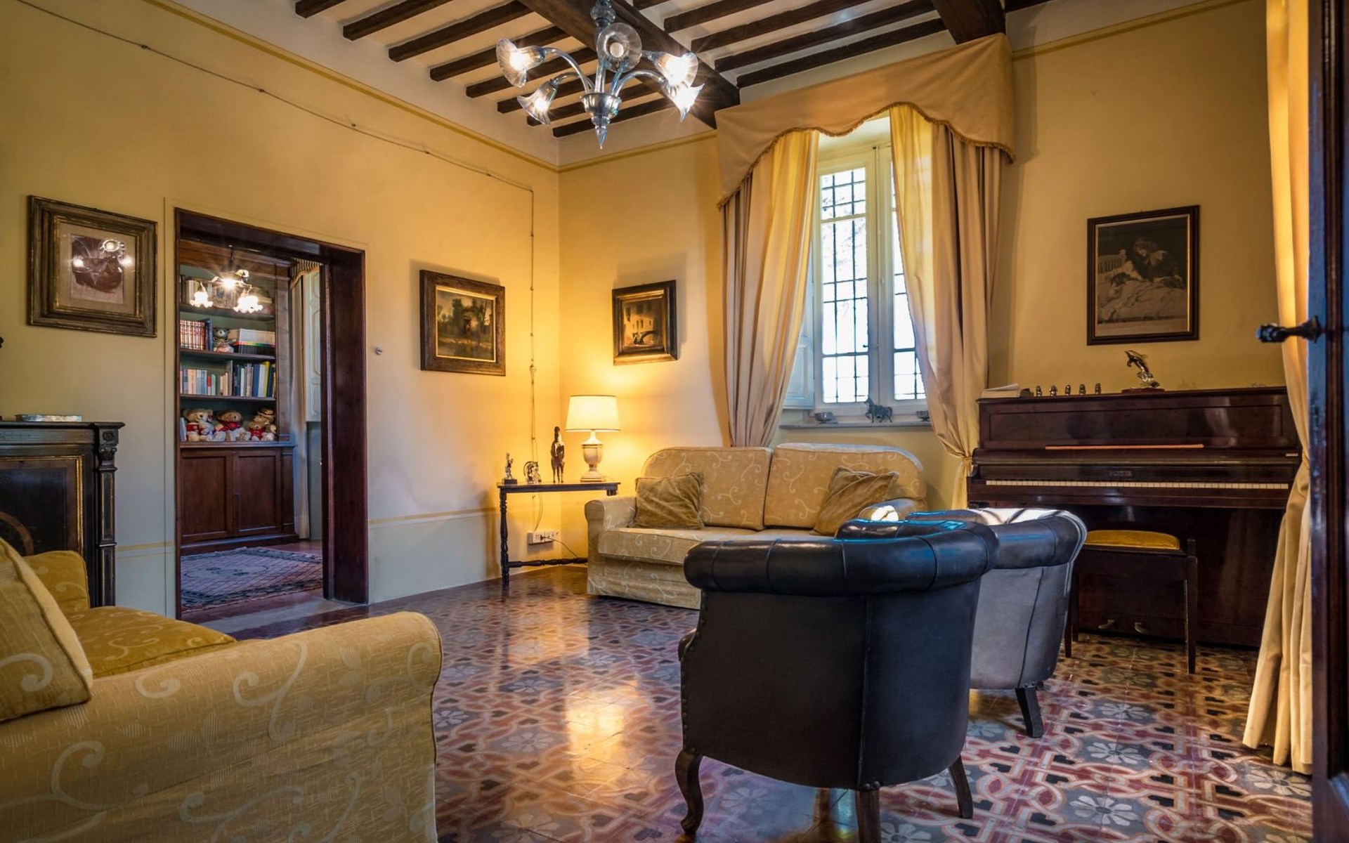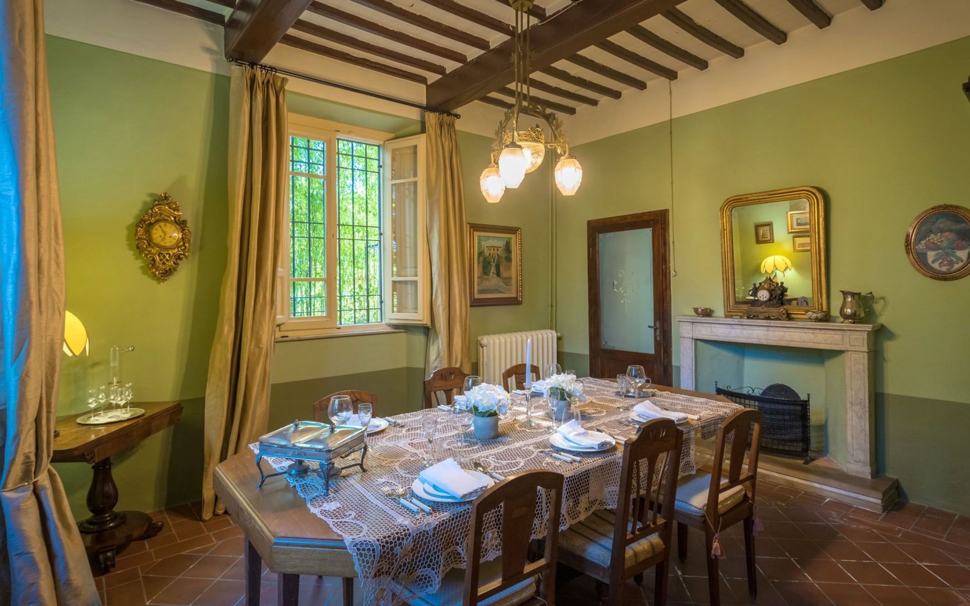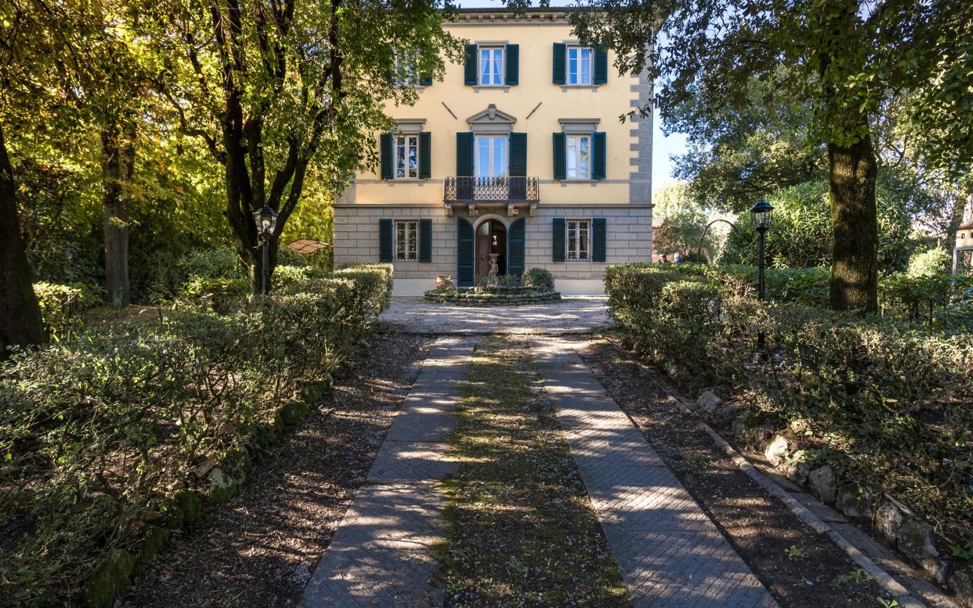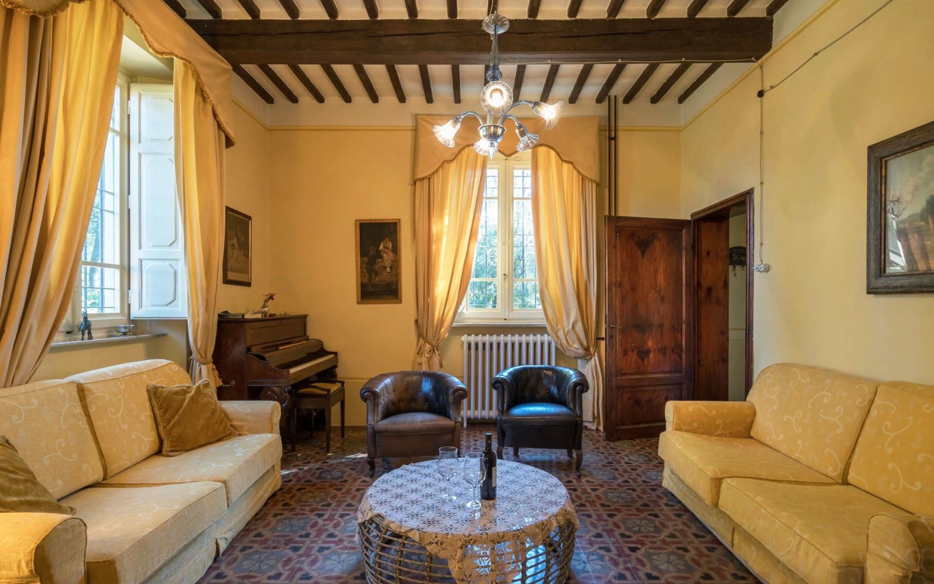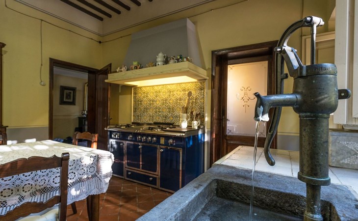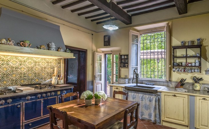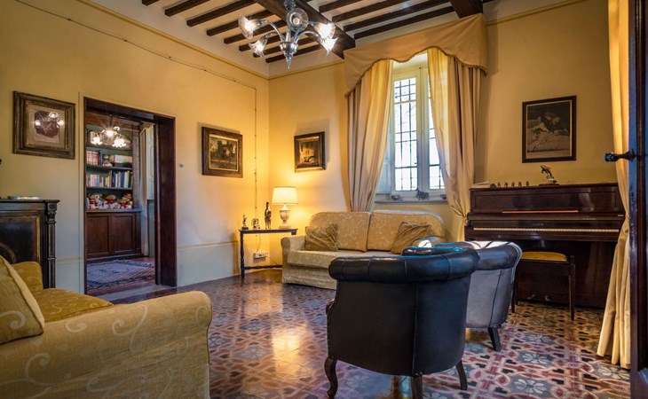 Das Haus bietet Platz für bis zu 10 Personen. WI-FI im gesamten Haus - Klimaanlage in den Schlafzimmern - Heizung in der gesamten Villa. ERDGESCHOSS: Eingangshalle mit zentralem Zugang. Auf der rechten Seite befindet sich das Unterhaltungszimmer mit Sofas und Sesseln, Flachbildfernseher, Klavier und Arbeitszimmer mit Bücherregal; auf der linken Seite befindet sich das Esszimmer und die schöne und geräumige Küche im toskanischen Stil. Von der Küche aus hat man direkten Zugang zum Gartenpavillon, der sich hervorragend für Mahlzeiten eignet. Im Erdgeschoss befindet sich das erste Badezimmer mit Dusche. ERSTES STOCKWERK Über die schöne Steintreppe gelangt man in den ersten Stock. Hier betritt man direkt das Wohnzimmer mit Blick auf die zentrale Terrasse mit Blick auf Altopascio. Auf der rechten Seite befinden sich das erste Schlafzimmer und das Bad, davor ein Vorbad mit Sofa, auf der linken Seite die beiden anderen Schlafzimmer. Das Badezimmer ist groß, aus Marmor, mit emaillierter gusseiserner Badewanne und flexibler Dusche. Die sanitären Anlagen sind stilvoll. ZWEITES OBERGESCHOSS Im zweiten Obergeschoss finden Sie die gleiche Aufteilung: rechts das Hauptschlafzimmer mit Wohnzimmer und Zugang zum Hauptbad und links ein zweites Schlafzimmer. Das Badezimmer ist edel, mit Bruyèreholz, einer Whirlpool-Badewanne und einer Sauna. Ein kleines Bad, ebenfalls mit Dusche, befindet sich im Zwischengeschoss des Treppenhauses. Die Elektroinstallation wurde komplett modernisiert, wobei die alte Technik des geflochtenen Außenkabels verwendet wurde. Die Schalter sind aus wertvoller Keramik im antiken Stil.