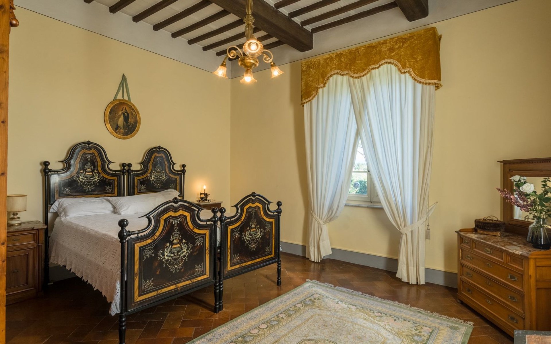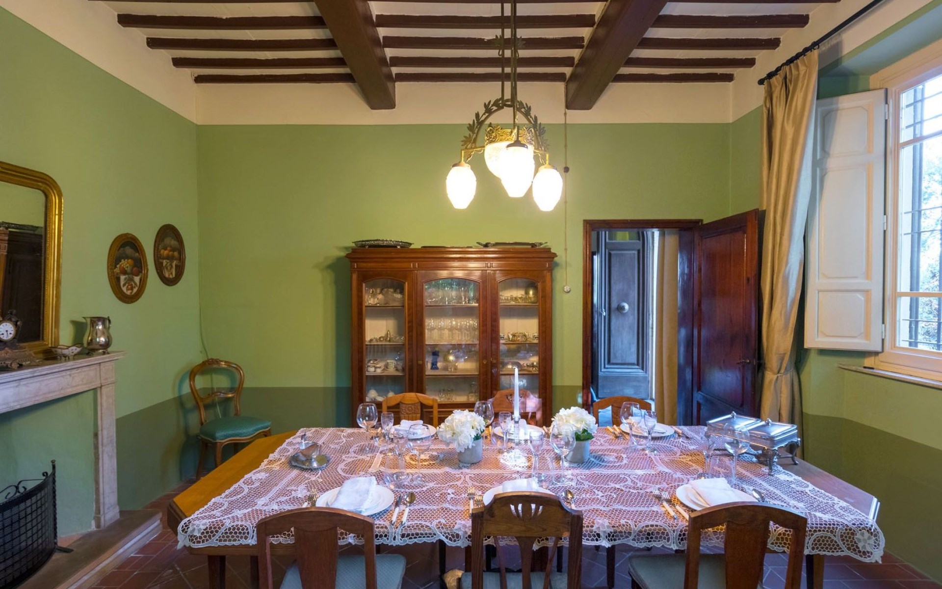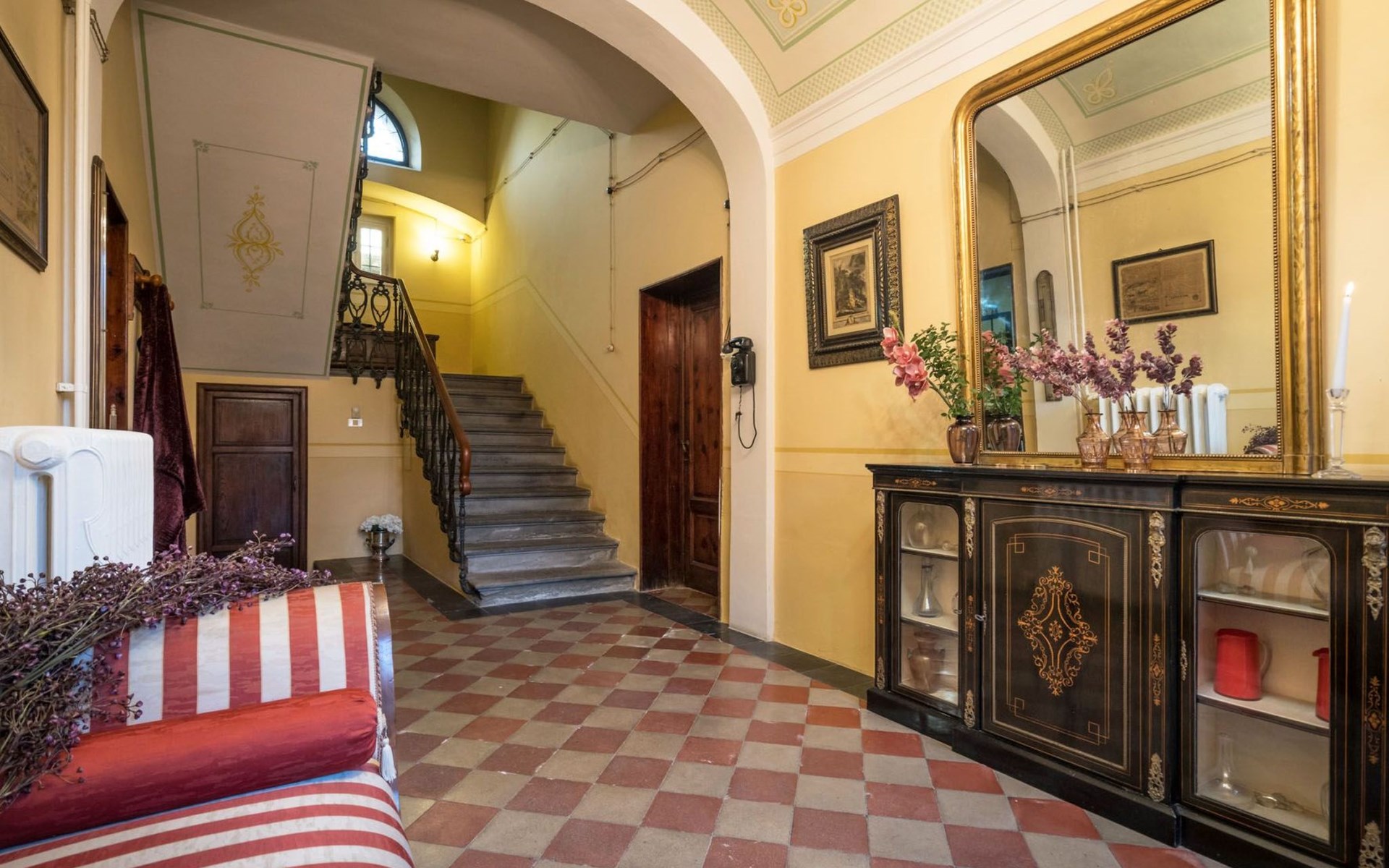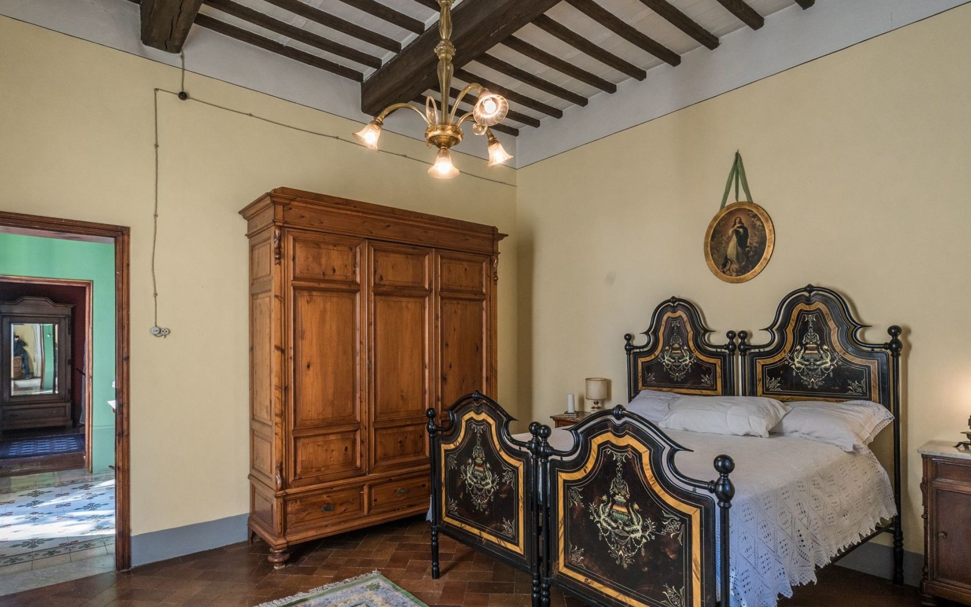 Das Haus bietet Platz für bis zu 10 Personen. WI-FI im gesamten Haus - Klimaanlage in den Schlafzimmern - Heizung in der gesamten Villa. ERDGESCHOSS: Eingangshalle mit zentralem Zugang. Auf der rechten Seite befindet sich das Unterhaltungszimmer mit Sofas und Sesseln, Flachbildfernseher, Klavier und Arbeitszimmer mit Bücherregal; auf der linken Seite befindet sich das Esszimmer und die schöne und geräumige Küche im toskanischen Stil. Von der Küche aus hat man direkten Zugang zum Gartenpavillon, der sich hervorragend für Mahlzeiten eignet. Im Erdgeschoss befindet sich das erste Badezimmer mit Dusche. ERSTES STOCKWERK Über die schöne Steintreppe gelangt man in den ersten Stock. Hier betritt man direkt das Wohnzimmer mit Blick auf die zentrale Terrasse mit Blick auf Altopascio. Auf der rechten Seite befinden sich das erste Schlafzimmer und das Bad, davor ein Vorbad mit Sofa, auf der linken Seite die beiden anderen Schlafzimmer. Das Badezimmer ist groß, aus Marmor, mit emaillierter gusseiserner Badewanne und flexibler Dusche. Die sanitären Anlagen sind stilvoll. ZWEITES OBERGESCHOSS Im zweiten Obergeschoss finden Sie die gleiche Aufteilung: rechts das Hauptschlafzimmer mit Wohnzimmer und Zugang zum Hauptbad und links ein zweites Schlafzimmer. Das Badezimmer ist edel, mit Bruyèreholz, einer Whirlpool-Badewanne und einer Sauna. Ein kleines Bad, ebenfalls mit Dusche, befindet sich im Zwischengeschoss des Treppenhauses. Die Elektroinstallation wurde komplett modernisiert, wobei die alte Technik des geflochtenen Außenkabels verwendet wurde. Die Schalter sind aus wertvoller Keramik im antiken Stil.