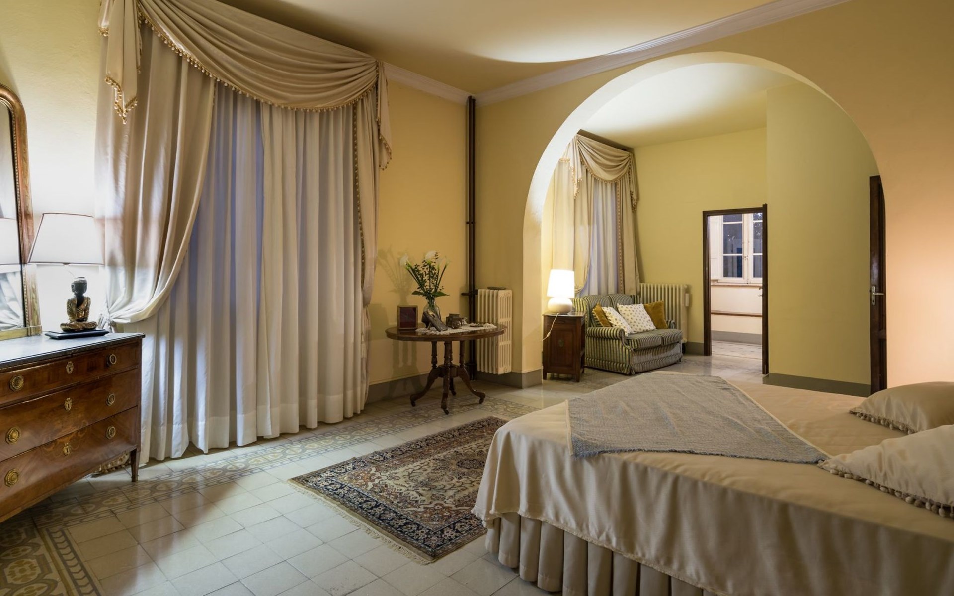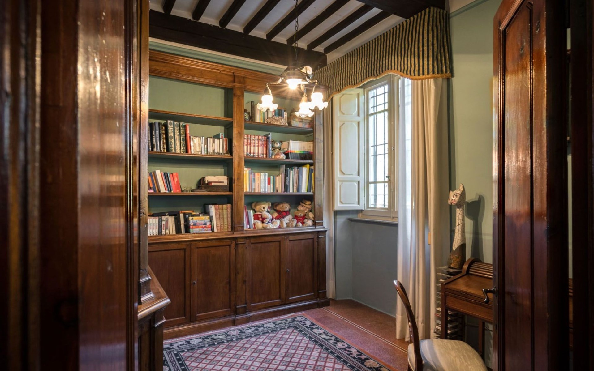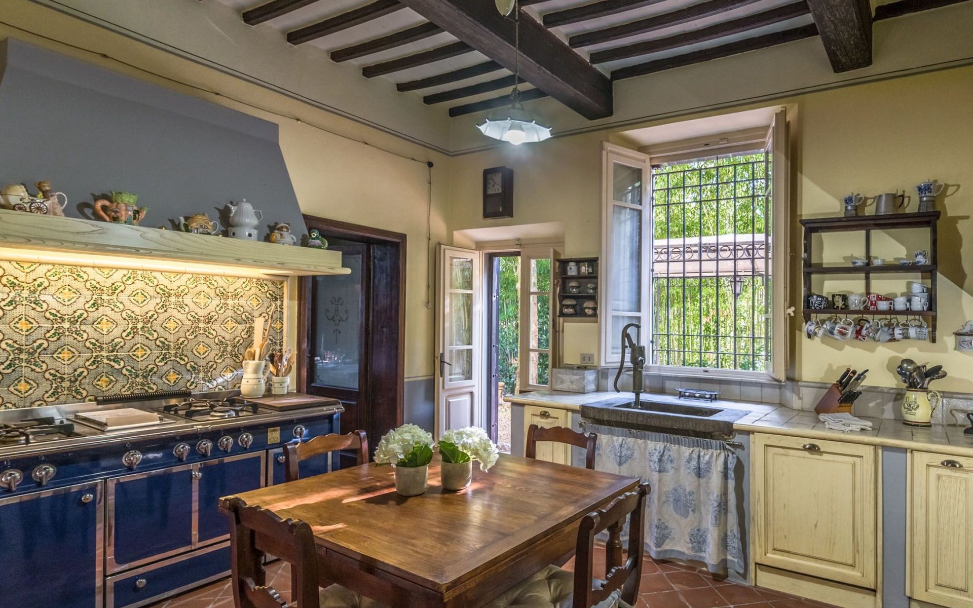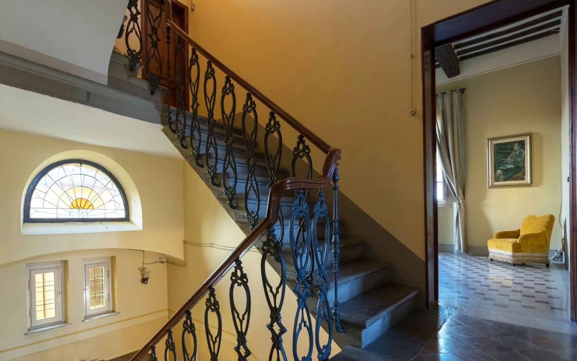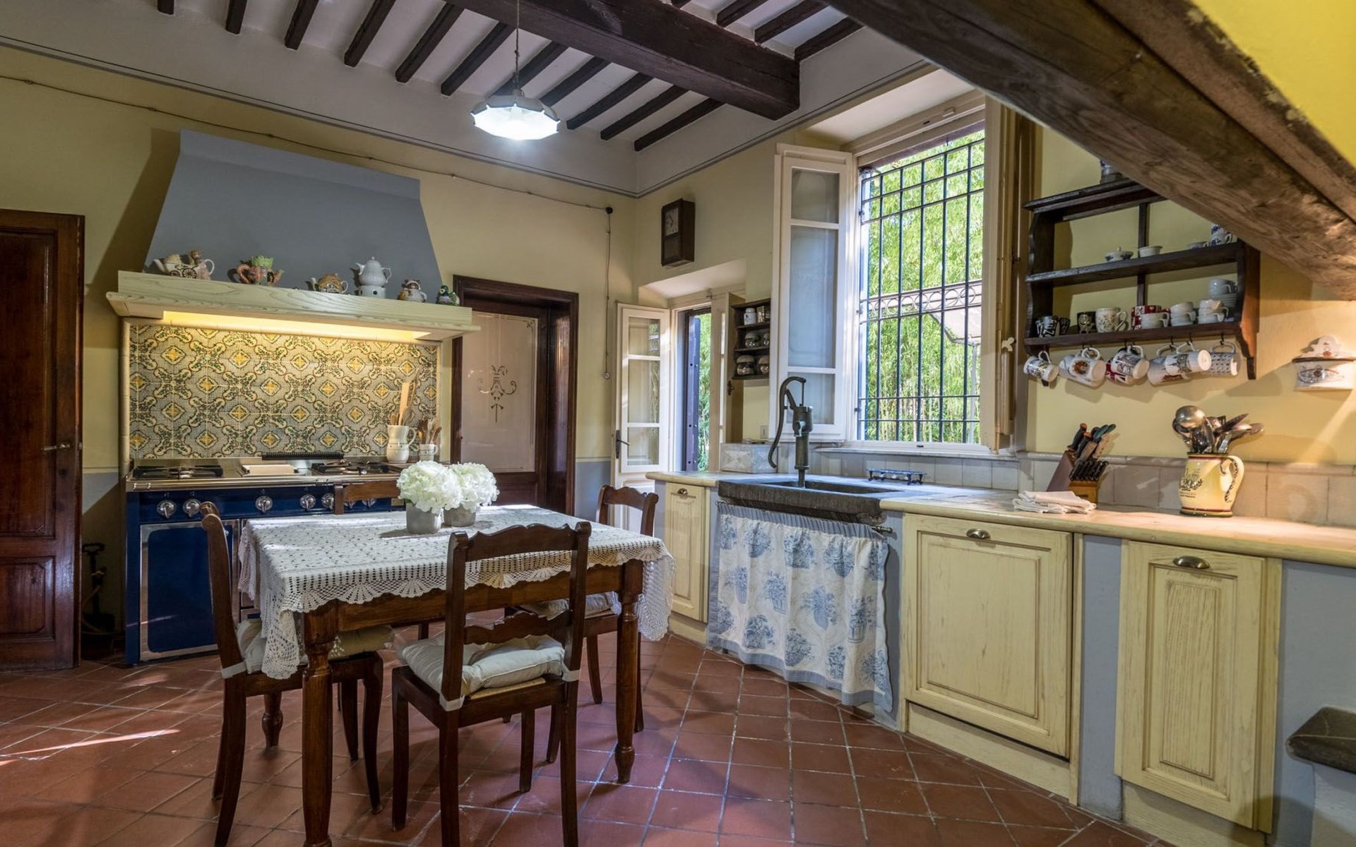 Das Haus bietet Platz für bis zu 10 Personen. WI-FI im gesamten Haus - Klimaanlage in den Schlafzimmern - Heizung in der gesamten Villa. ERDGESCHOSS: Eingangshalle mit zentralem Zugang. Auf der rechten Seite befindet sich das Unterhaltungszimmer mit Sofas und Sesseln, Flachbildfernseher, Klavier und Arbeitszimmer mit Bücherregal; auf der linken Seite befindet sich das Esszimmer und die schöne und geräumige Küche im toskanischen Stil. Von der Küche aus hat man direkten Zugang zum Gartenpavillon, der sich hervorragend für Mahlzeiten eignet. Im Erdgeschoss befindet sich das erste Badezimmer mit Dusche. ERSTES STOCKWERK Über die schöne Steintreppe gelangt man in den ersten Stock. Hier betritt man direkt das Wohnzimmer mit Blick auf die zentrale Terrasse mit Blick auf Altopascio. Auf der rechten Seite befinden sich das erste Schlafzimmer und das Bad, davor ein Vorbad mit Sofa, auf der linken Seite die beiden anderen Schlafzimmer. Das Badezimmer ist groß, aus Marmor, mit emaillierter gusseiserner Badewanne und flexibler Dusche. Die sanitären Anlagen sind stilvoll. ZWEITES OBERGESCHOSS Im zweiten Obergeschoss finden Sie die gleiche Aufteilung: rechts das Hauptschlafzimmer mit Wohnzimmer und Zugang zum Hauptbad und links ein zweites Schlafzimmer. Das Badezimmer ist edel, mit Bruyèreholz, einer Whirlpool-Badewanne und einer Sauna. Ein kleines Bad, ebenfalls mit Dusche, befindet sich im Zwischengeschoss des Treppenhauses. Die Elektroinstallation wurde komplett modernisiert, wobei die alte Technik des geflochtenen Außenkabels verwendet wurde. Die Schalter sind aus wertvoller Keramik im antiken Stil.