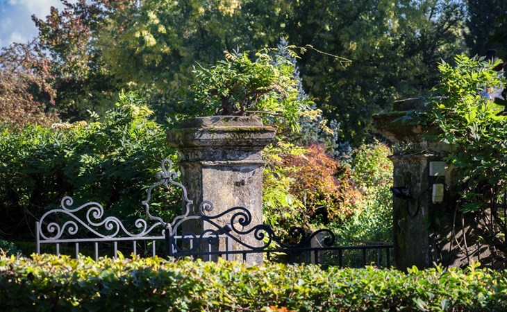 - komplett eingefriedet (mit Mauer, Zaun oder Hecke)