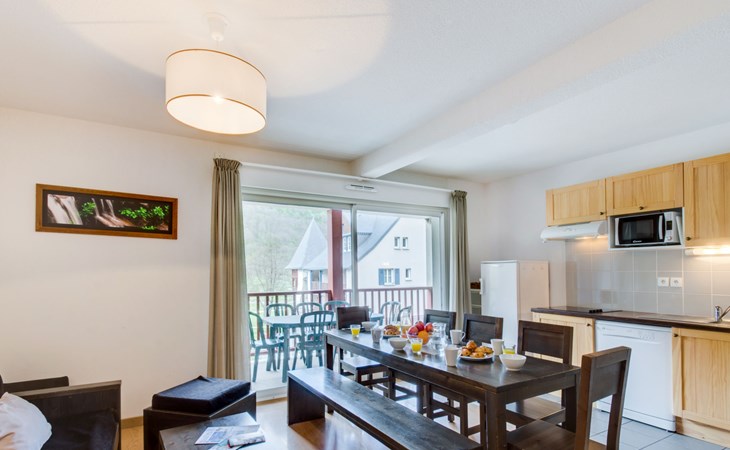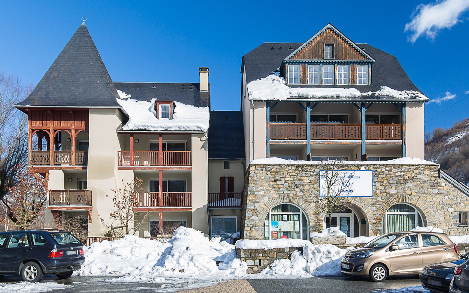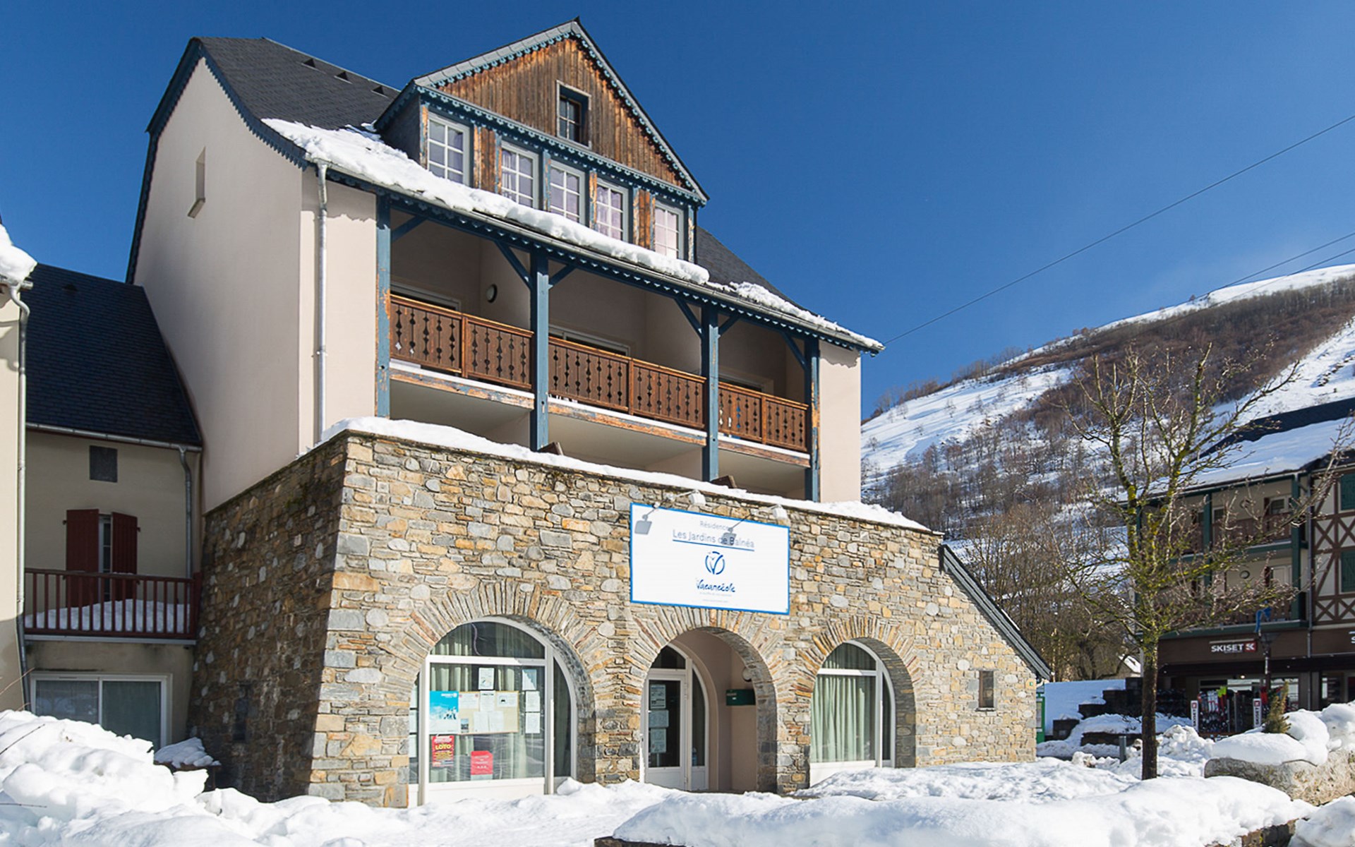 Residenz "Les Jardins de Balnéa". 5 Häuser in der Residenz. 69 Wohnungen in der Residenz. Im Ortszentrum von Loudenvielle, 200 m vom See. In der Anlage: Empfang. Parkplatz (beschränkte Anzahl). Lebensmittelgeschäft 50 m, Supermarkt, Bar, Thermalbad "Centre Thermo-Ludique Balnéa" 100 m. Gondelbahn 100 m. Bekannte Skigebiete sind gut erreichbar: Station de Val Louron 8 km, Station de Peyragudes 14 km. Bekannte Seen in der Umgebung sind gut erreichbar: Lac de Génos-Loudenvielle 200 m. Bitte beachten: Das Foto ist nur ein Hausbeispiel.