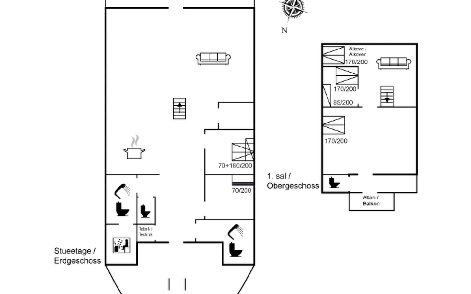 Einfamilienhaus, Baujahr 1970. 75 m vom Meer. Zur Alleinbenutzung: Grundstück 2'503 m2. Im Hause: Sauna, Waschmaschine, Wäschetrockner. Parkplatz beim Haus. E-Ladestation. Lebensmittelgeschäft 3 km. Der Besitzer akzeptiert keine Jugendgruppen.