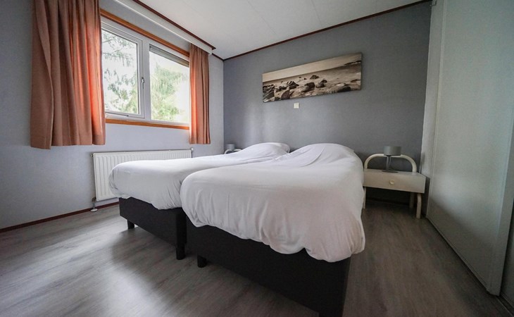 Das L'Avenir 4 ist ein freistehendes, ebenerdiges Chalet für 4 Personen. Das Wohnzimmer hat eine gemütliche Sitzecke mit Fernseher. Außerdem gibt es einen separaten Essbereich. In der Küche befindet sich u.a. ein Geschirrspüler, eine Mikrowelle und eine Kaffeemaschine. Es gibt 2 Schlafzimmer mit je 2 Einzelbetten. Das Badezimmer ist mit einer Dusche, einem Waschbecken und einer Toilette ausgestattet. Draußen lässt es sich auf der Terrasse mit Gartenmöbeln entspannen. Direkt am Ferienhaus kann 1 Auto geparkt werden und es gibt kostenloses WLAN.