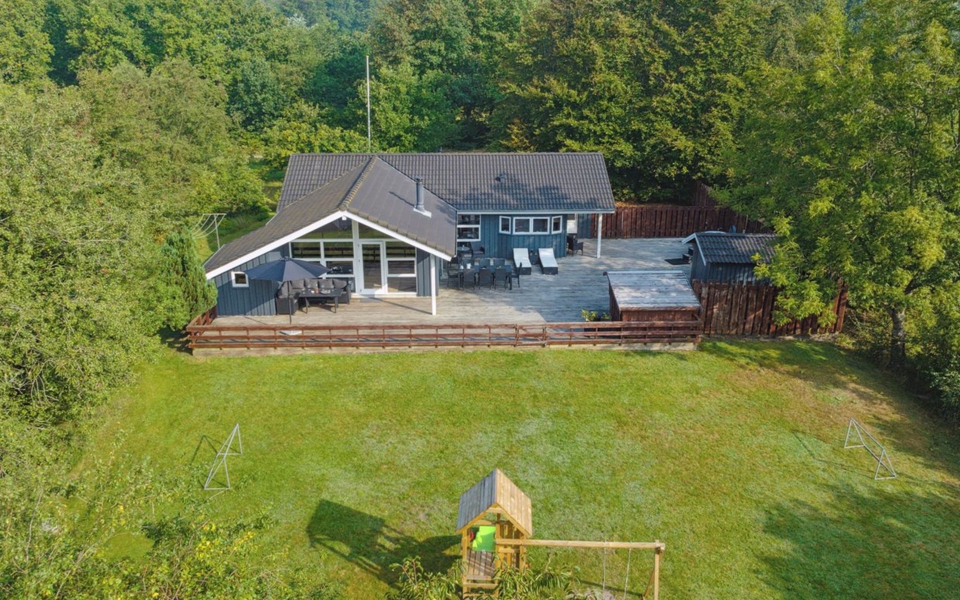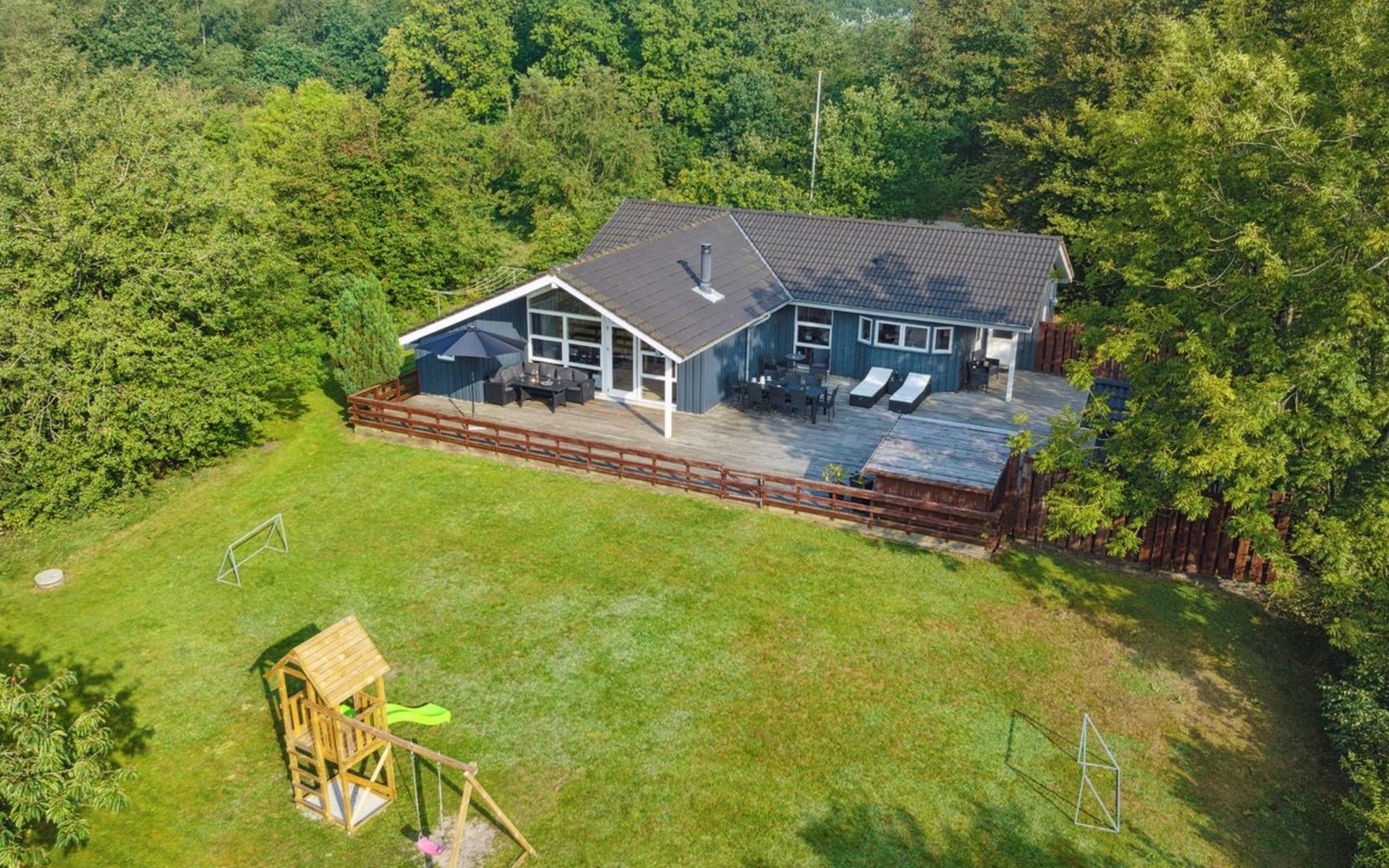Einfamilienhaus, Baujahr 2007. 30 km vom Meer. Zur Alleinbenutzung: Grundstück 850 m2, gepflegter Garten. Grill (Schaukel). Im Hause: Sauna, Waschmaschine, Wäschetrockner. Parkplatz beim Haus. E-Ladestation. Lebensmittelgeschäft 600 m. Der Besitzer akzeptiert keine Jugendgruppen.