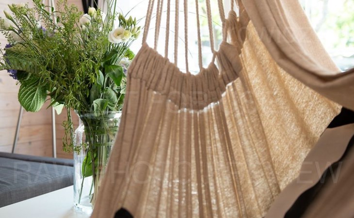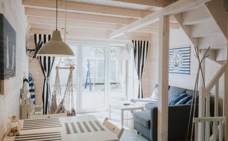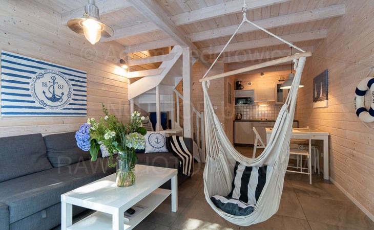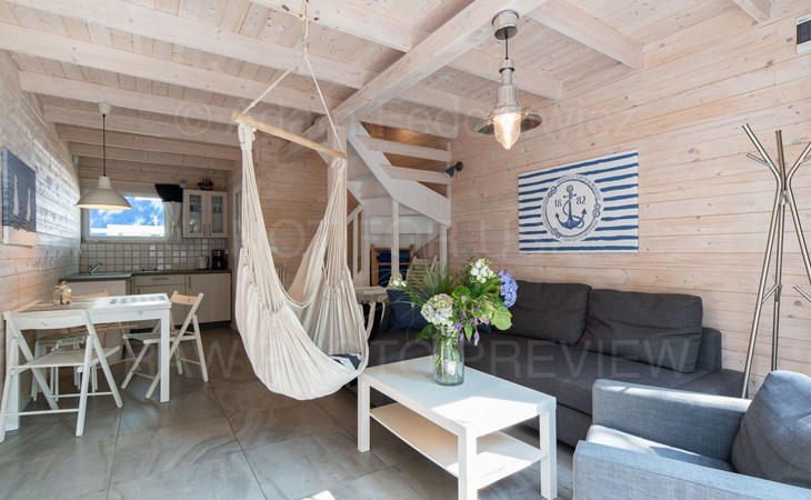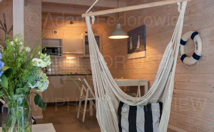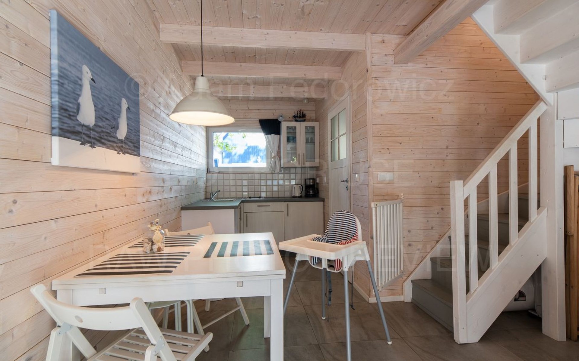 Die Inneneinrichtung des Ferienhauses wurde mit Blick auf Komfort und Funktionalität für 6 Personen konzipiert. Ausgestattet mit zwei gemütlichen Schlafzimmern und einem Bad mit Dusche, bietet es ausreichend Komfort und Privatsphäre. Die Küchenzeile ist mit einem 2-Flammen-Herd, einer Kaffeemaschine und einem Wasserkocher ausgestattet, so dass Sie auch im Urlaub Ihre Lieblingsgerichte zubereiten können.