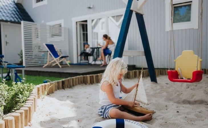 Im Außenbereich des Hauses befindet sich eine geräumige Terrasse, die ideal für das morgendliche Frühstück im Freien ist. Der gemeinschaftliche Garten ist ein großartiger Ort für Kinder zum Spielen. Es ist ein Ort, an dem die Urlaubstage wie im Fluge vergehen und die Zeit stehen zu bleiben scheint.