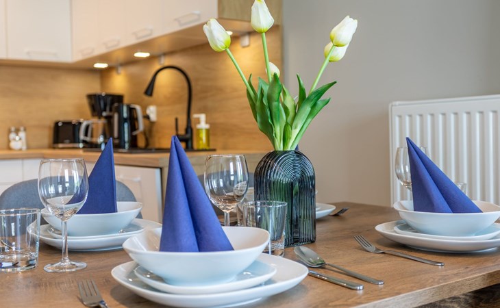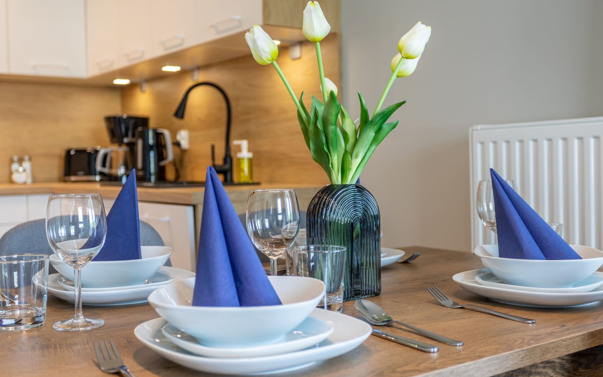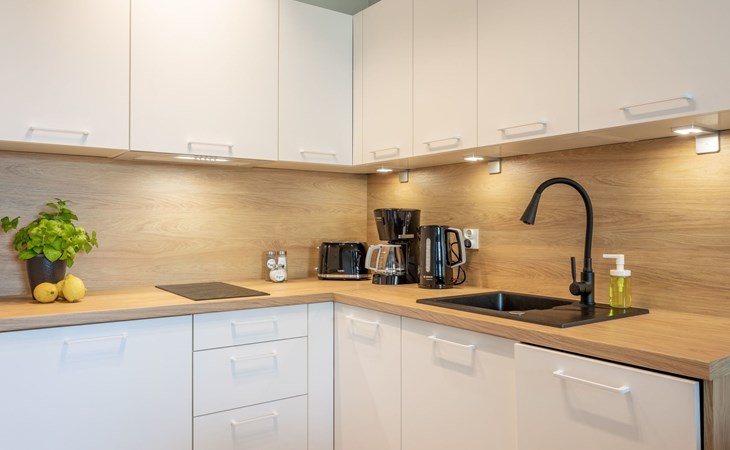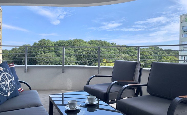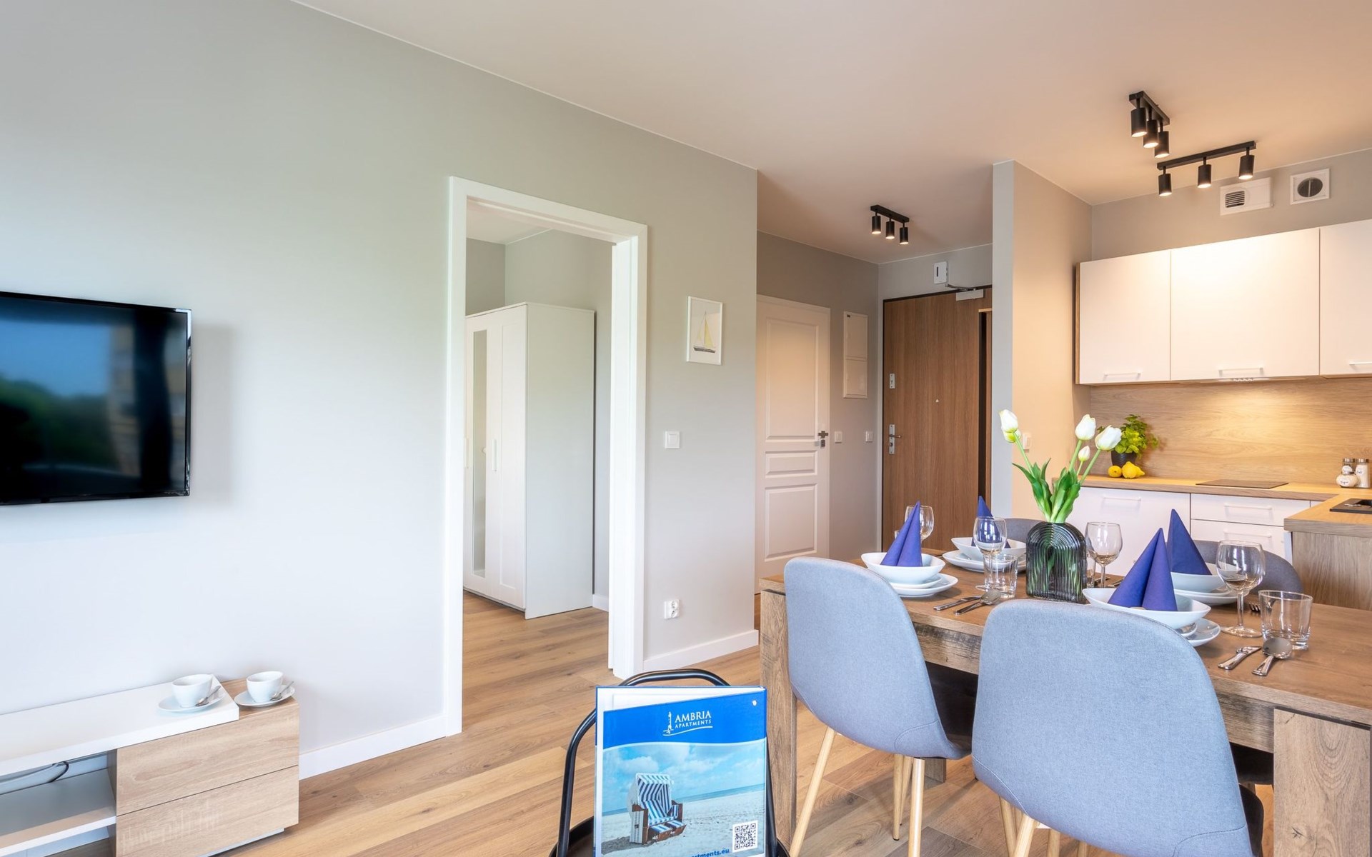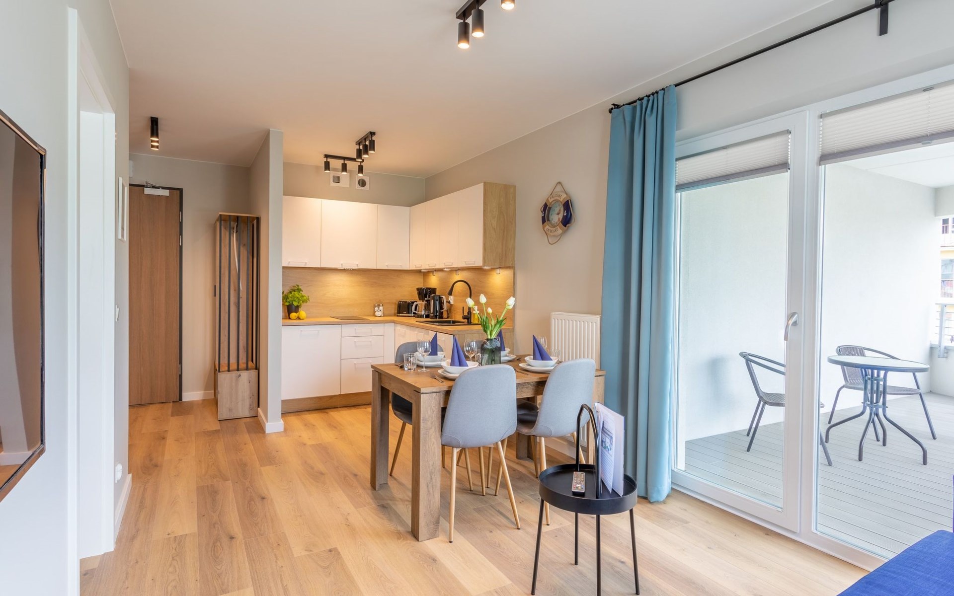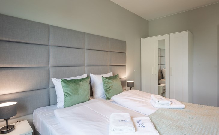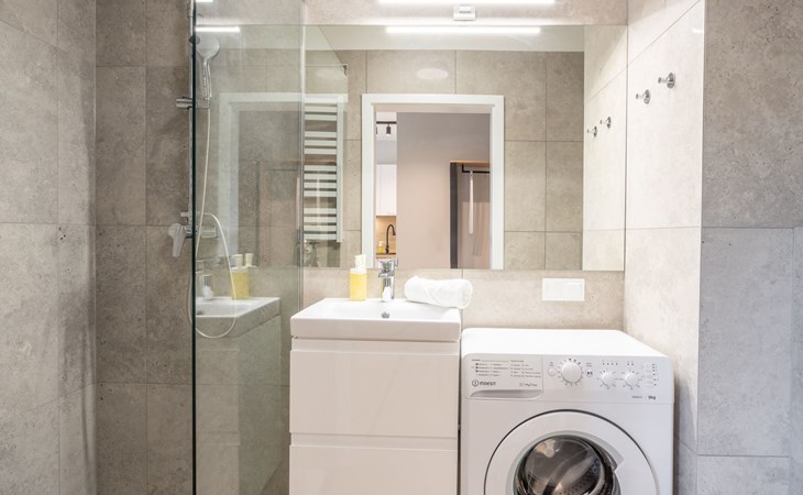 Es ist Apartment mit sehr geräumigen Schlafzimmer, Wohnzimmer mit gut ausgestatteten Küchenzeile, Essbereich und modernen Badezimmer mit Gesamtfläche von 35 m2, sowie einem Terrasse, der perfekte Erweiterung der nutzbaren Fläche darstellt. Sehr bequemes Doppelbett im Schlafzimmer und Sofa mit Schlaffunktion im Wohnbereich sorgen für erholsamen Schlaf. Eine komfortable und komfortable Ausstattung garantiert einen angenehmen Aufenthalt, sowohl für private als auch für geschäftliche Zwecke. Das Interieur ist sehr originell gestaltet, dominiert von Grau- und Weißtönen, die mit einem Blauton gebrochen sind, sowie schönen Holzdetails, die dezent in moderne Möbel oder Accessoires eingeschmuggelt werden, die das Interieur erwärmen und mit ihrer Textur und ihrem unkonventionellen Aussehen begeistern.