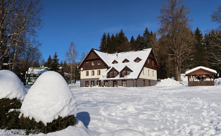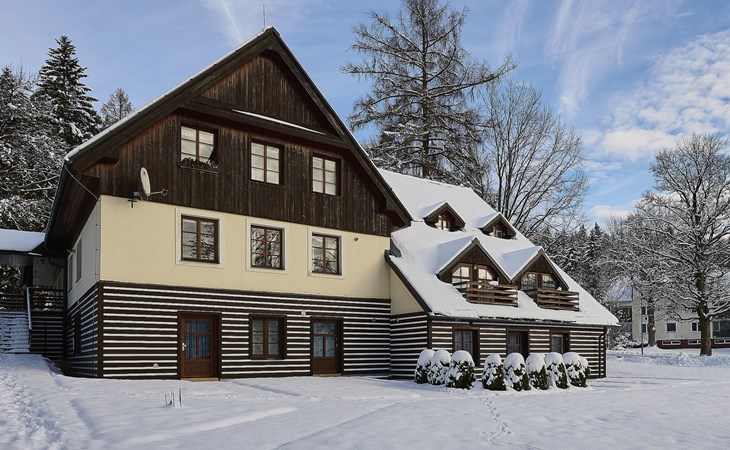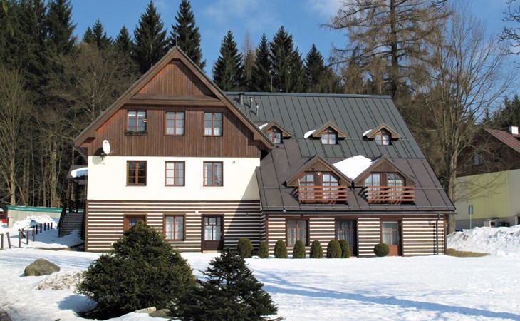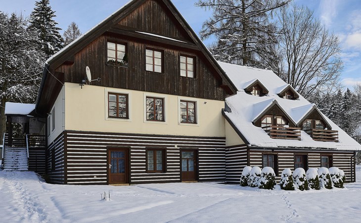 Sehr schönes Mehrfamilienhaus 700 m.ü.M., auf 3 Stockwerken. 12 Wohnungen in der Residenz. 400 m vom Zentrum von Harrachov, am Ortsrand, 28 km vom Zentrum von Jablonec nad Nisou, 12 km vom Zentrum von Rokytnice nad Jizerou, sonnige Lage, 50 m vom Waldrand, 1.3 km vom Skigebiet. Zur Mitbenutzung: Grundstück, Wiese. Im Hause: Skiraum. Parkplatz (beschränkte Anzahl) auf dem Grundstück. Einkaufsgeschäft 100 m, Supermarkt 400 m, Bushaltestelle "Harrachov, centrum" 600 m, Bahnstation "Harrachov-Mýtiny" 3 km, Freibad 400 m, Hallenbad 100 m. Golfplatz (18 Loch) 39 km, Skilift 300 m, Sessellift 1.3 km, Skipisten 300 m, Skiverleih 1.3 km, Skischule 1.3 km, Kinderskischule 1.3 km, Kinderspielplatz 300 m. Nahe gelegene Sehenswürdigkeiten: Mumlava vodopád 2.5 km, Kořenov 8 km, Jizerka 15 km, Jablonec nad Nisou 29 km, Jablonec nad Nisou 40 km, Termy Cieplickie(Pl) 30 km. Bekannte Skigebiete sind gut erreichbar: Harrachov 1.3 km, Příchovice 10 km, Rokytnice nad Jizerou 15 km. Wandergebiete: Western City Karpacz(Pl) 40 km, Park miniatury Kowary44km,Karpacz (Pl) 39 km, Giganteria Piechowice(Pl) 23 km.