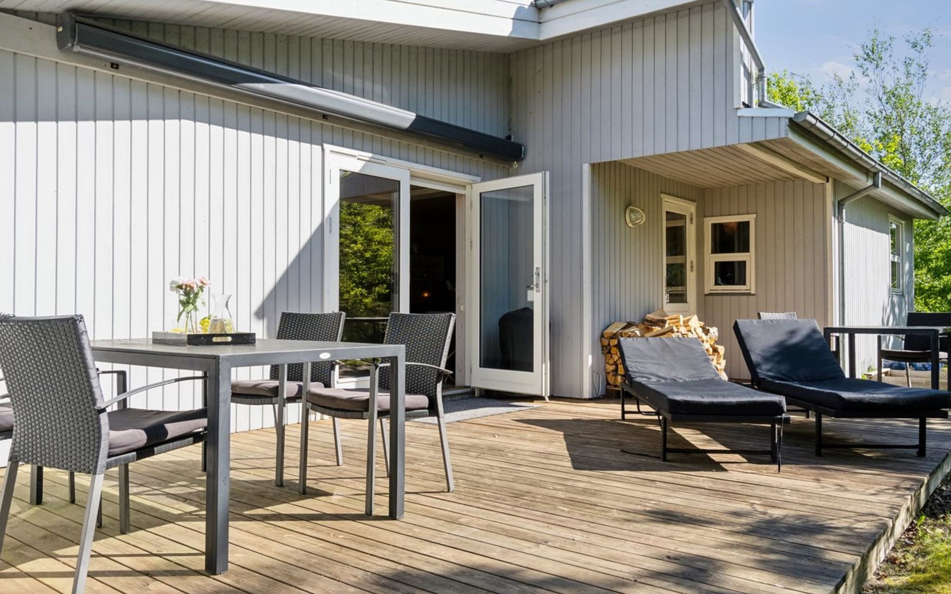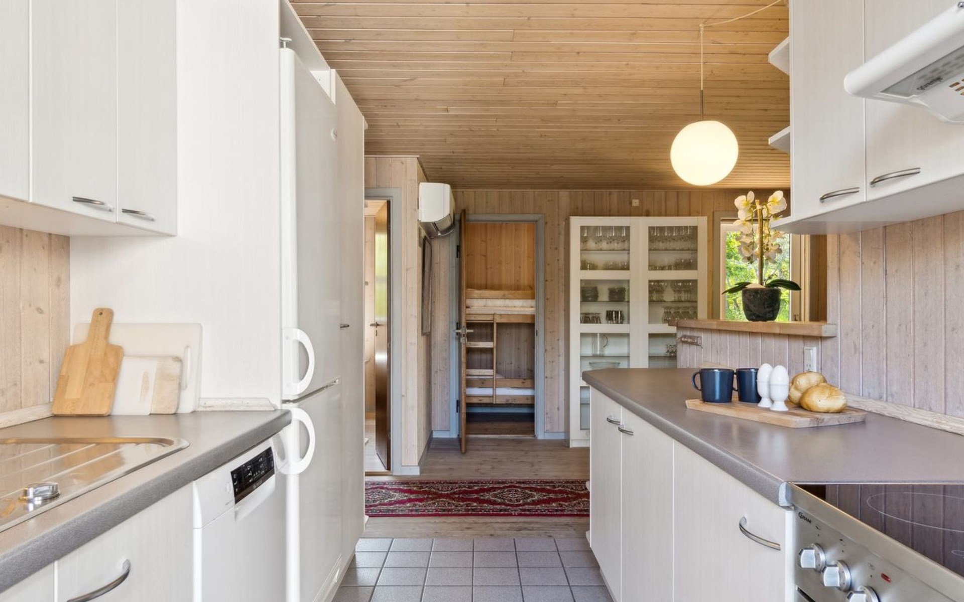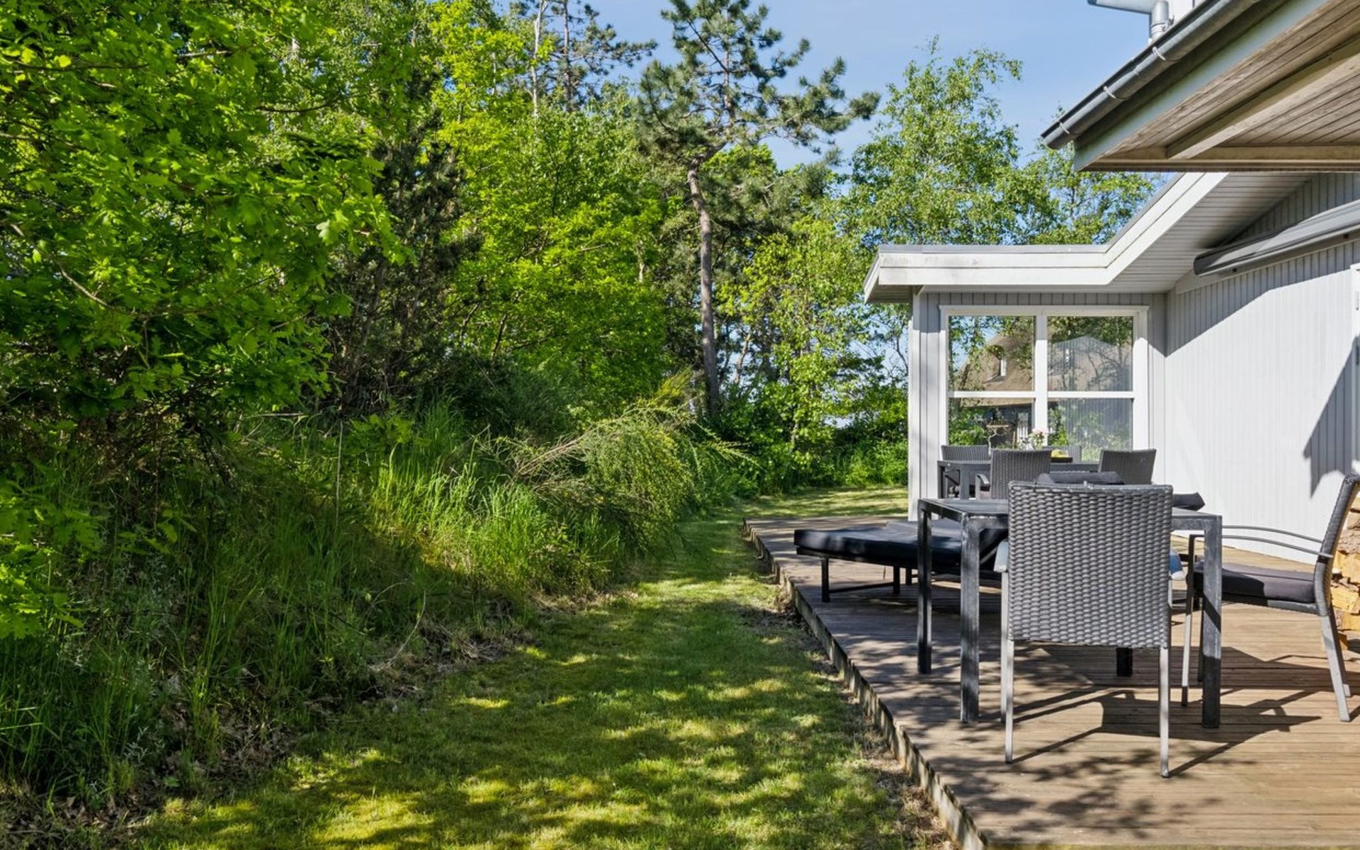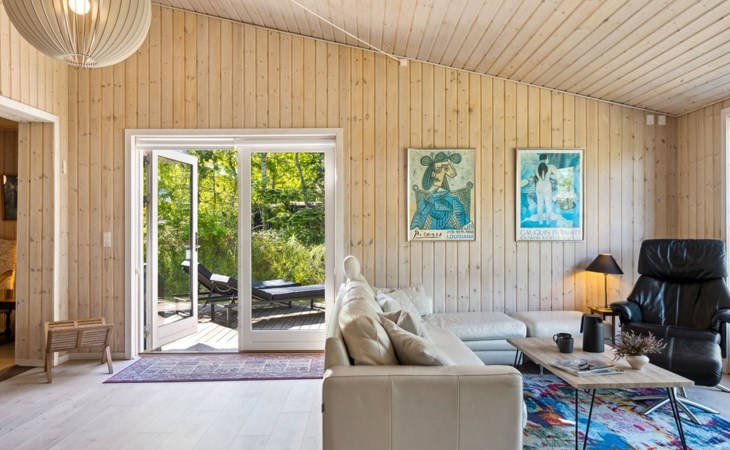 Einfamilienhaus, Baujahr 1958. 50 m vom Meer. Zur Alleinbenutzung: naturbelassenes Grundstück 789 m2. Aussendusche, Terrasse (30 m2), Grill, Kinderspielplatz (Schaukel). Im Hause: Waschmaschine, Wäschetrockner. Parkplatz beim Haus. Lebensmittelgeschäft 5 km. Der Besitzer akzeptiert keine Jugendgruppen.