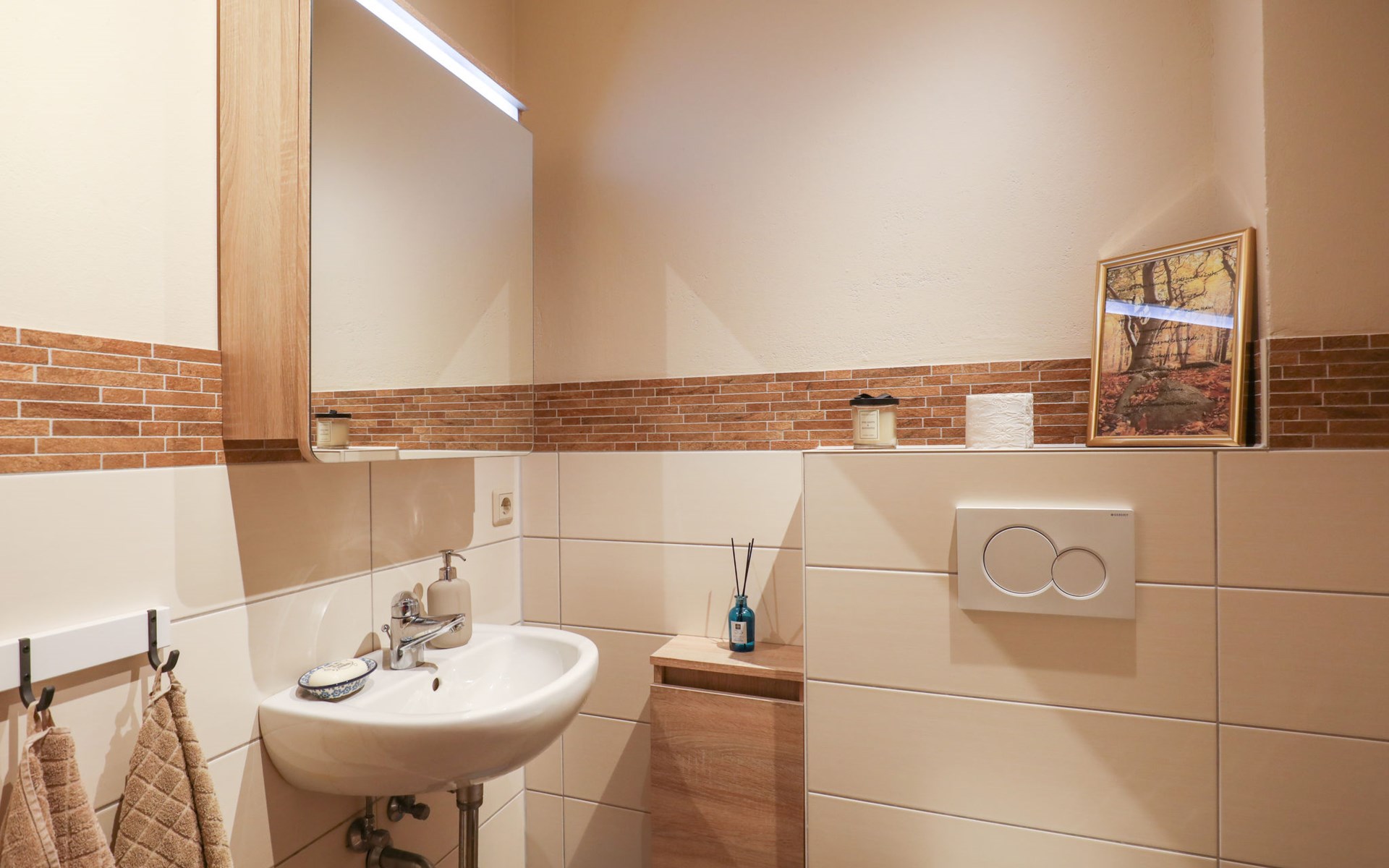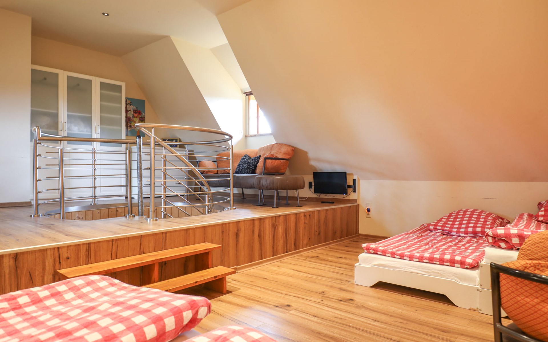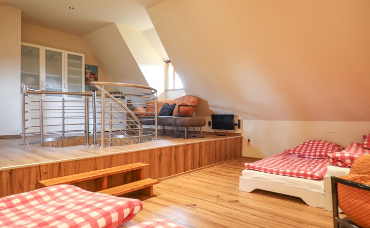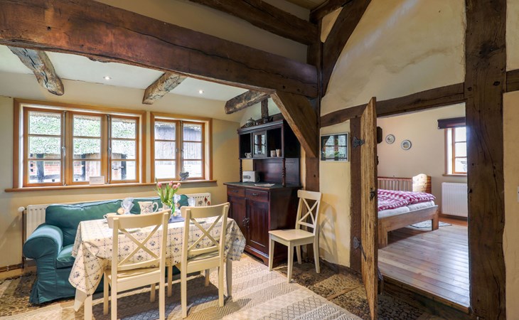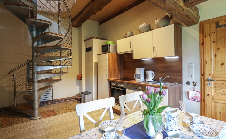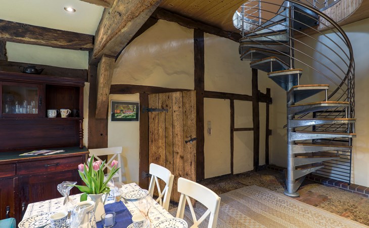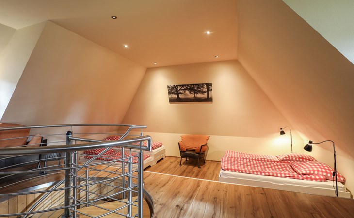 Rustikales Landhaus "Dat Litsche Hus", aus dem 18. Jahrhundert, umgeben von Bäumen und Wiesen. 2 Wohnungen im Ferienhaus. Im Ort Ober-Ochtenhausen, 2 km vom See, 700 m vom Fluss, im Grünen. Zur Mitbenutzung: Grundstück 1'500 m2, grosser Garten mit Bäumen, Wiese, Hof. Kinderspielplatz (Rutschbahn, Schaukel). Im Hause: Aufenthaltsraum, Tischtennis, Tischfussball, Zentralheizung, Waschmaschine (zur Mitbenutzung), Fahrräder vorhanden. Parkplatz beim Haus. Bushaltestelle 200 m, See Moorsee 2 km. Bitte beachten: geeignet für Familien. Auf dem Grundstück Tierhaltung. Nach Absprache Ponyreiten für Kinder (8-10 Jahre). Im Eingangsbereich des Ferienhauses ca. 70 m² großer Gemeinschaftsraum mit mehreren Sitzgruppen, Sofas, Kaminofen, Klavier, Stereoanlage zur gemeinsamen Nutzung. Sichtbares Deckengebälk, alte Fliesen- und Steinböden sowie teils Antiquitäten sind mit modernem Wohnkomfort gekonnt kombiniert.