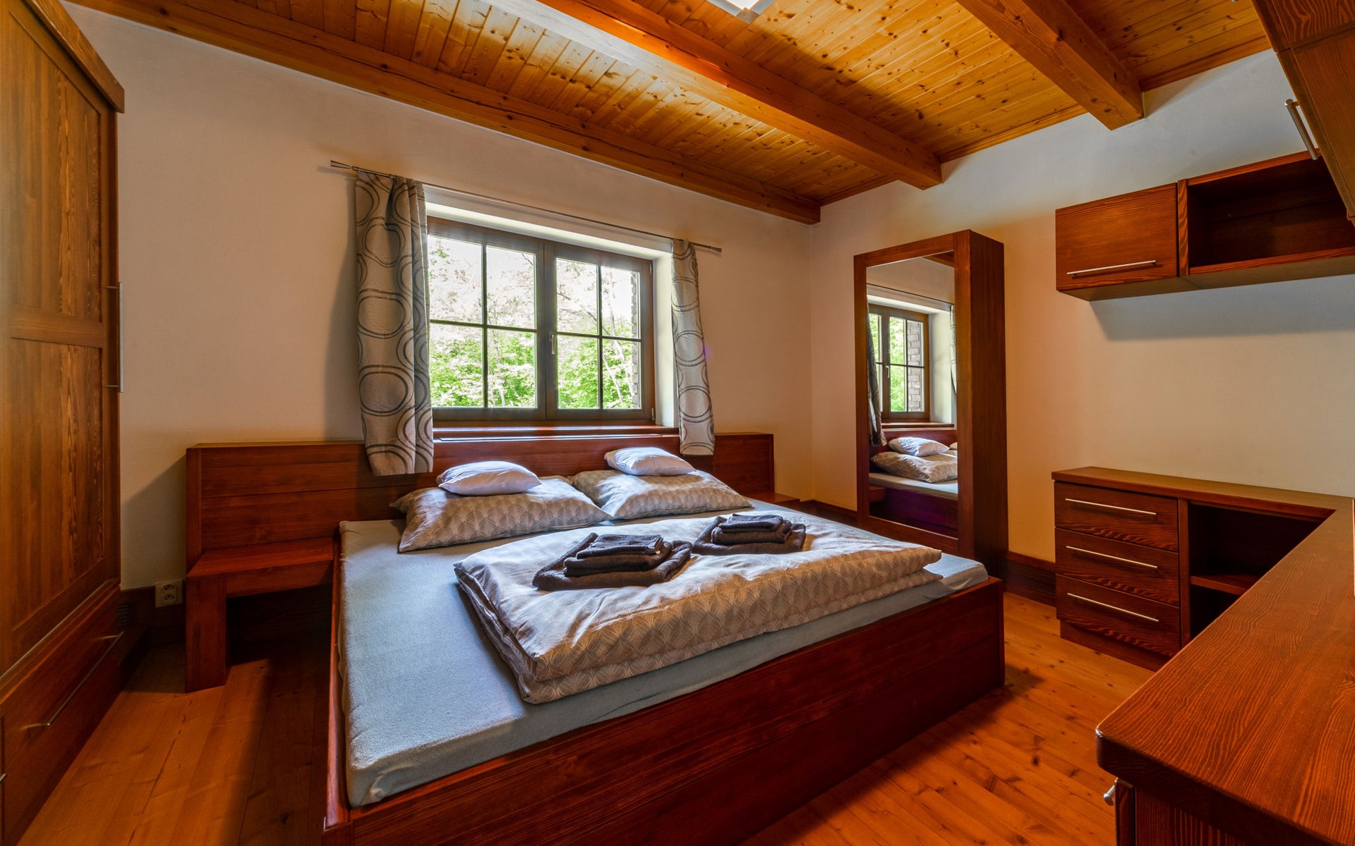 Kunějov 4 km von Člunek: An einem wunderschönen Ort voller Wälder, Wiesen und Teiche im Naturpark Böhmisch-Kanada, freistehendes, komfortables Haus "Kunějov". Am Ortsrand Kunějov, 15 km vom Zentrum von Jindřichův Hradec, ruhige, sonnige Lage, 150 m vom Waldrand, direkt am See, im Grünen. Zur Alleinbenutzung: Grundstück 4'000 m2. Sitzplatz, Terrasse, Grill. In der Anlage: Einstellraum für Fahrräder, Zentralheizung. Parkplatz beim Haus. Lebensmittelgeschäft 4 km, Restaurant 4 km, Bushaltestelle "Kunějov" 400 m, Bahnstation "Nová Bystřice, Senotín" 3.6 km, Strandbad 100 m. Golfplatz (18 Loch) 10 km, Wanderwege ab Haus, Radweg 50 m, Kinderspielplatz 500 m. Nahe gelegene Sehenswürdigkeiten: Kamenný stůl 2 km, Památník Járy Cimrmana/Kaproun 6 km, Zámek Nová Bystřice 9 km, Terezín 12 km, Vítkův Hrádek 12 km, Hrad Landštejn 15 km, Pomezí, Hrad a zámek Jindřichův Hradec 15 km, Třeboň 33 km, Telč 35 km. Bekannte Skigebiete sind gut erreichbar: Hradiště u Nové Bystřice 5 km. Bekannte Seen in der Umgebung sind gut erreichbar: Kačležský, Krvavý, Klikovský rybník 4 km, Ratmírovský rybník 12 km.