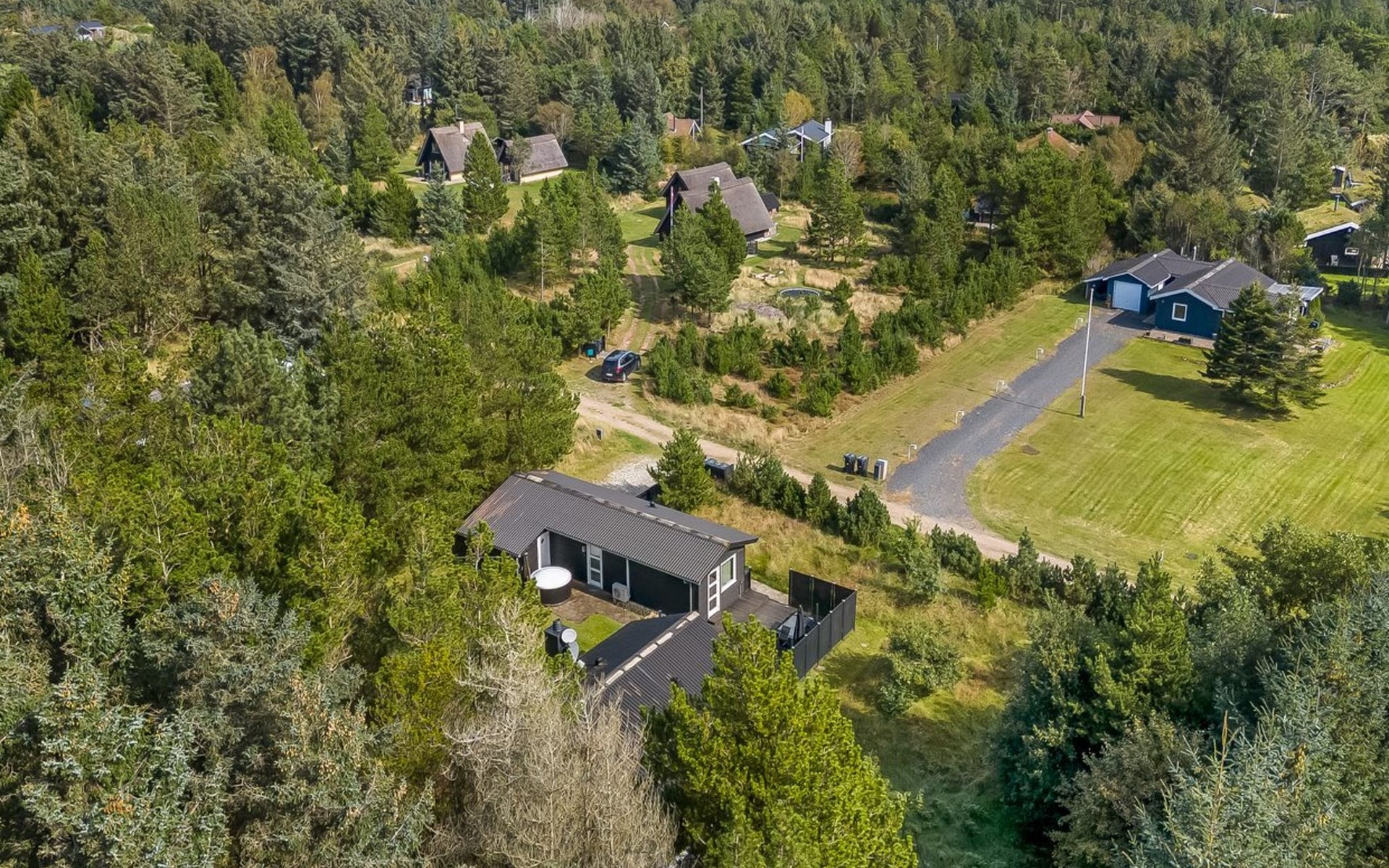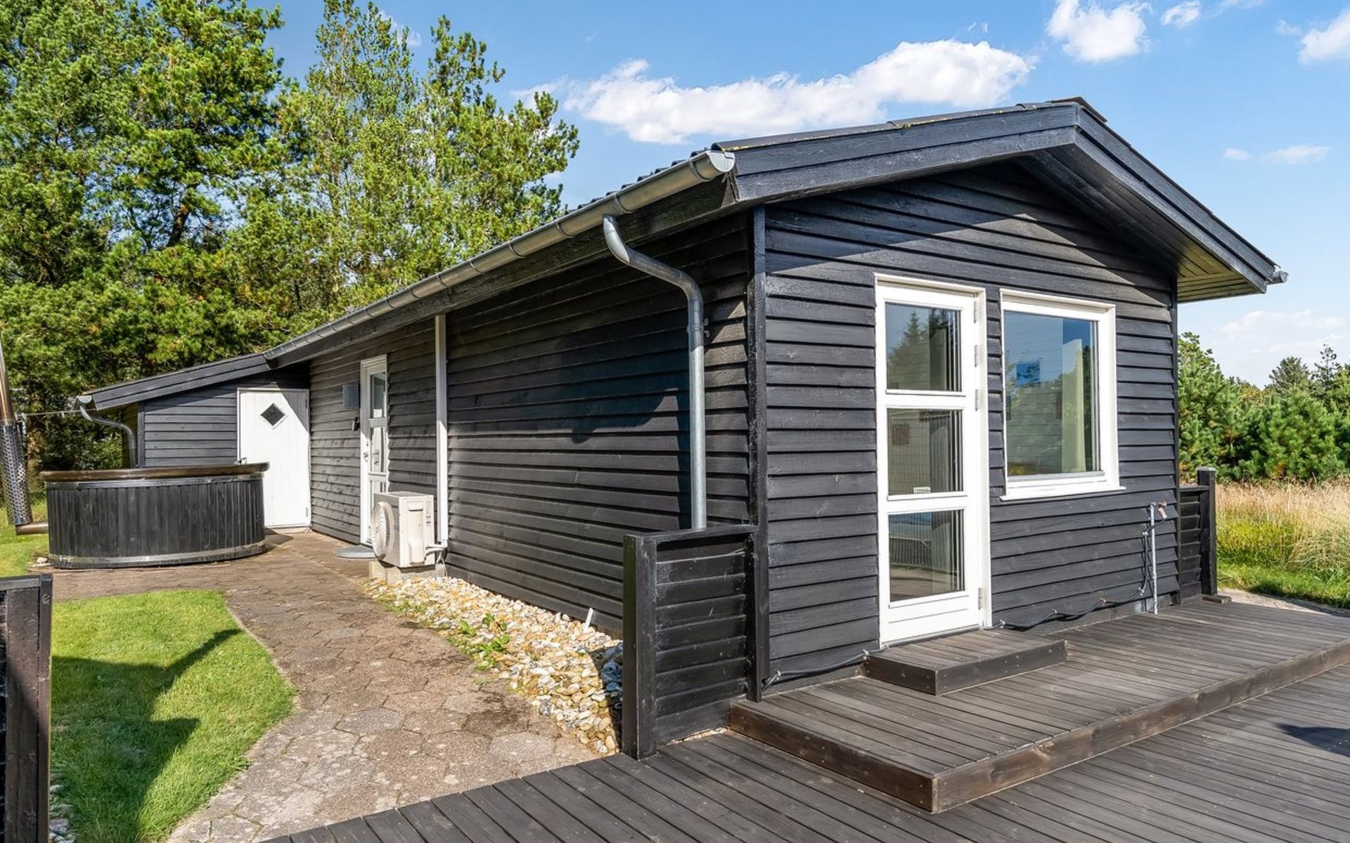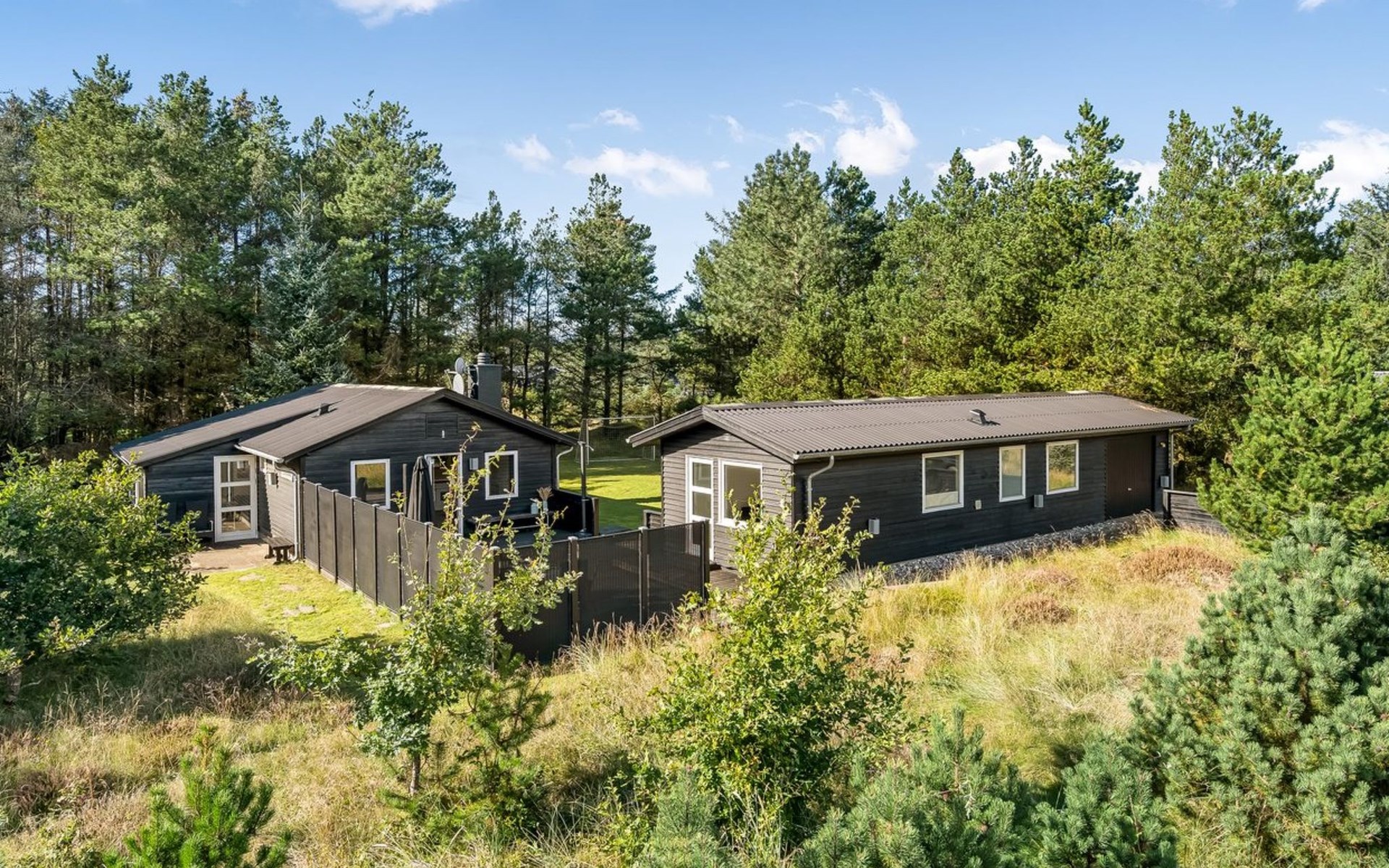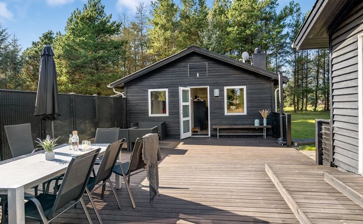 Einfamilienhaus, Baujahr 1975. 1.3 km vom Meer. Zur Alleinbenutzung: naturbelassenes Grundstück 2'000 m2. Aussendusche, Grill. Im Hause: Waschmaschine. Parkplatz beim Haus. Lebensmittelgeschäft 4 km. Golfplatz 15 km. Der Besitzer akzeptiert keine Jugendgruppen.