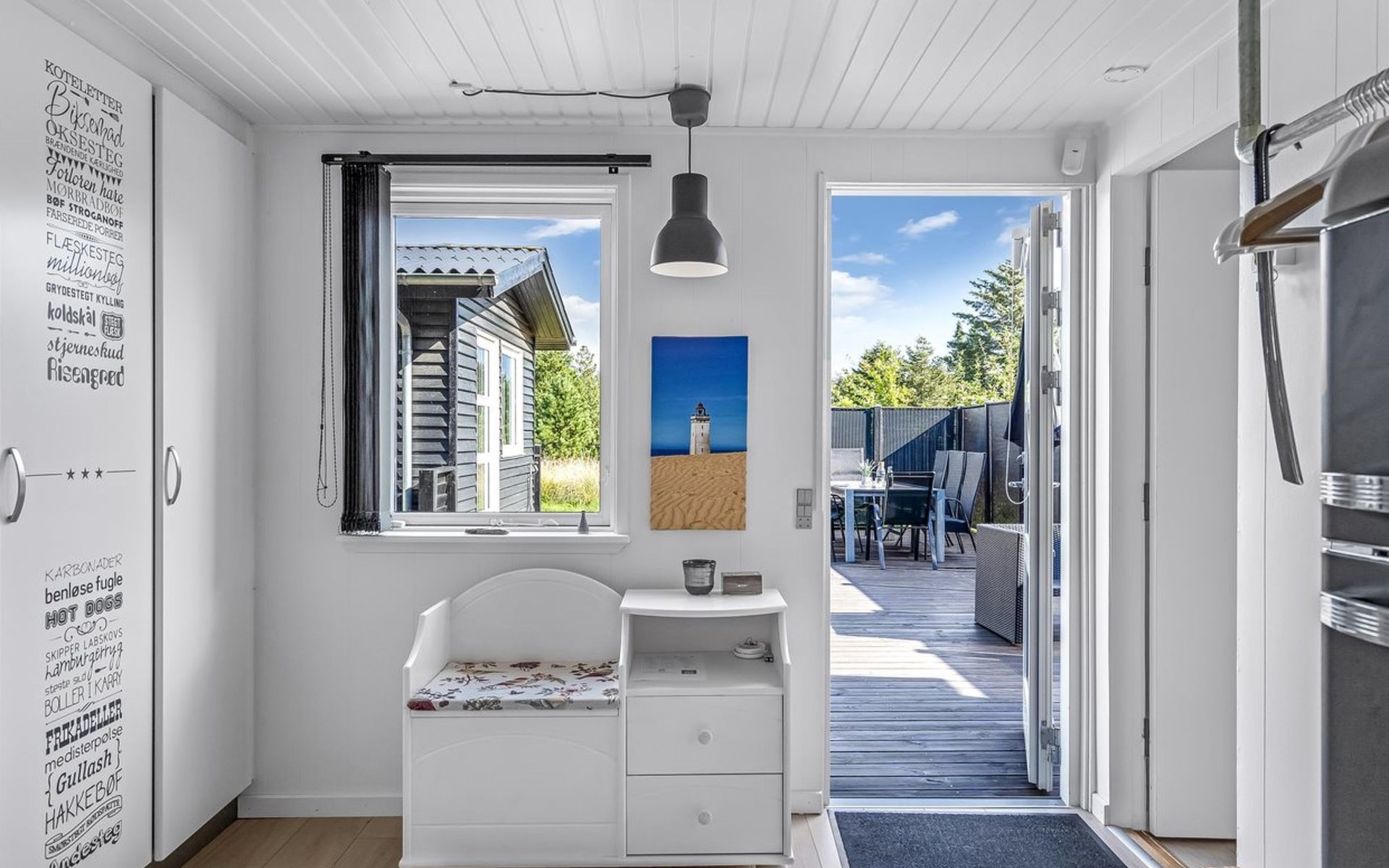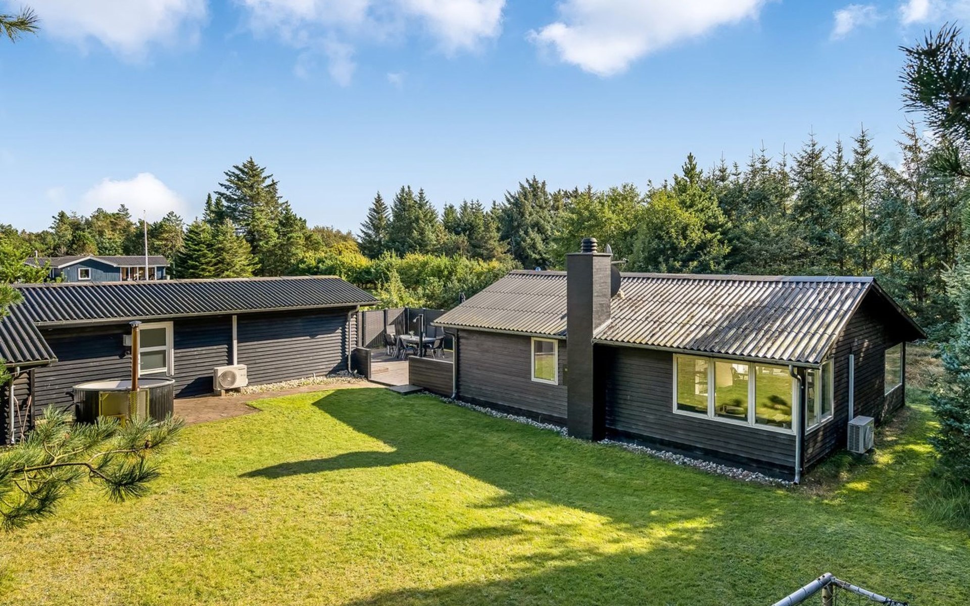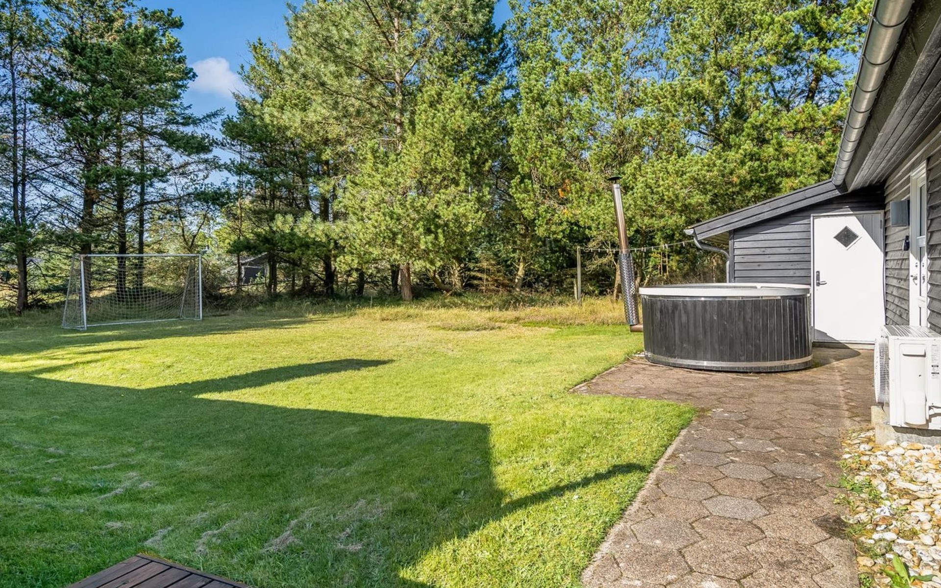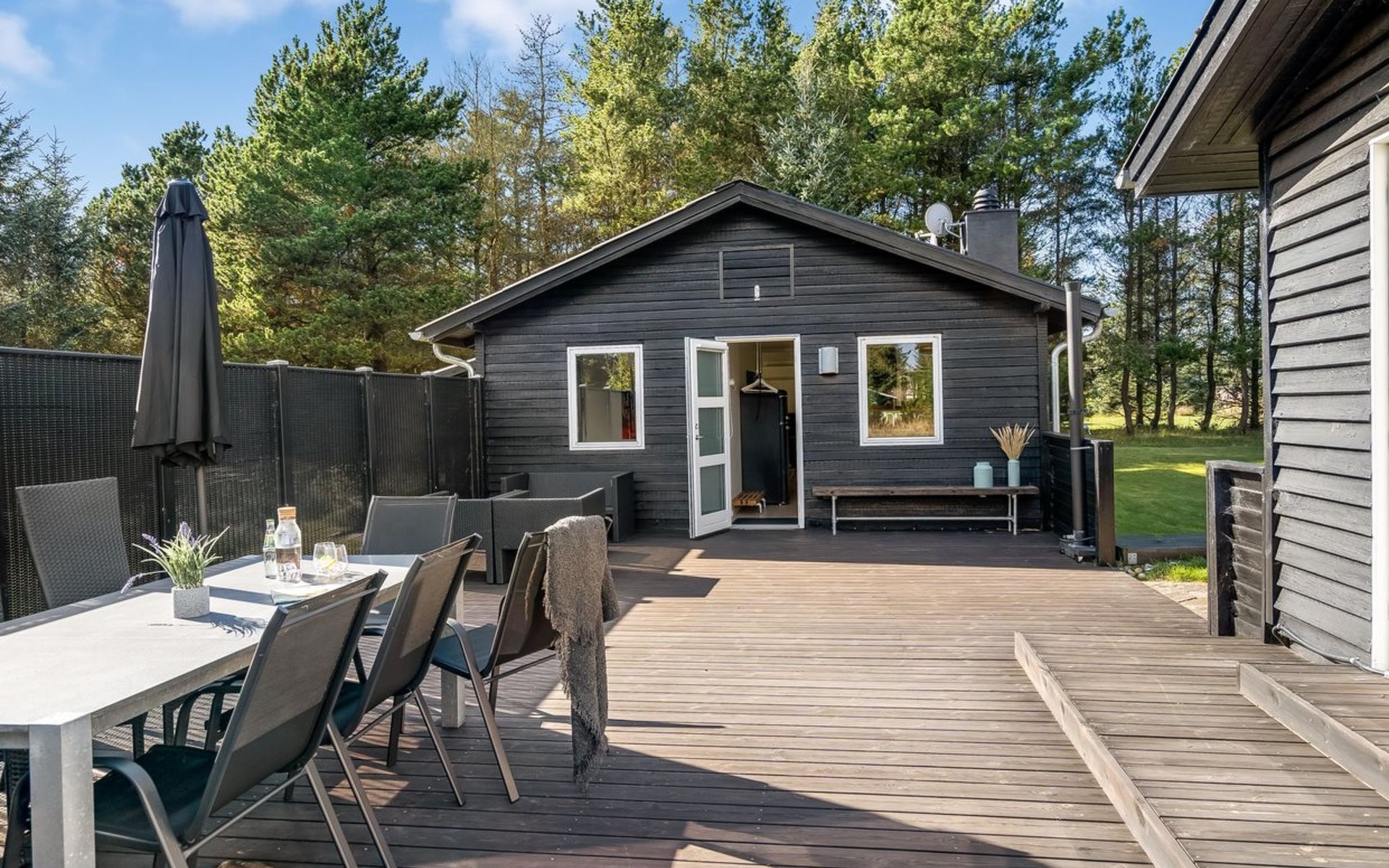 Einfamilienhaus, Baujahr 1975. 1.3 km vom Meer. Zur Alleinbenutzung: naturbelassenes Grundstück 2'000 m2. Aussendusche, Grill. Im Hause: Waschmaschine. Parkplatz beim Haus. Lebensmittelgeschäft 4 km. Golfplatz 15 km. Der Besitzer akzeptiert keine Jugendgruppen.