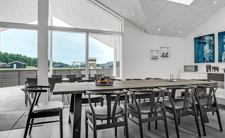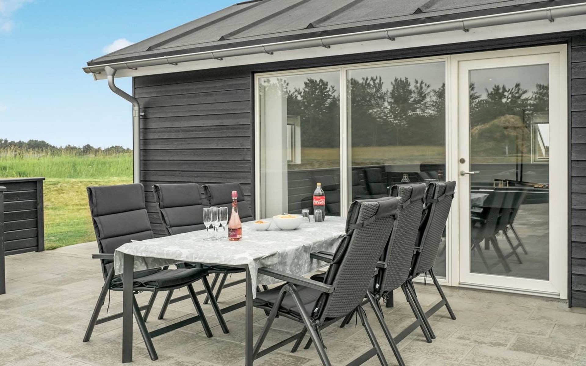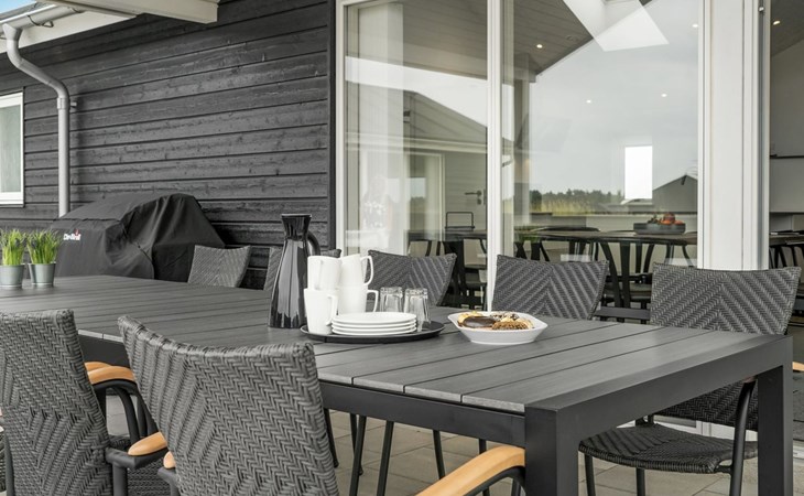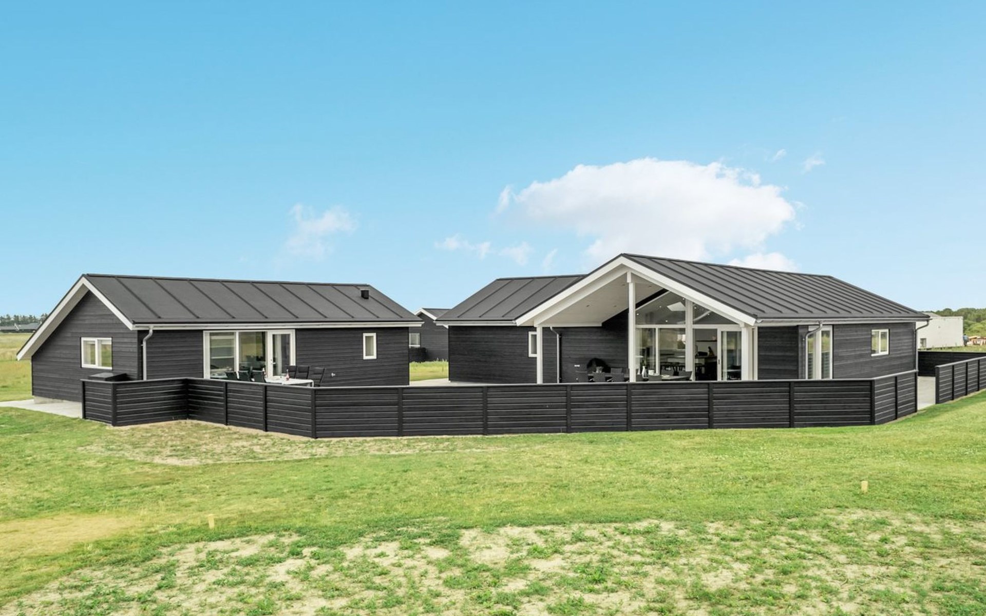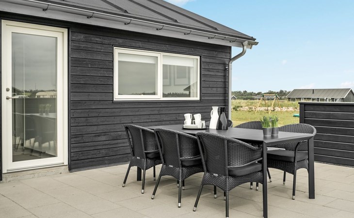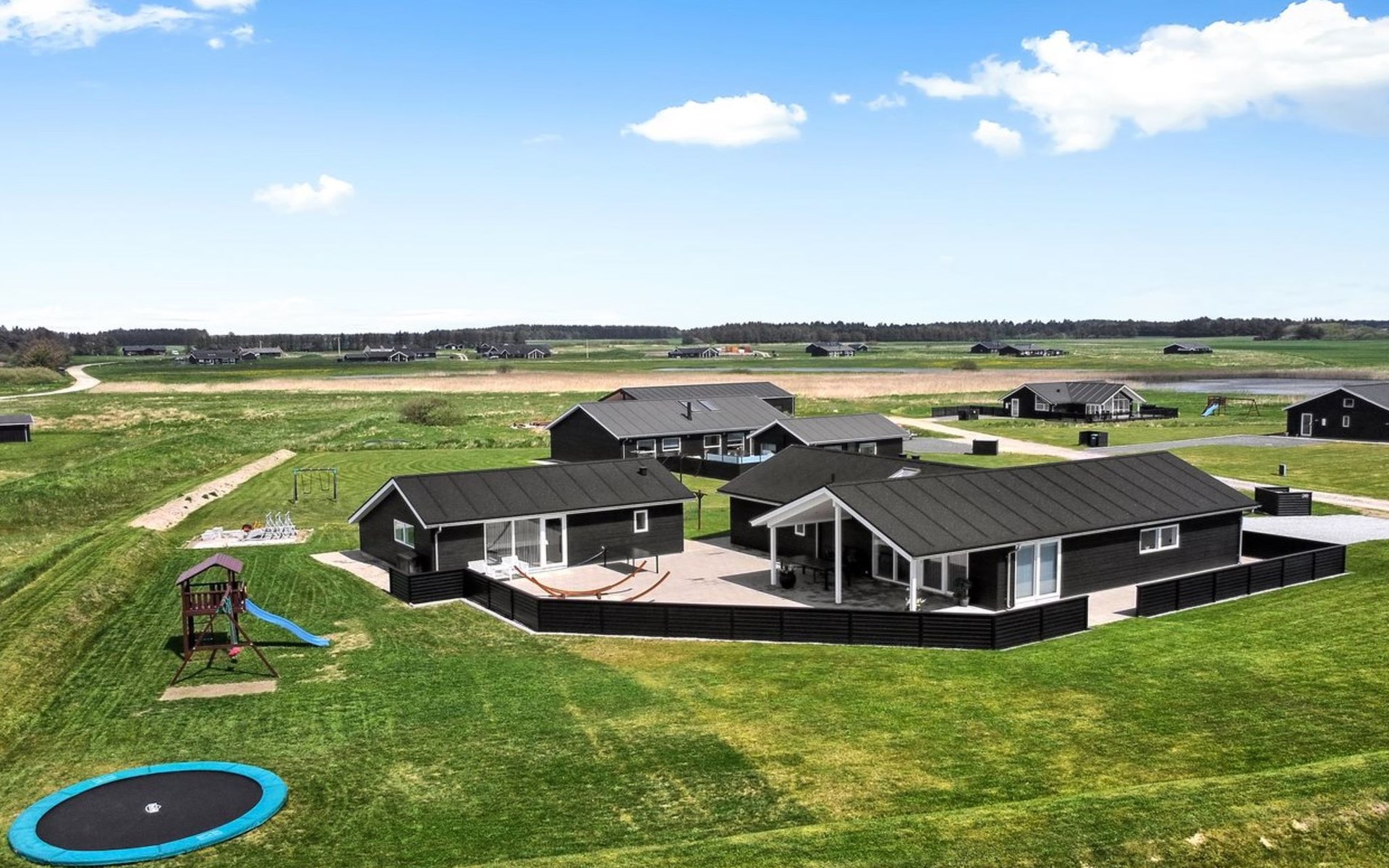 Einfamilienhaus, Baujahr 2018. 1.5 km vom Meer. Zur Alleinbenutzung: naturbelassenes Grundstück 2'102 m2. Terrasse (130 m2), Kinderspielplatz (Rutschbahn, Schaukel). Im Hause: Sauna, Trampolin, Waschmaschine, Wäschetrockner. Parkplatz beim Haus. Lebensmittelgeschäft 1.2 km. Golfplatz 5.5 km. Der Besitzer akzeptiert keine Jugendgruppen.
