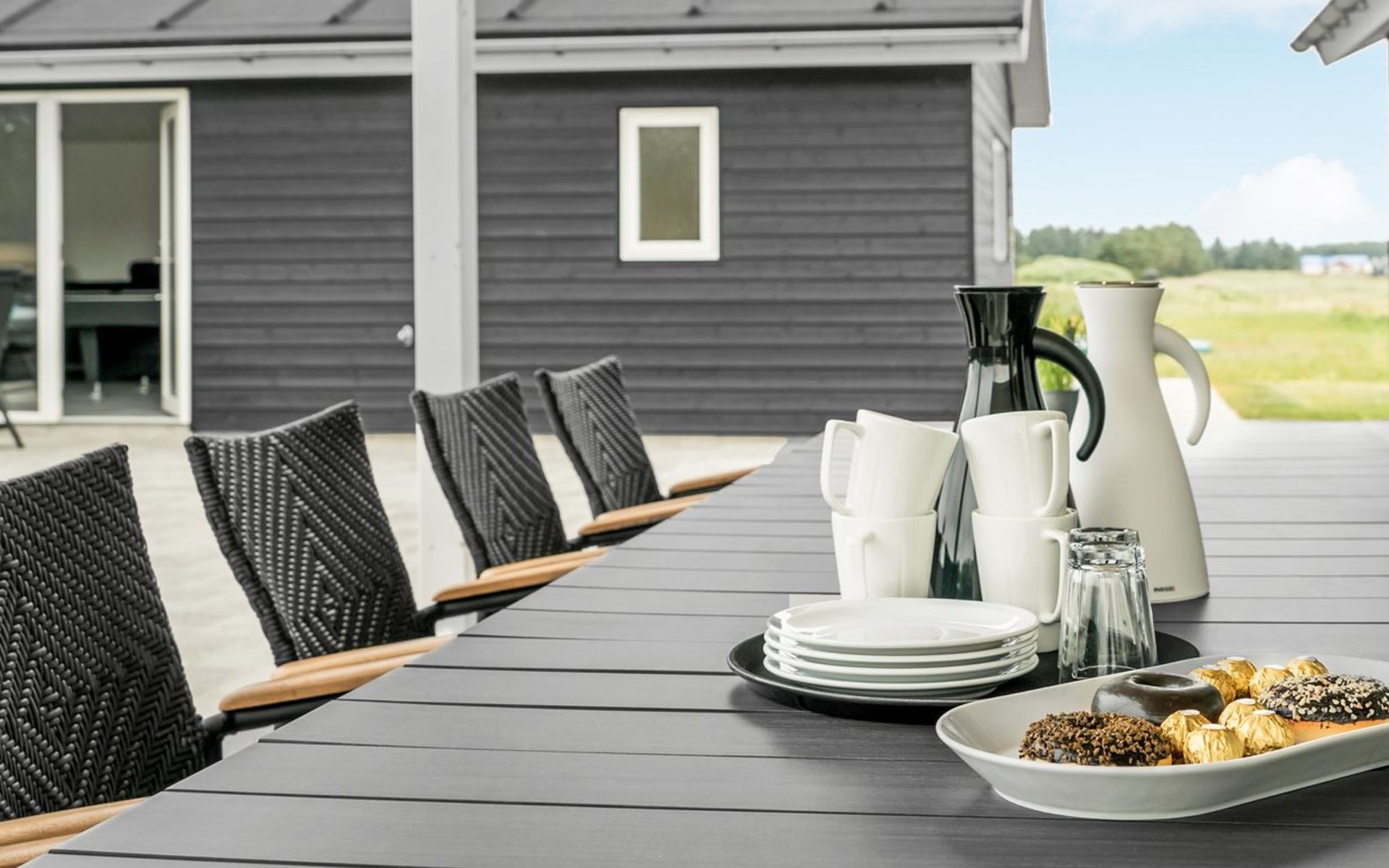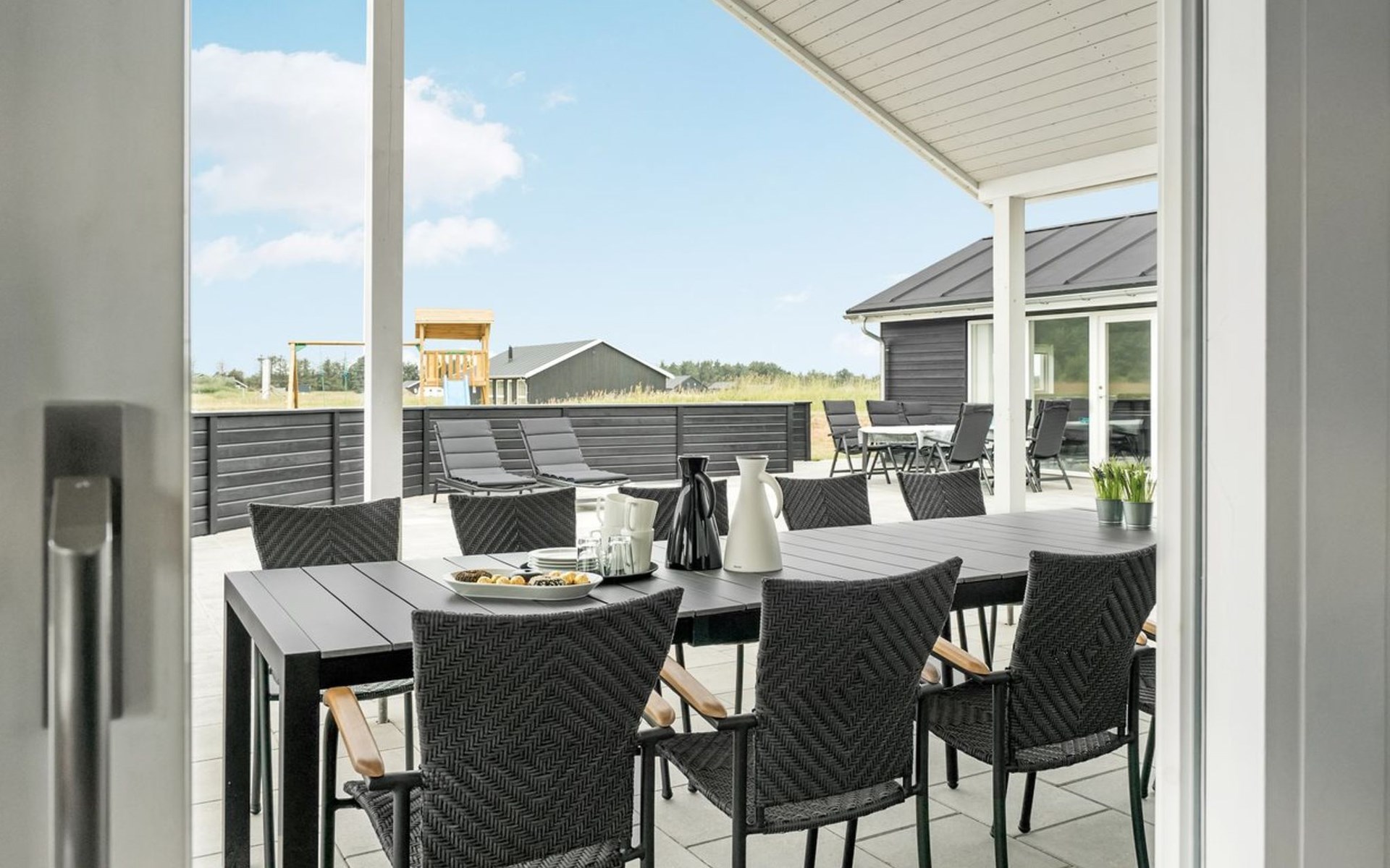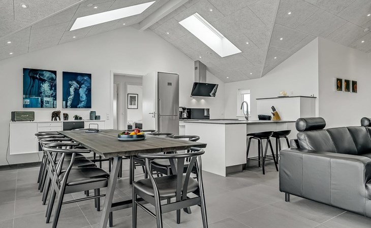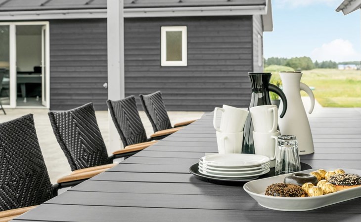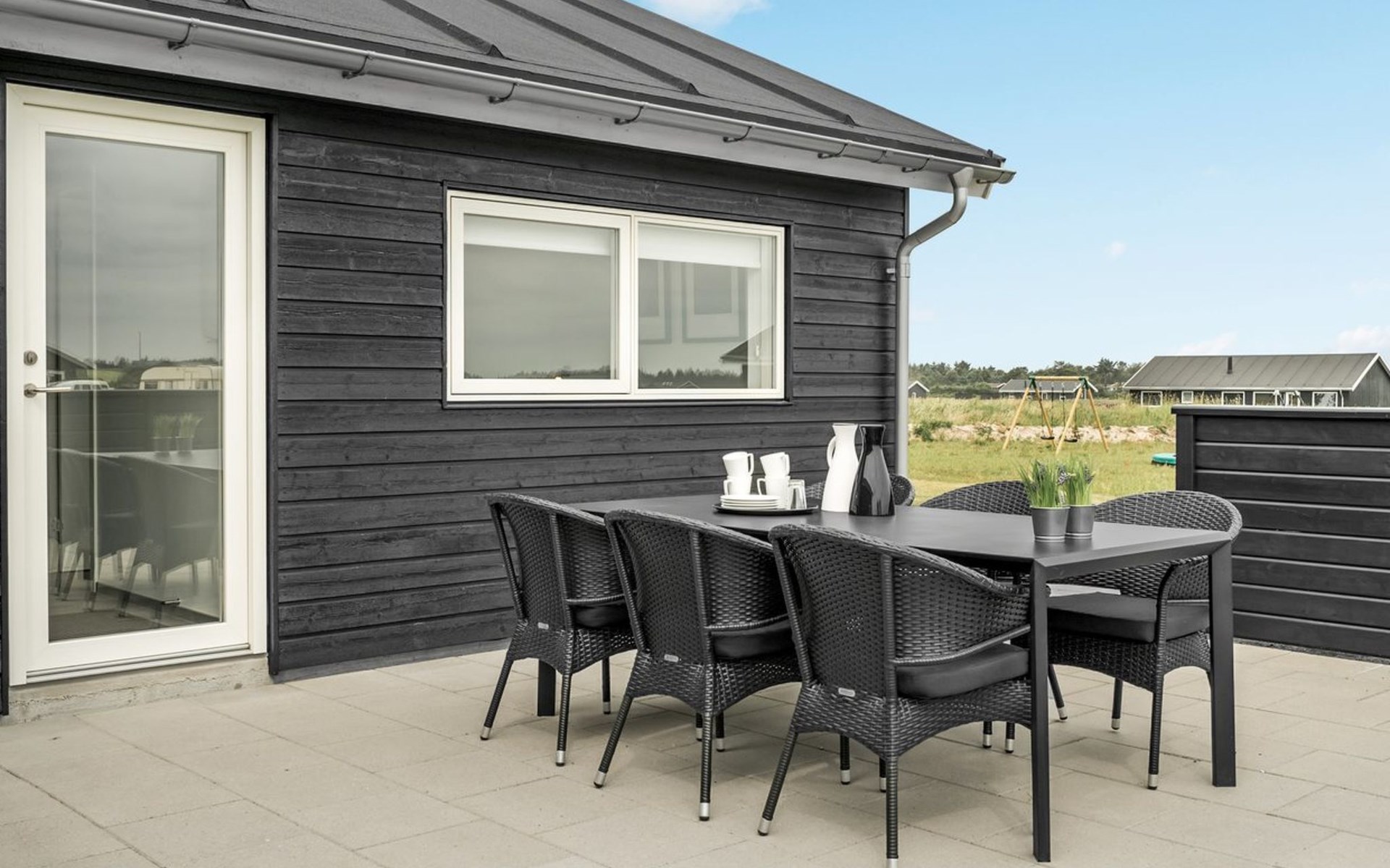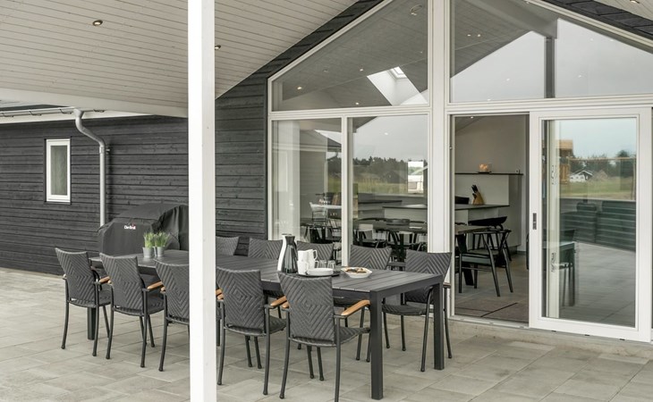 Einfamilienhaus, Baujahr 2018. 1.5 km vom Meer. Zur Alleinbenutzung: naturbelassenes Grundstück 2'102 m2. Terrasse (130 m2), Kinderspielplatz (Rutschbahn, Schaukel). Im Hause: Sauna, Trampolin, Waschmaschine, Wäschetrockner. Parkplatz beim Haus. Lebensmittelgeschäft 1.2 km. Golfplatz 5.5 km. Der Besitzer akzeptiert keine Jugendgruppen.