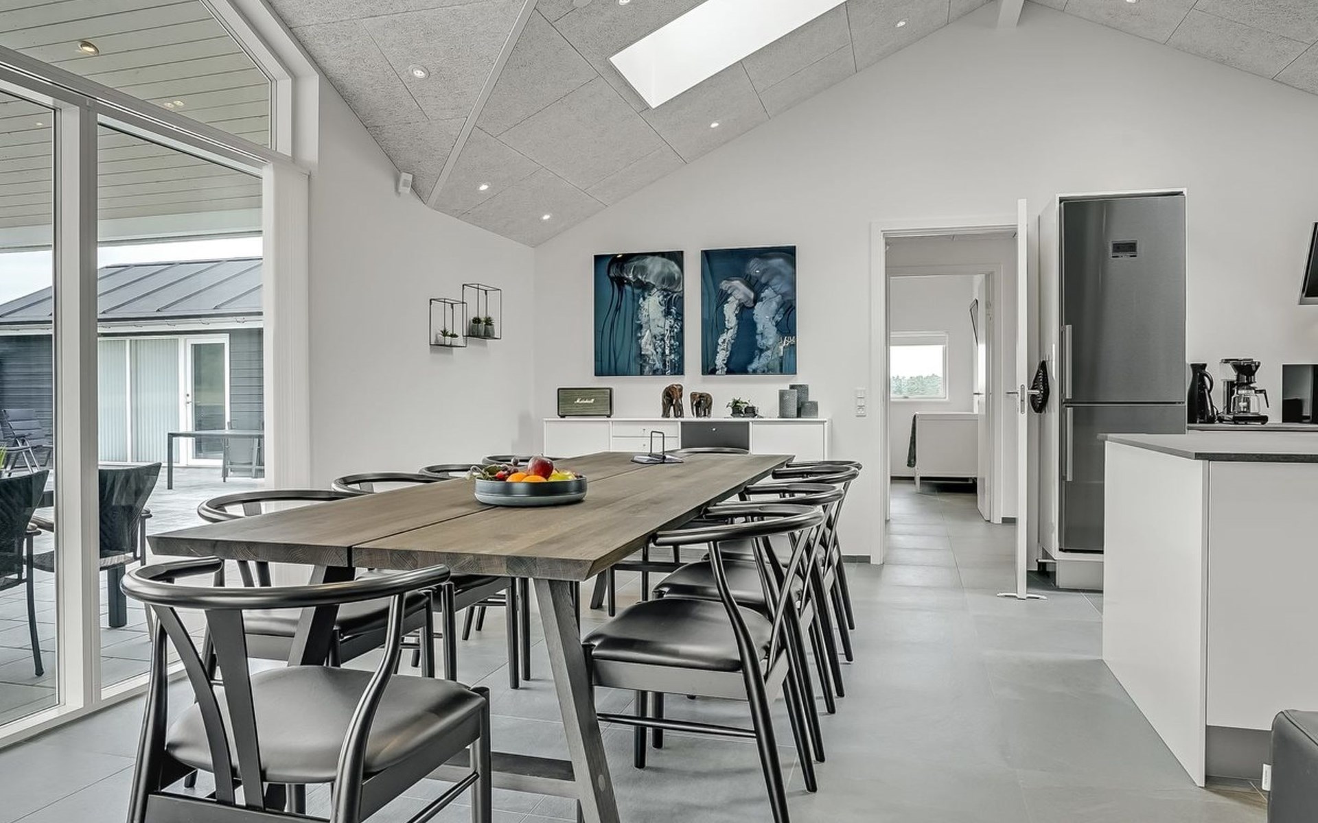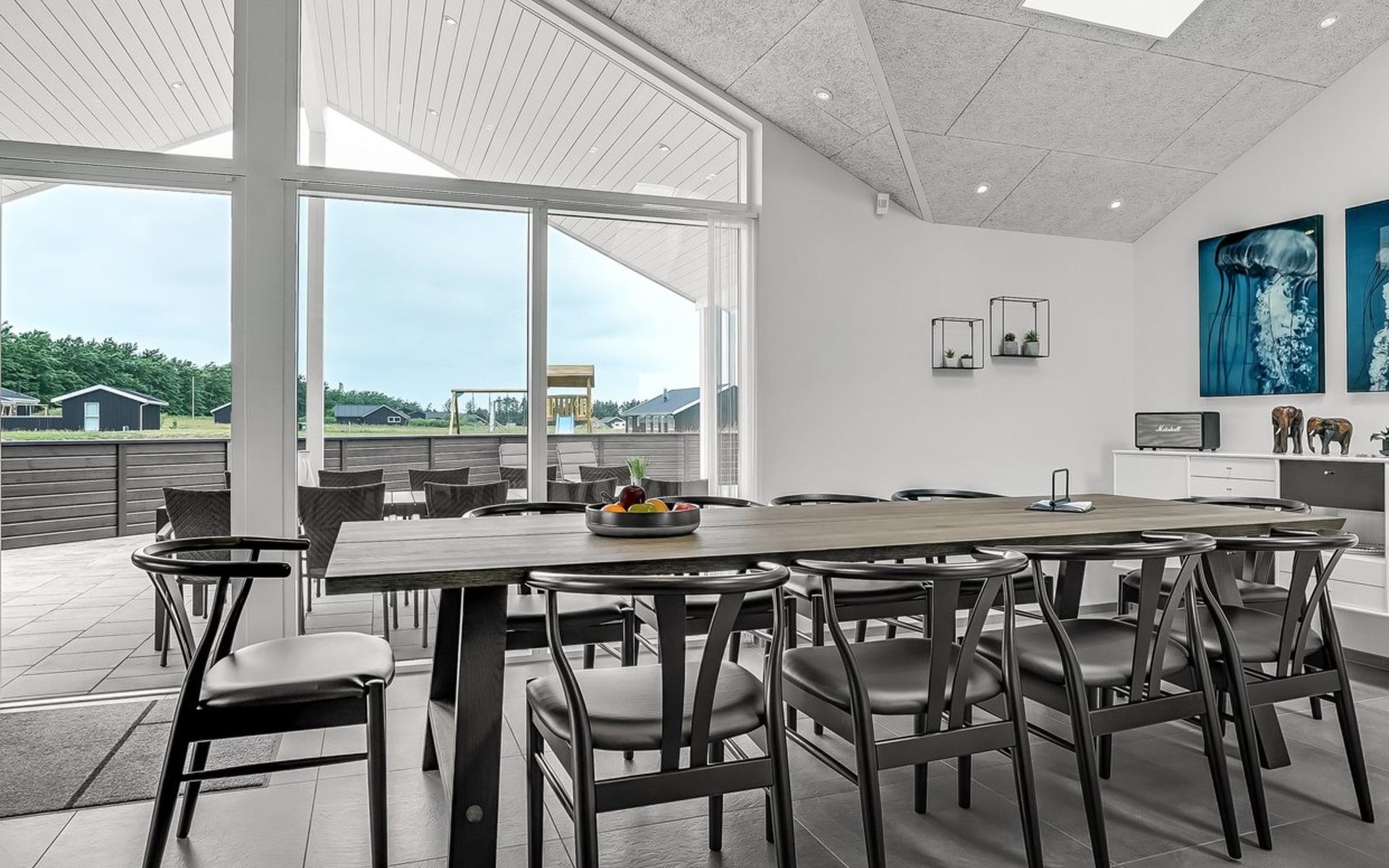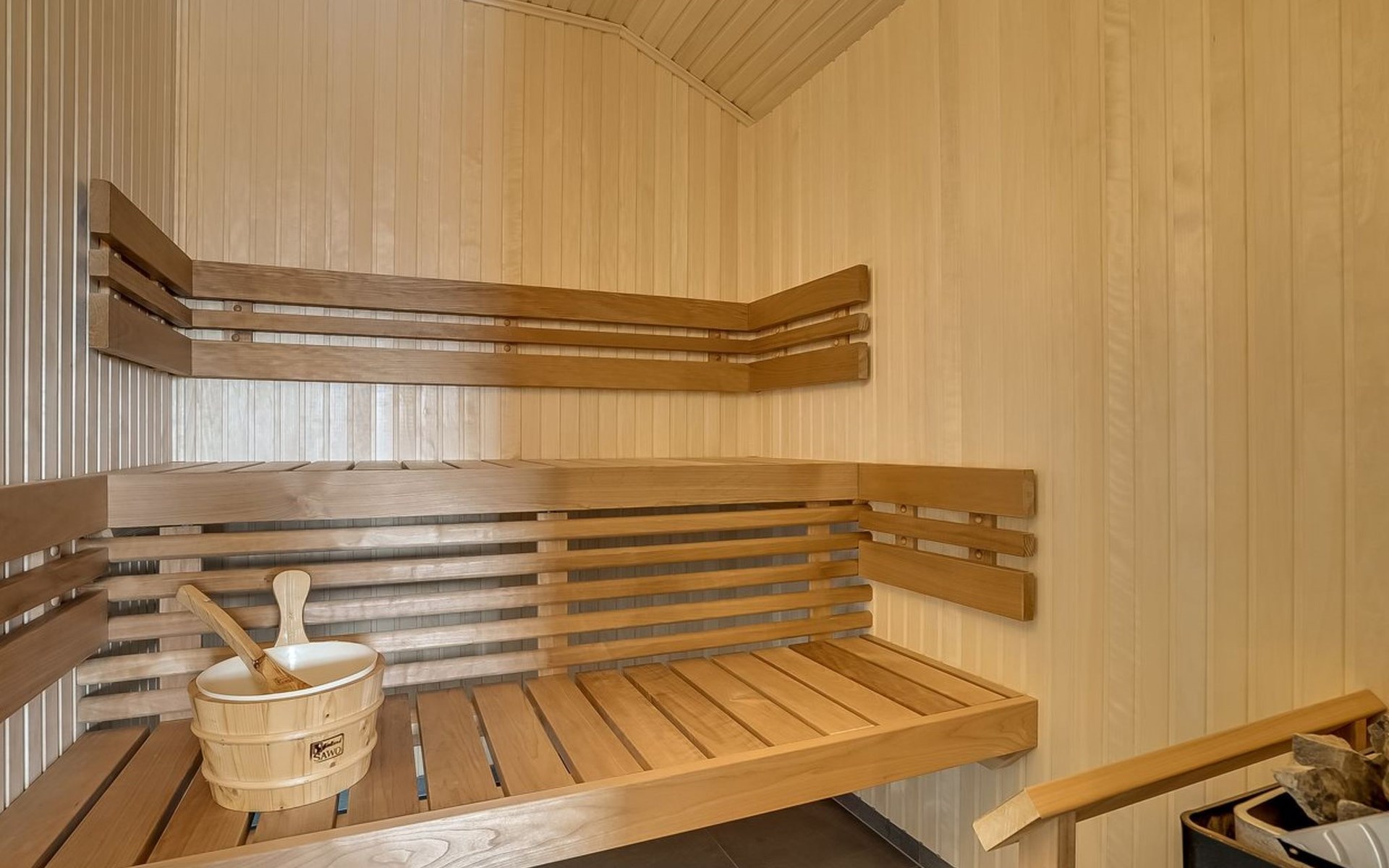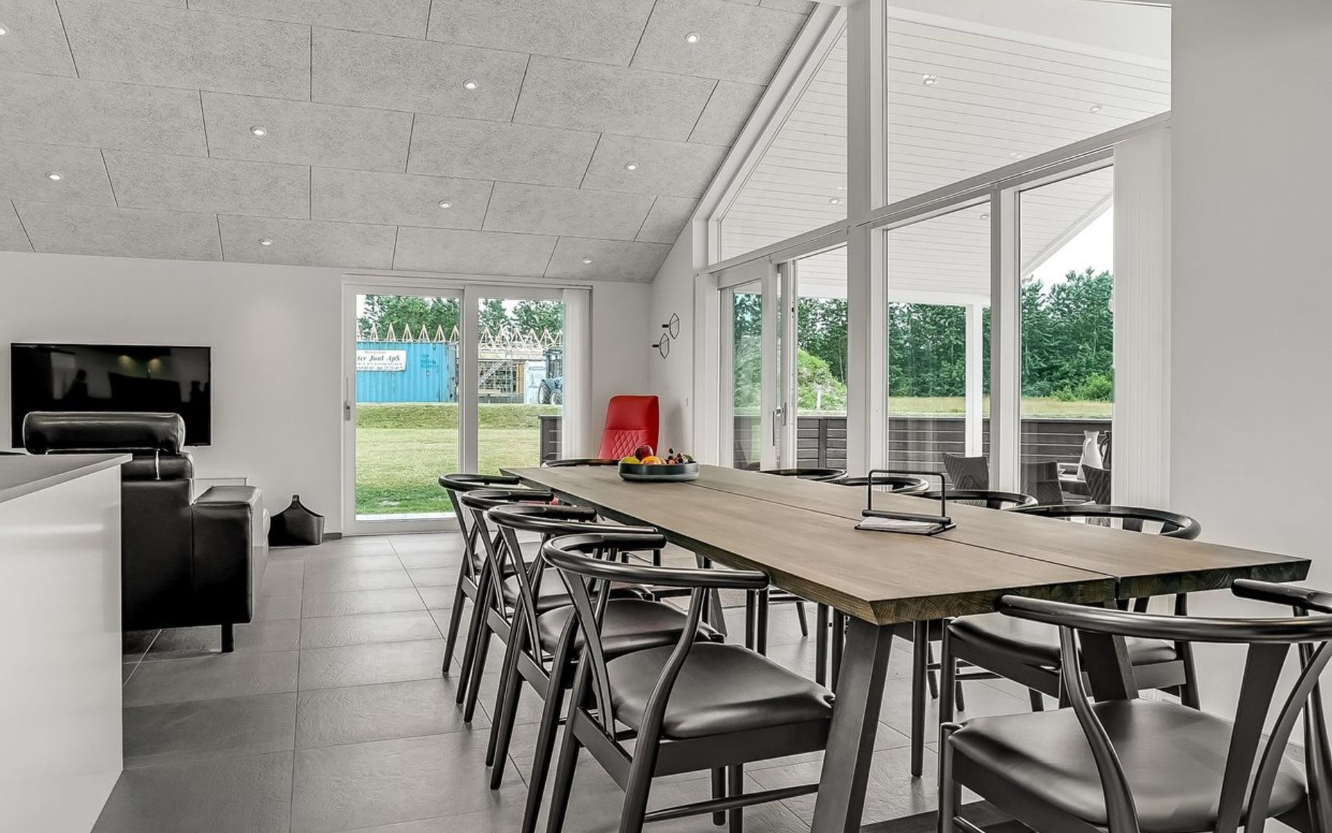 Einfamilienhaus, Baujahr 2018. 1.5 km vom Meer. Zur Alleinbenutzung: naturbelassenes Grundstück 2'102 m2. Terrasse (130 m2), Kinderspielplatz (Rutschbahn, Schaukel). Im Hause: Sauna, Trampolin, Waschmaschine, Wäschetrockner. Parkplatz beim Haus. Lebensmittelgeschäft 1.2 km. Golfplatz 5.5 km. Der Besitzer akzeptiert keine Jugendgruppen.