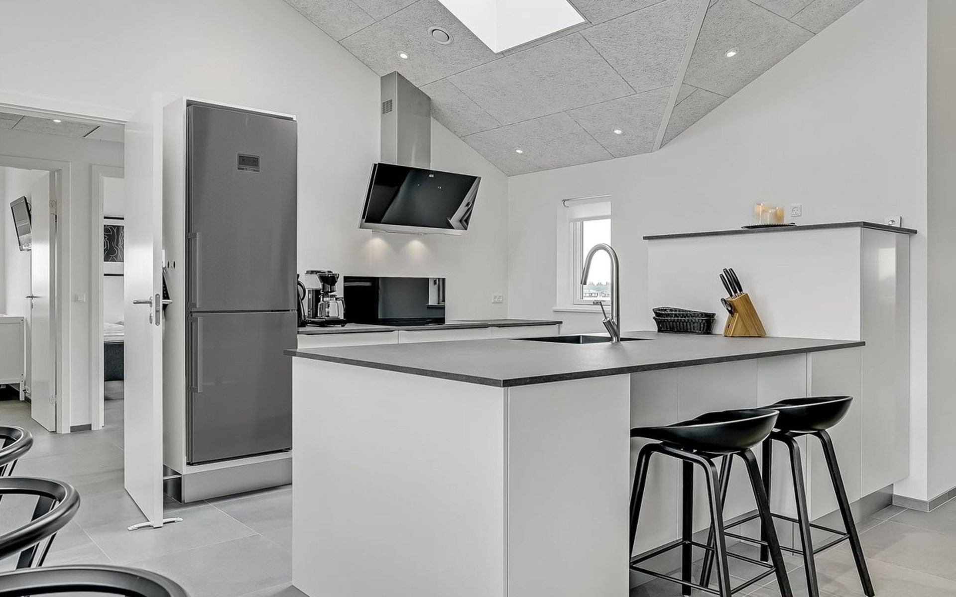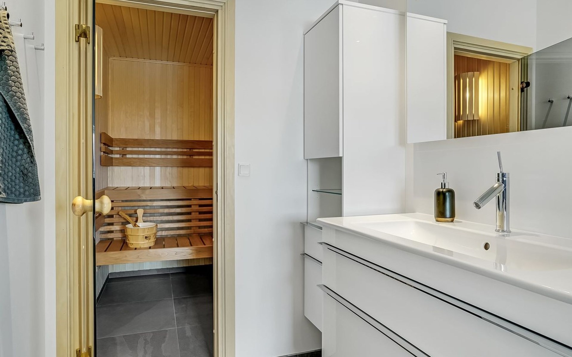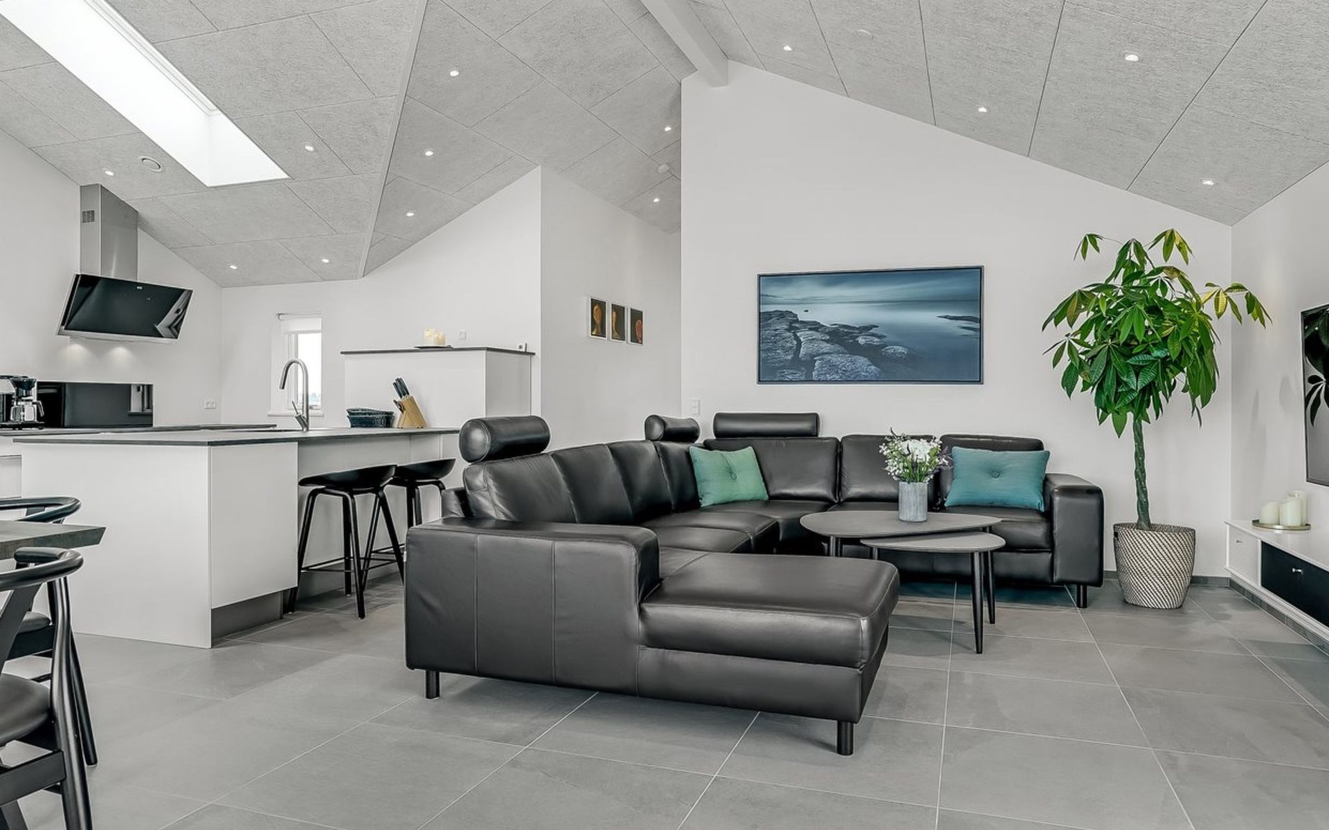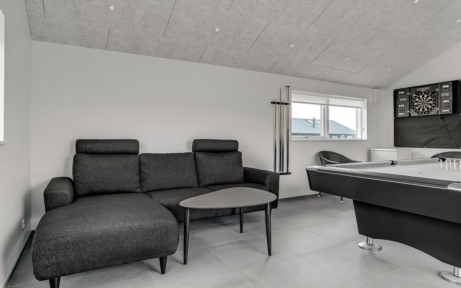 Einfamilienhaus, Baujahr 2018. 1.5 km vom Meer. Zur Alleinbenutzung: naturbelassenes Grundstück 2'102 m2. Terrasse (130 m2), Kinderspielplatz (Rutschbahn, Schaukel). Im Hause: Sauna, Trampolin, Waschmaschine, Wäschetrockner. Parkplatz beim Haus. Lebensmittelgeschäft 1.2 km. Golfplatz 5.5 km. Der Besitzer akzeptiert keine Jugendgruppen.