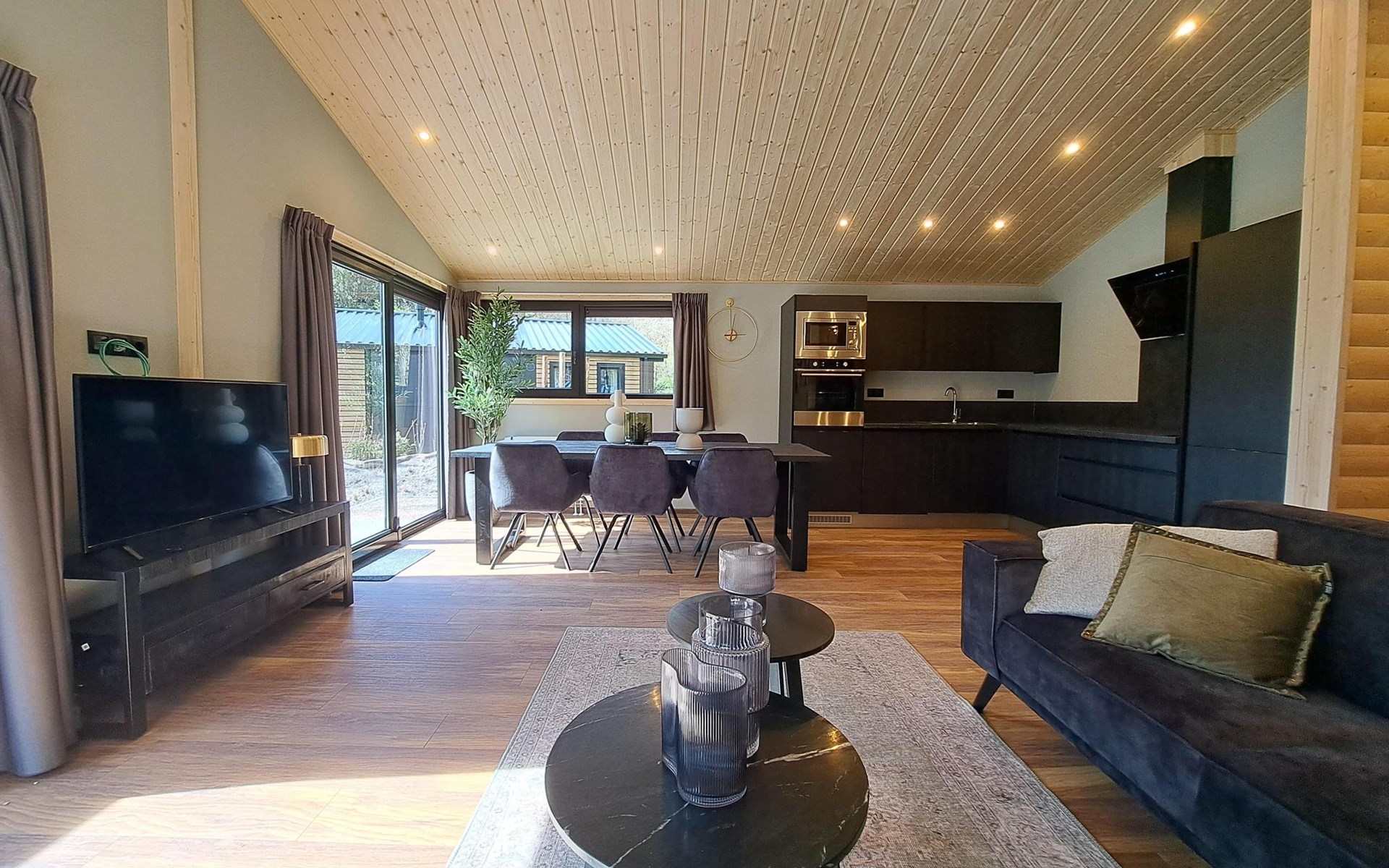 Hackfort Wood Hottub 6 ist ein modernes, freistehendes Chalet, das für bis zu 6 Personen geeignet ist. Durch die großen Fenster und Schiebetüren kommt viel Licht herein und hat man eine tolle Aussicht nach draußen. Das Wohnzimmer ist geräumig und verfügt über eine moderne Sitzecke mit Smart-TV, eine Essecke und eine offene Küche, die mit allen Annehmlichkeiten ausgestattet ist. Die Küche verfügt über ein Induktionskochfeld, einen Geschirrspüler, eine Filterkaffeemaschine und eine Kombimikrowelle. Die Schlafzimmer haben jeweils 2 einzelne Boxspringbetten, die in einem der Schlafzimmer zusammengeschoben wurden. Das Badezimmer hat ein Waschbecken, eine begehbare Dusche und eine Toilette. Es gibt auch eine separate Toilette. Im Garten auf der möblierten Terrasse mit Sonnenschirm kann man die Natur um sich herum genießen. Es kann 1 Auto in der Nähe der Unterkunft geparkt werden und es gibt kostenloses WLAN.