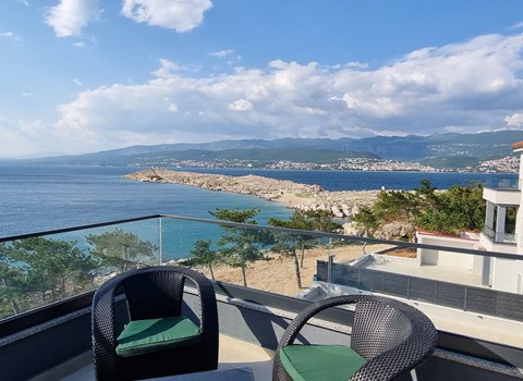 Dreifamilienhaus. 1 km vom Zentrum von Senj, sonnige, erhöhte Lage, 300 m vom Meer, 300 m vom Strand. Im Hause: Internetzugang. Parkplatz auf dem Grundstück. Supermarkt 900 m, Restaurant 1 km, Café 500 m, Bushaltestelle 1.3 km, Kieselstrand 300 m.