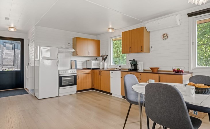 Einfamilienhaus, Baujahr 1979. Zur Alleinbenutzung: Grundstück 1'800 m2. Terrasse (38 m2). Im Hause: Waschmaschine. Parkplatz beim Haus. Lebensmittelgeschäft 3 km. Der Besitzer akzeptiert keine Jugendgruppen.