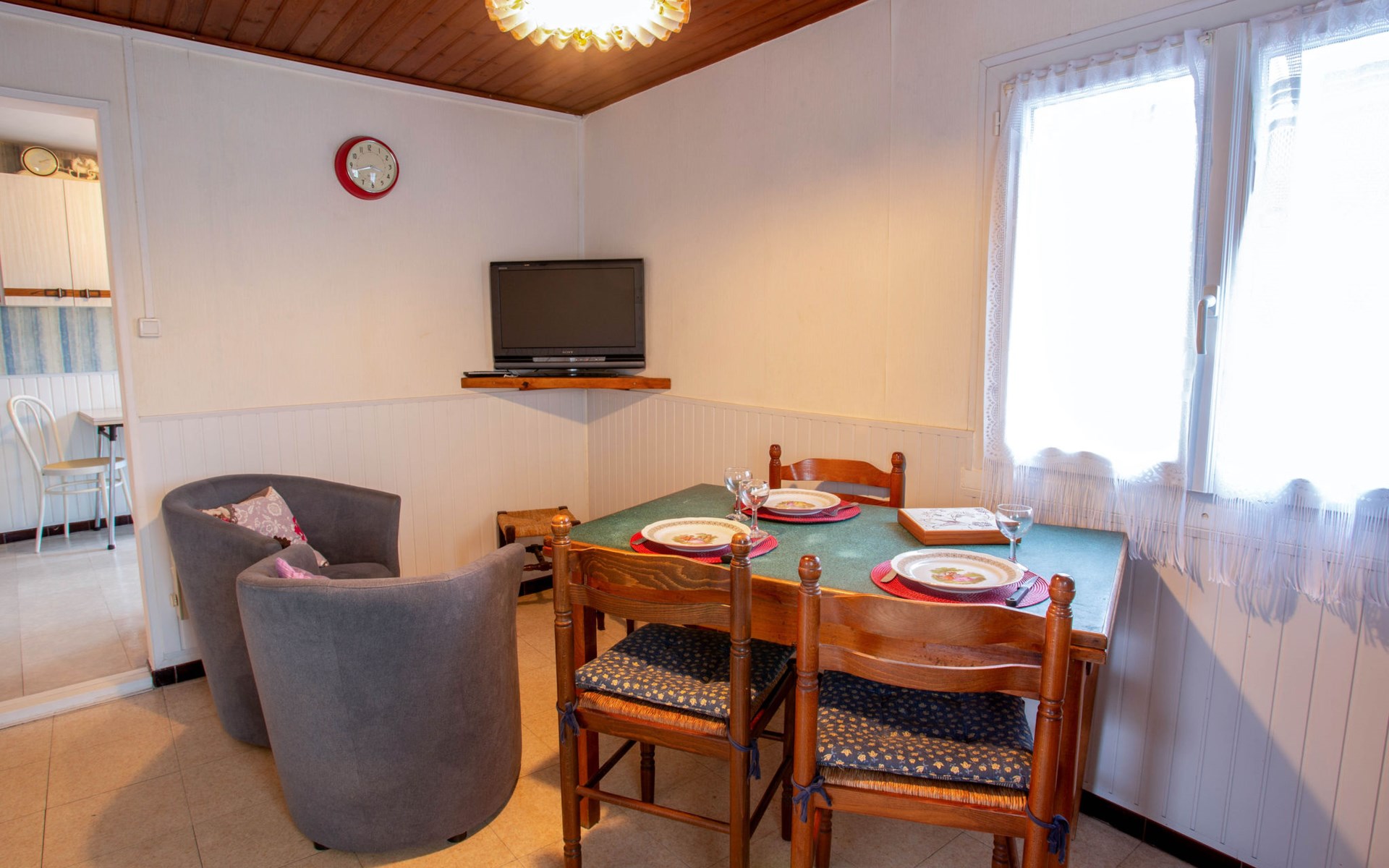 Kleines Reihenhaus "La Petite Escale". Alleinstehende Lage in einem Wohnquartier, 900 m vom Meer, 900 m vom Strand, Richtung Osten. Zur Alleinbenutzung: Hof. Gartenmöbel, Grill, Parkplatz beim Haus. Restaurant, Bäckerei, Café 900 m, Bushaltestelle "Navette estivale" 1 km, Bahnstation "Pornic" 1.5 km, Sandstrand "Plage de la Noeveillard" 1.2 km, Thermalbad "Alliance Pornic Thalasso & Spa" 3 km. Sporthafen 900 m, Golfplatz (18 Loch) 4 km, Minigolf 4 km, Reitstall 6 km. Nahe gelegene Sehenswürdigkeiten: Faïencerie de Pornic 600 m, Pornic Aventure Accrobranche 1.9 km, Biscuiterie Galettes Saint Michel 8 km, Legendia Parc 20 km, Nantes 52 km, Ile de Noirmoutier 60 km. Wandergebiete: Sentier des Douaniers 900 m. Bitte beachten: Die Schlüsselübergabe findet bei der Agentur Interhome in Pornic statt, 3 km. Der Besitzer wohnt auf dem gleichen Grundstück.