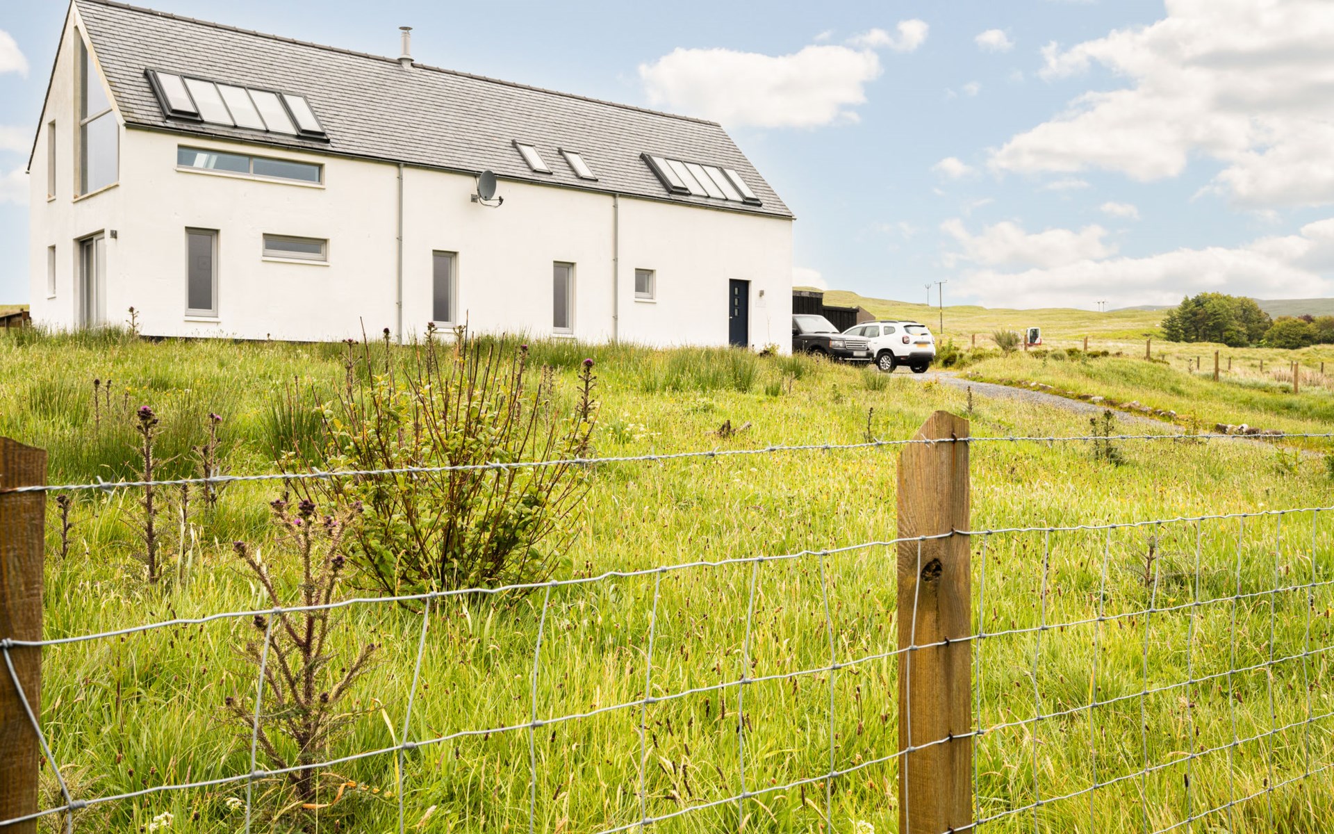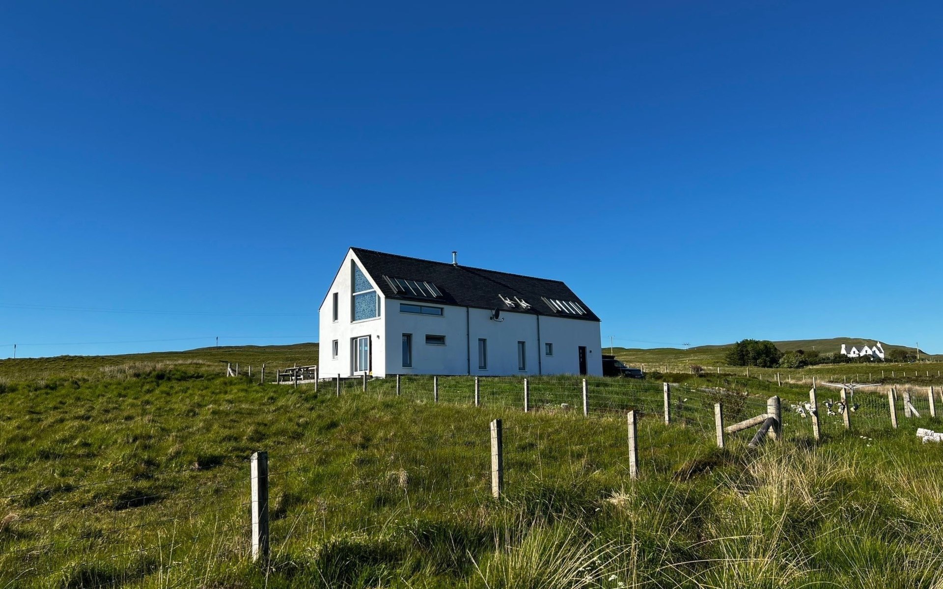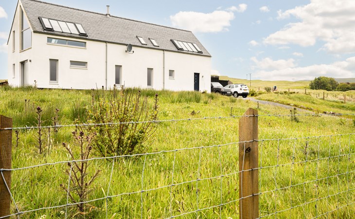 Modernes, freistehendes, luxuriöses Haus "Spindrift", auf 2 Stockwerken, renoviert im Jahre 2022. Am Ortsrand, 24 km vom Zentrum von Portree, ruhige Lage, im Grünen. Zur Alleinbenutzung: Garten mit Rasen. Sitzplatz, Terrasse, Gartenmöbel, Parkplatz beim Haus. Einkaufsgeschäft 8 km, Lebensmittelgeschäft 8 km, Bushaltestelle "Glendrynoch Junction" 20 km, Fähre "Uig" 54 km. Golfplatz (9 Loch) 32 km. Nahe gelegene Sehenswürdigkeiten: Dunvegan Castle 14 km, Cuilin Hills 15 km, Old Man of Storr 35 km, Fairy Pools 31 km, Skeabost Golf Club 32 km. Bitte beachten: Fahrzeug empfohlen.