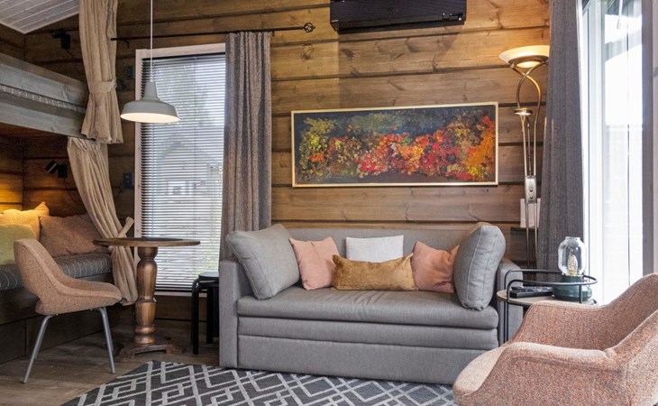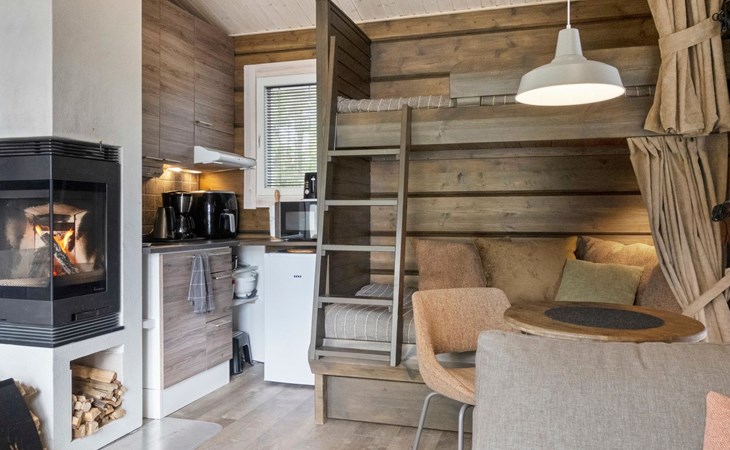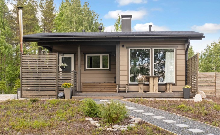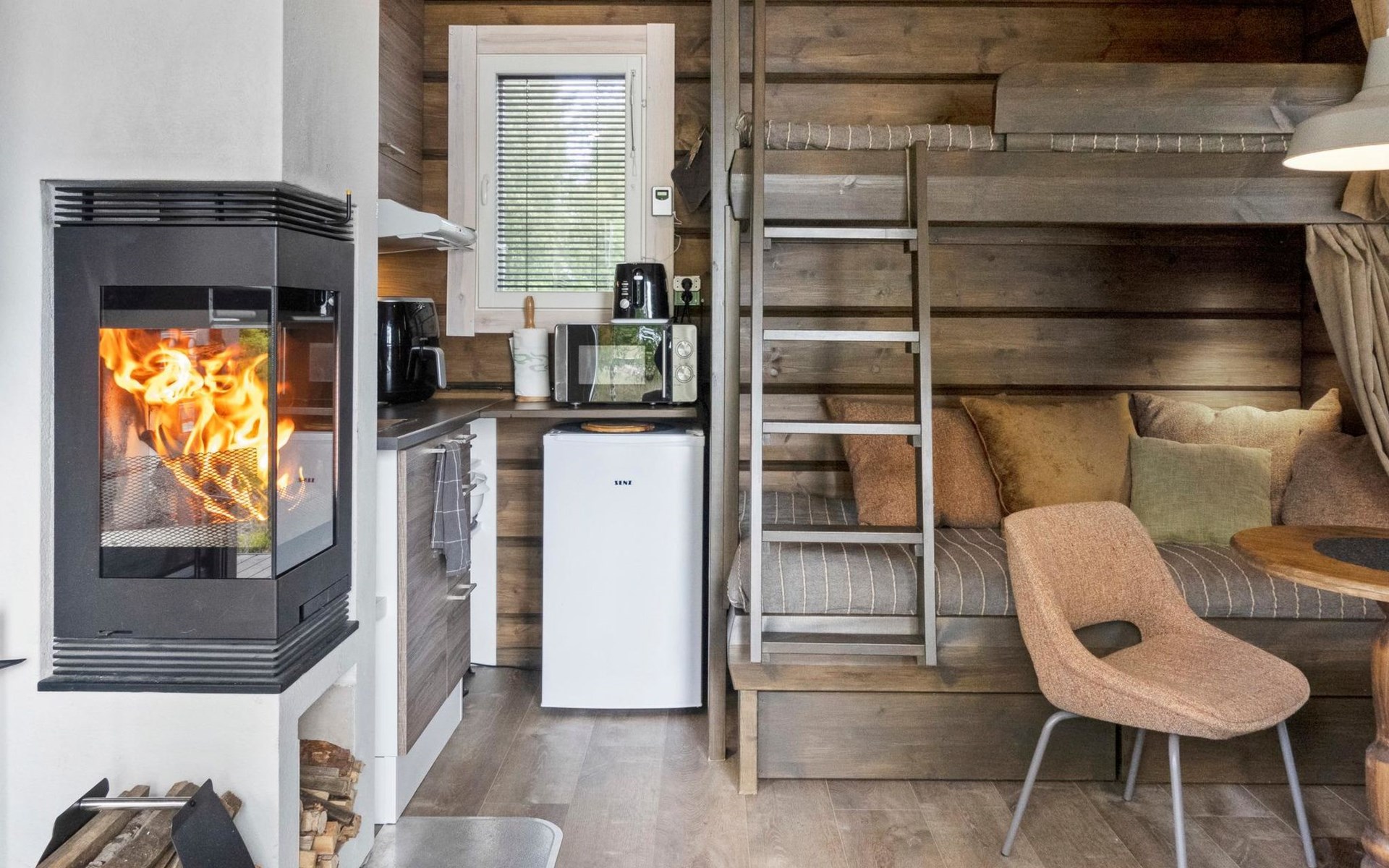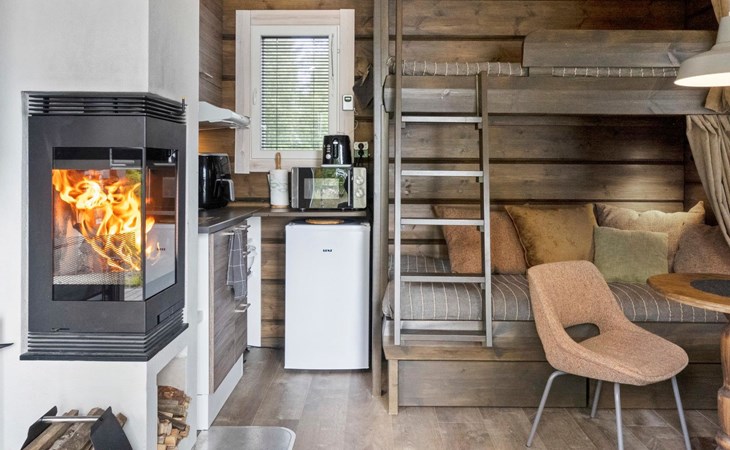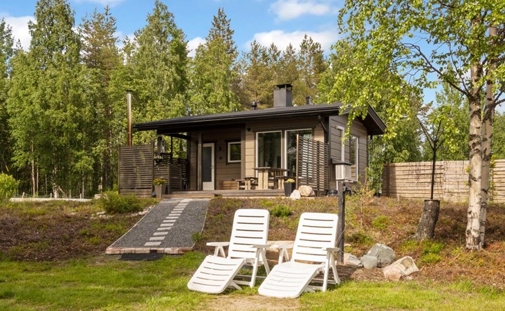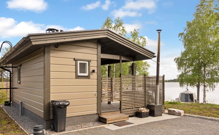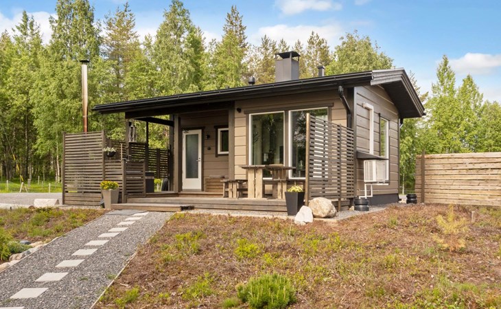 Log cabin, built in 2021. Living room/kitchen with bunk bed (lower bed 120 cm wide) and sofa bed. Sauna with wood-burning sauna stove, washroom/WC in connection with the sauna, access to the sauna via the porch.