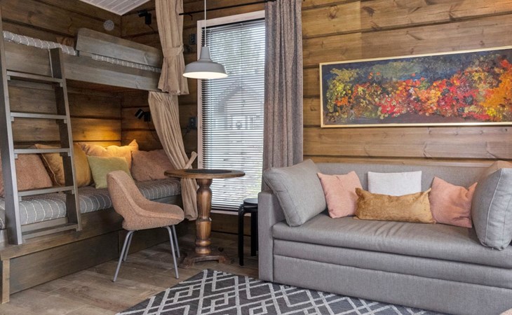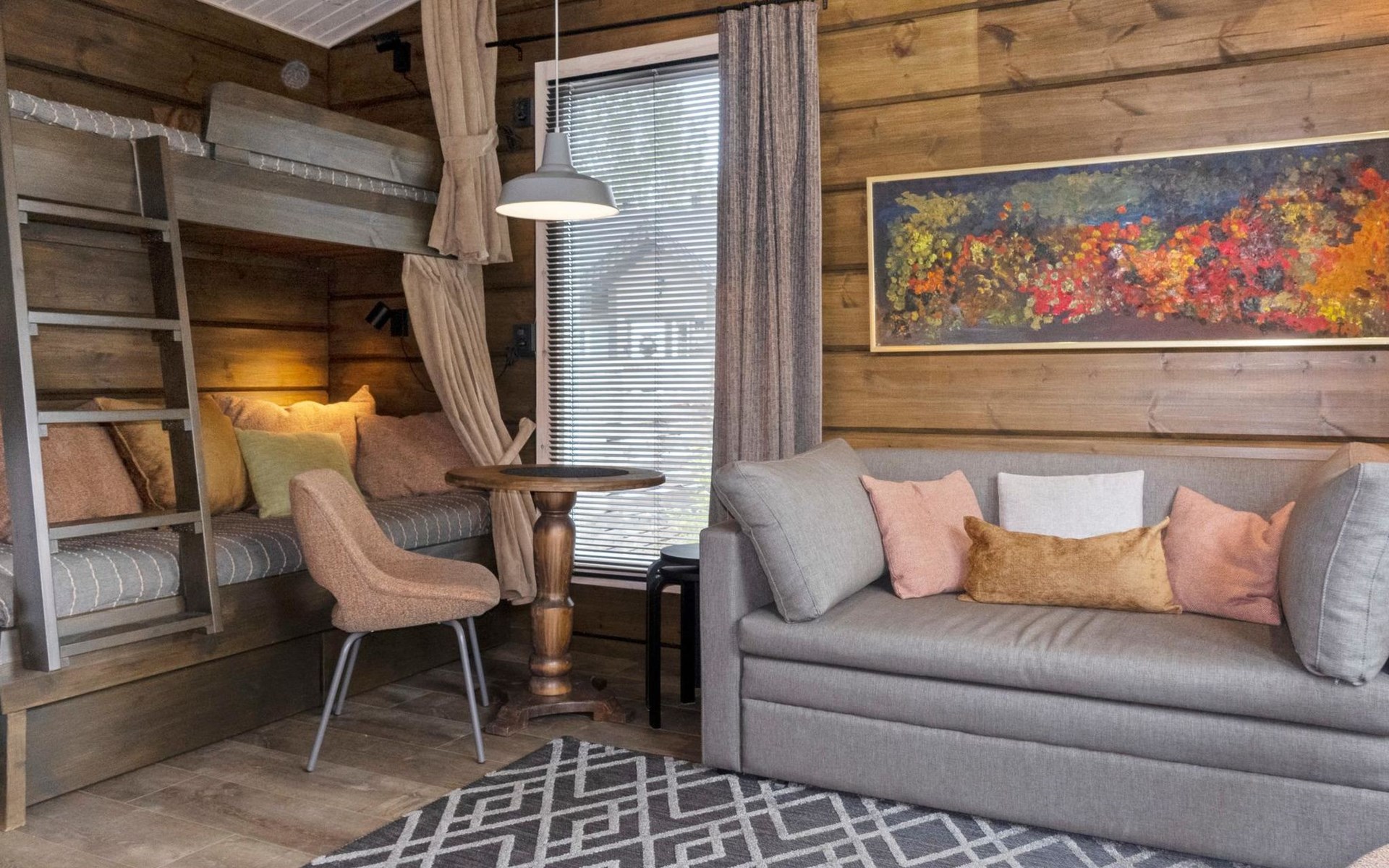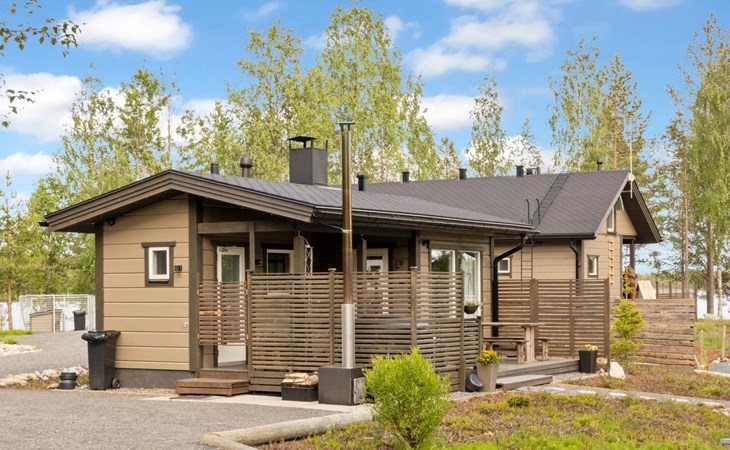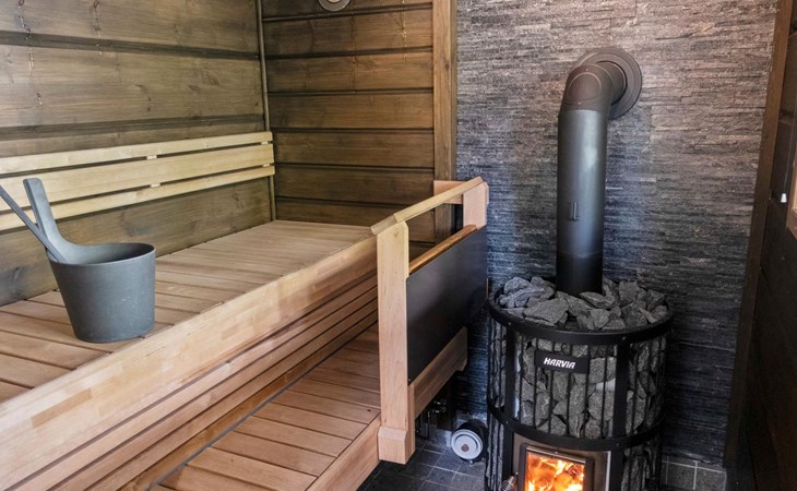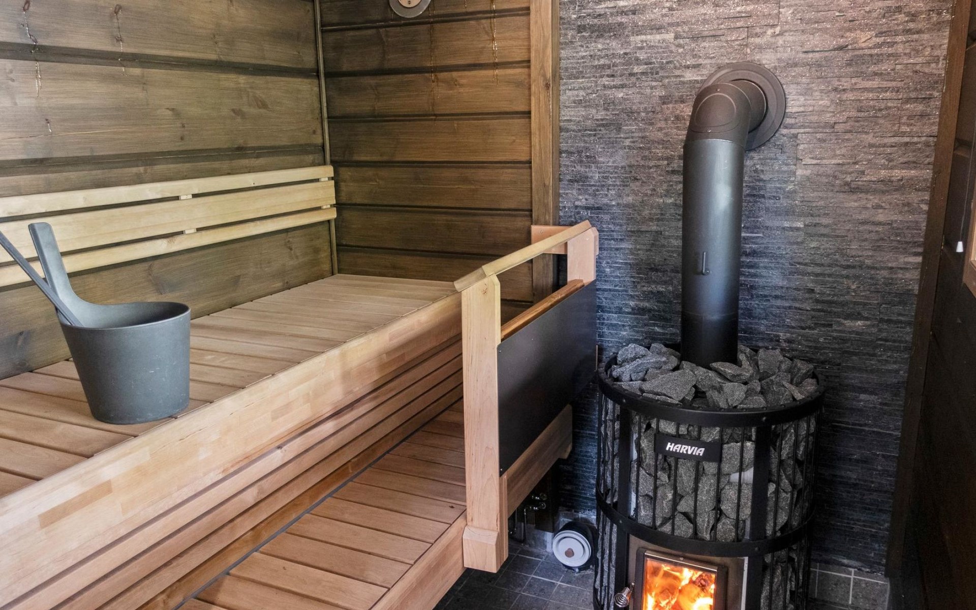 Log cabin, built in 2021. Living room/kitchen with bunk bed (lower bed 120 cm wide) and sofa bed. Sauna with wood-burning sauna stove, washroom/WC in connection with the sauna, access to the sauna via the porch.