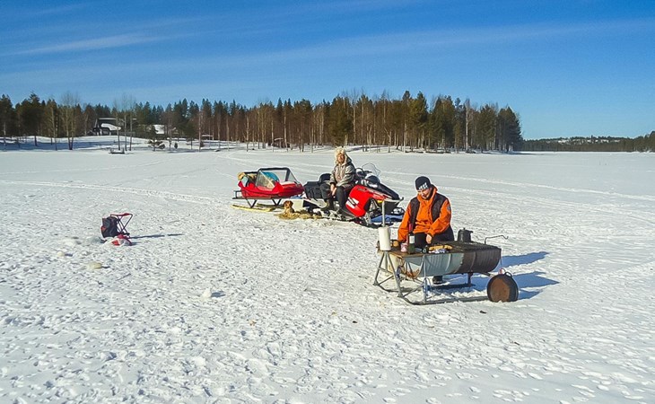 In winter, sledding hill for children. Sleds are available. The owner makes a ski trail starting from the yard of the cabin, length is about 5 km. Possibility to rent snowshoes. Snowmobile tours and guidance services available by a separate fee from the owner. There is also a possibility to rent Irbis snowmobile from the owner. This snowmobile is small-sized and slower than many other snowmobiles, that is why it is ideal for ice fishing trip for example.