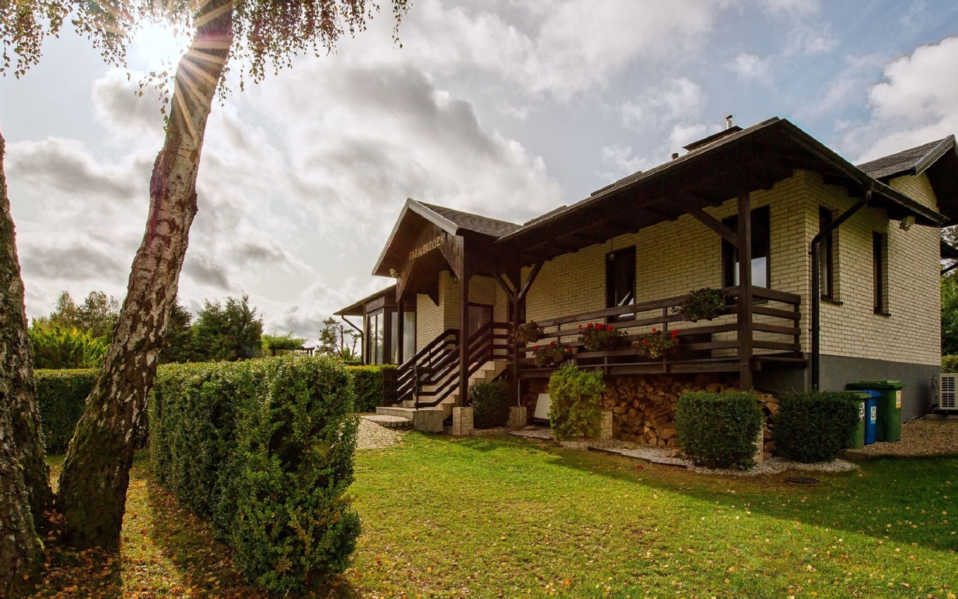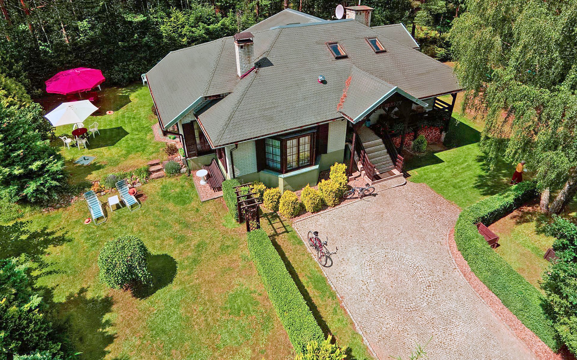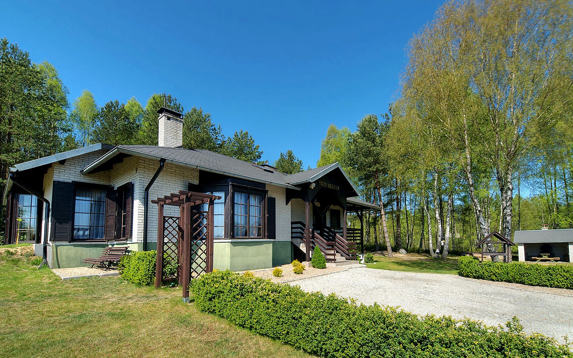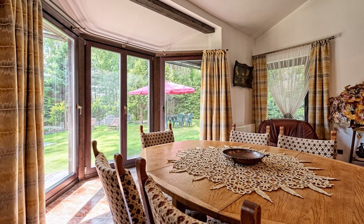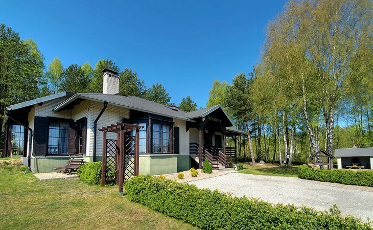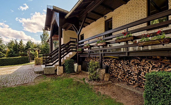 Einfamilienhaus "Trzy Brzozy". Direkt am Waldrand, 100 m vom See, 1 km vom Strand. Zur Alleinbenutzung: Grundstück 1'600 m2 (eingezäunt). Grill, Grillhaus (Schaukel). Im Hause: Wireless LAN, Waschmaschine, Heizung vor Ort zu zahlen. Parkplatz auf dem Grundstück, Einzelgarage. Lebensmittelgeschäft 7 km, Restaurant 7 km, Café 500 m, Bushaltestelle 3 km, Sandstrand 500 m. Reitstall 3 km, Skipisten 35 km. Nahe gelegene Sehenswürdigkeiten: Kamięnne kregi w Węsiorach 15 km, Kościół z 1782 r. W Szymbarku 32 km, Koszałkowo-Wieżyca, Centrum Aktywnego Wypoczynku 35 km. See mit Sandstrand und Vermietung von Wassersportgeräten im Freizeitzentrum "Dalmor" 500 m. In diesem Ferienzentrum befindet sich ausserdem eine Caféteria, wo Halb- und Vollpension möglich ist. Ein Ruderboot steht zur Verfügung (gratis). Brunnen (tief). Kaution: PLN 1000.