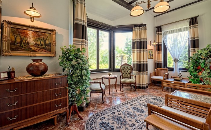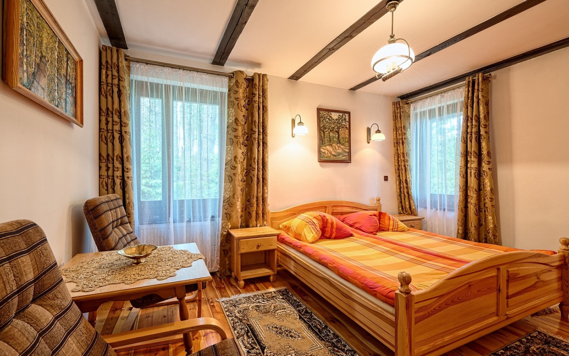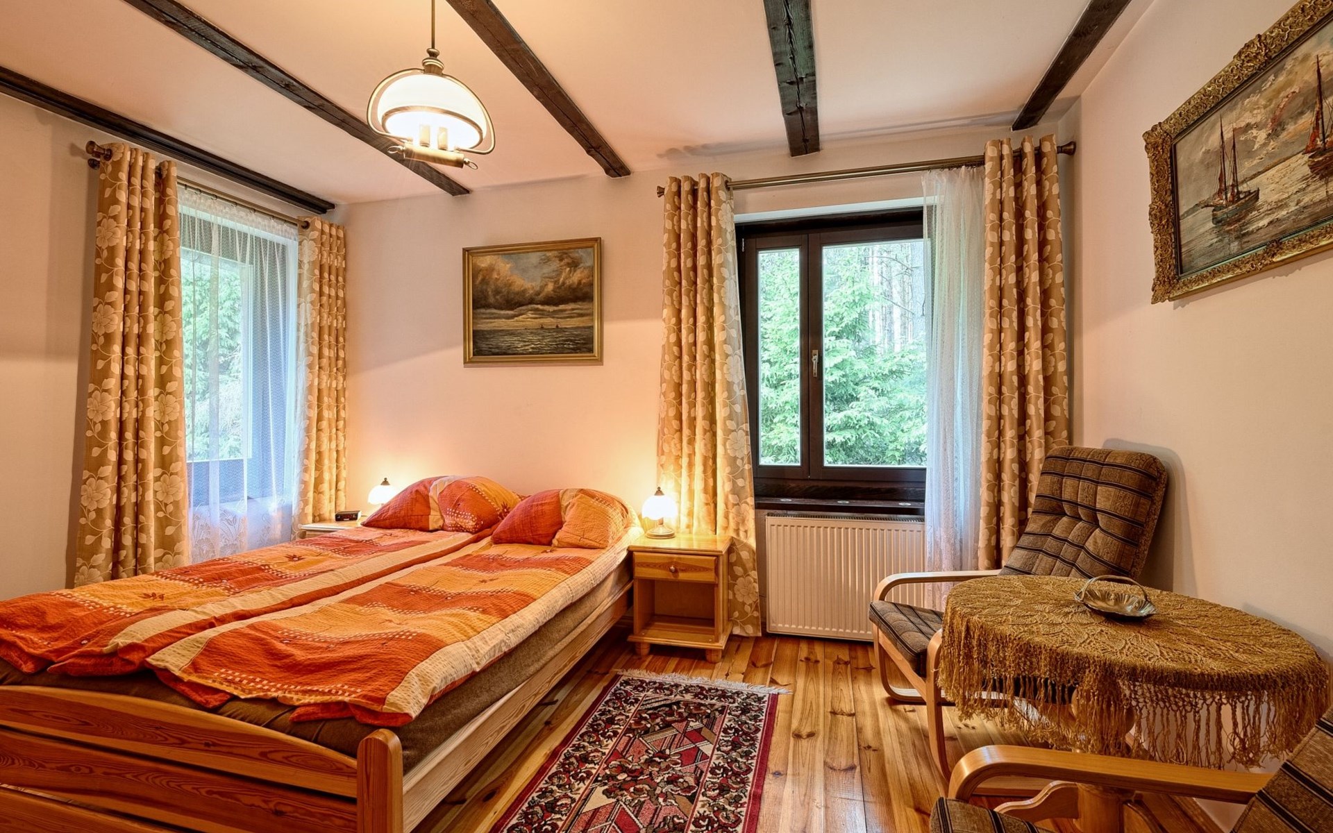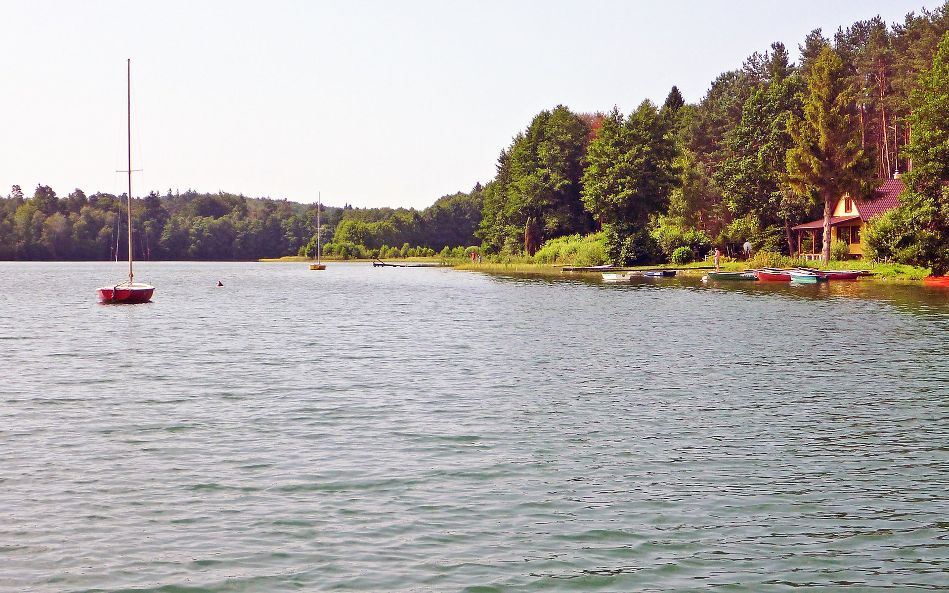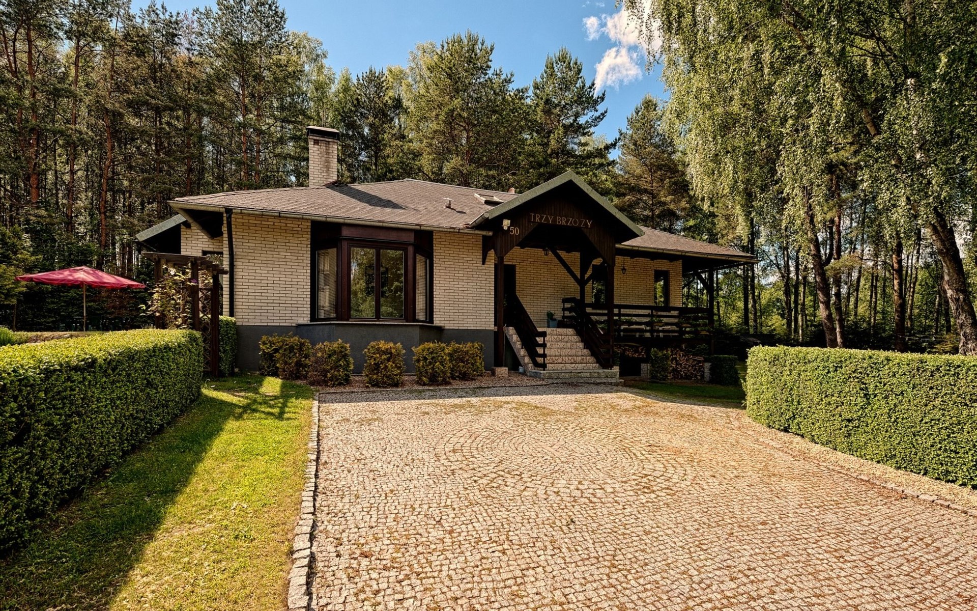 Einfamilienhaus "Trzy Brzozy". Direkt am Waldrand, 100 m vom See, 1 km vom Strand. Zur Alleinbenutzung: Grundstück 1'600 m2 (eingezäunt). Grill, Grillhaus (Schaukel). Im Hause: Wireless LAN, Waschmaschine, Heizung vor Ort zu zahlen. Parkplatz auf dem Grundstück, Einzelgarage. Lebensmittelgeschäft 7 km, Restaurant 7 km, Café 500 m, Bushaltestelle 3 km, Sandstrand 500 m. Reitstall 3 km, Skipisten 35 km. Nahe gelegene Sehenswürdigkeiten: Kamięnne kregi w Węsiorach 15 km, Kościół z 1782 r. W Szymbarku 32 km, Koszałkowo-Wieżyca, Centrum Aktywnego Wypoczynku 35 km. See mit Sandstrand und Vermietung von Wassersportgeräten im Freizeitzentrum "Dalmor" 500 m. In diesem Ferienzentrum befindet sich ausserdem eine Caféteria, wo Halb- und Vollpension möglich ist. Ein Ruderboot steht zur Verfügung (gratis). Brunnen (tief). Kaution: PLN 1000.