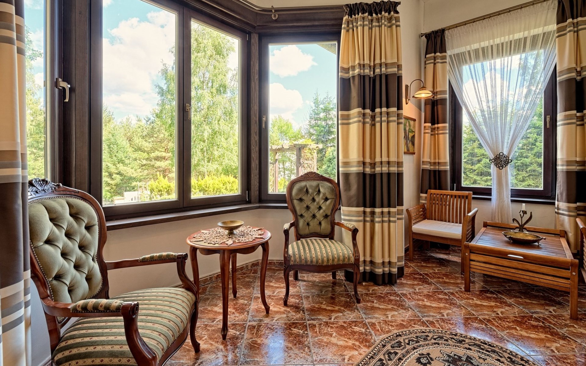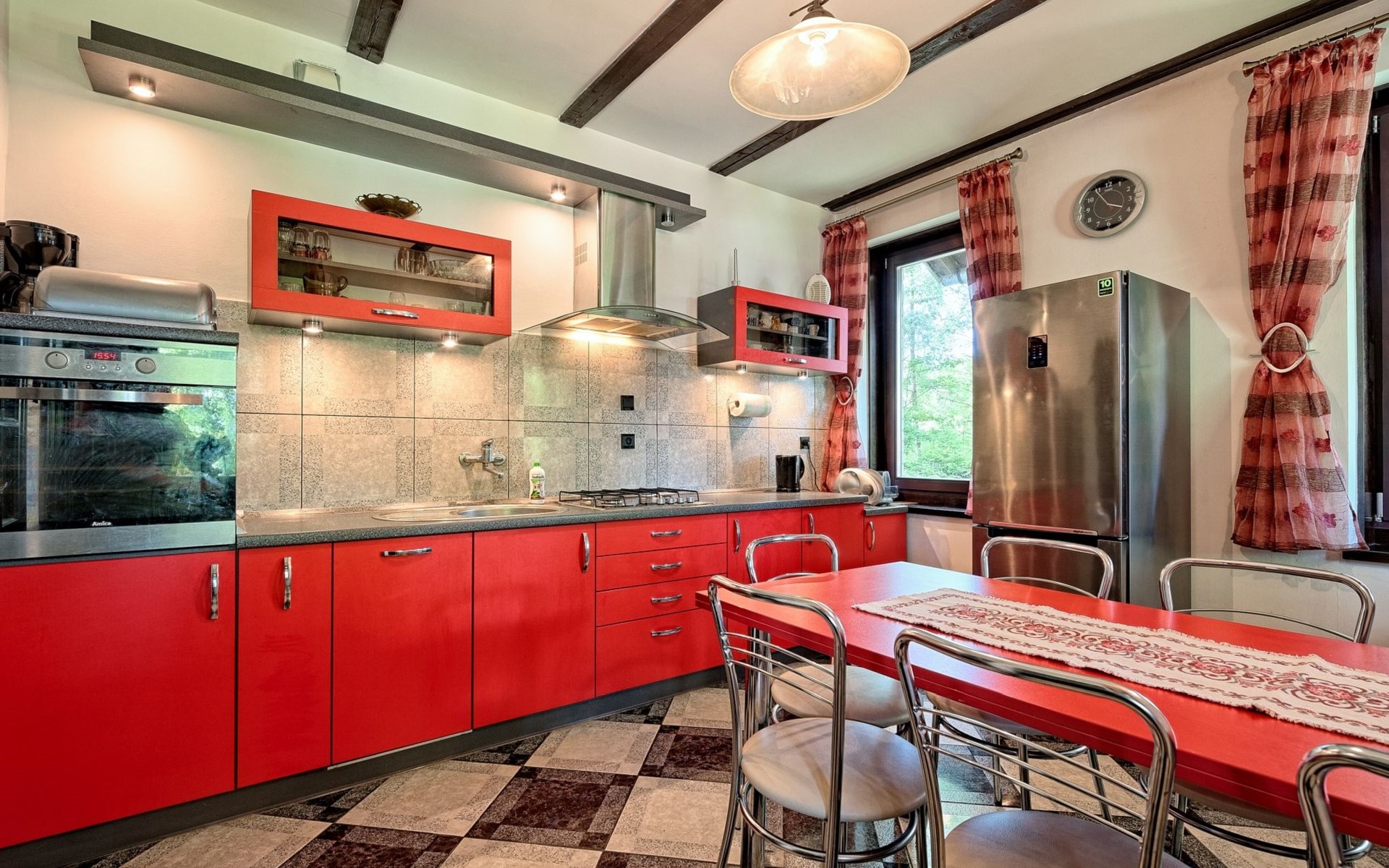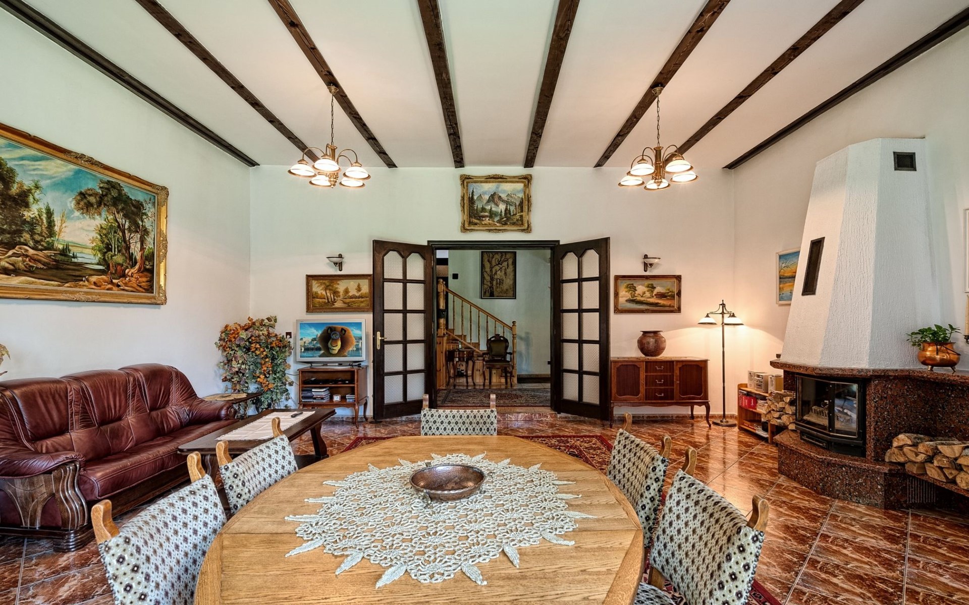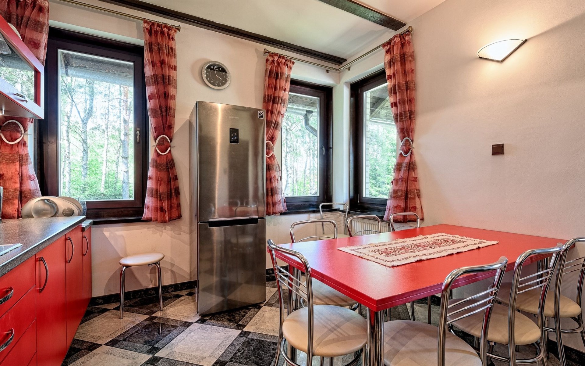 Einfamilienhaus "Trzy Brzozy". Direkt am Waldrand, 100 m vom See, 1 km vom Strand. Zur Alleinbenutzung: Grundstück 1'600 m2 (eingezäunt). Grill, Grillhaus (Schaukel). Im Hause: Wireless LAN, Waschmaschine, Heizung vor Ort zu zahlen. Parkplatz auf dem Grundstück, Einzelgarage. Lebensmittelgeschäft 7 km, Restaurant 7 km, Café 500 m, Bushaltestelle 3 km, Sandstrand 500 m. Reitstall 3 km, Skipisten 35 km. Nahe gelegene Sehenswürdigkeiten: Kamięnne kregi w Węsiorach 15 km, Kościół z 1782 r. W Szymbarku 32 km, Koszałkowo-Wieżyca, Centrum Aktywnego Wypoczynku 35 km. See mit Sandstrand und Vermietung von Wassersportgeräten im Freizeitzentrum "Dalmor" 500 m. In diesem Ferienzentrum befindet sich ausserdem eine Caféteria, wo Halb- und Vollpension möglich ist. Ein Ruderboot steht zur Verfügung (gratis). Brunnen (tief). Kaution: PLN 1000.