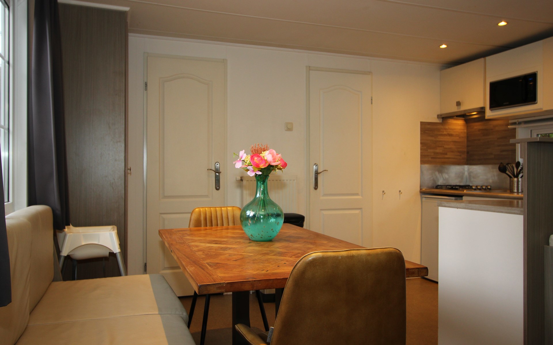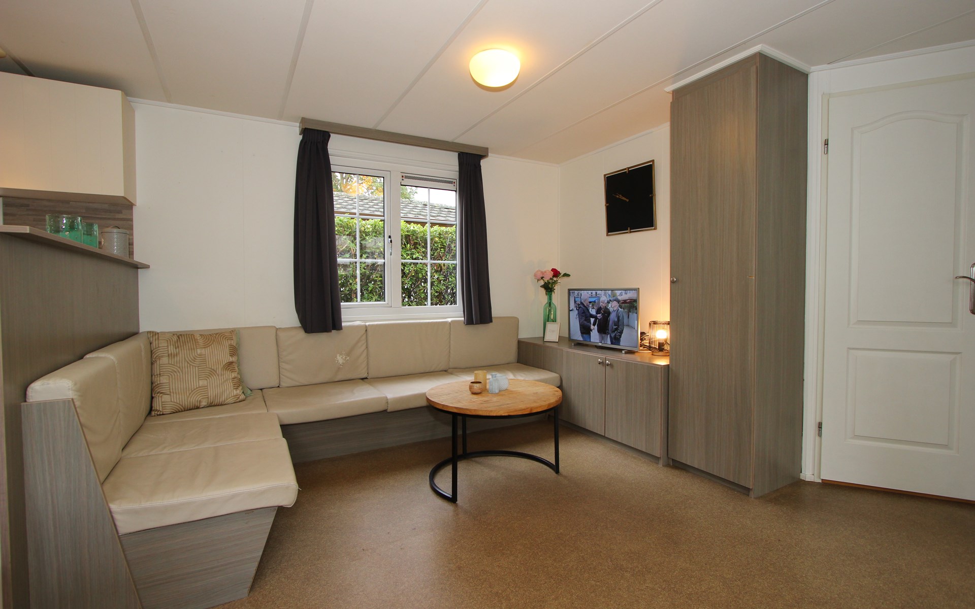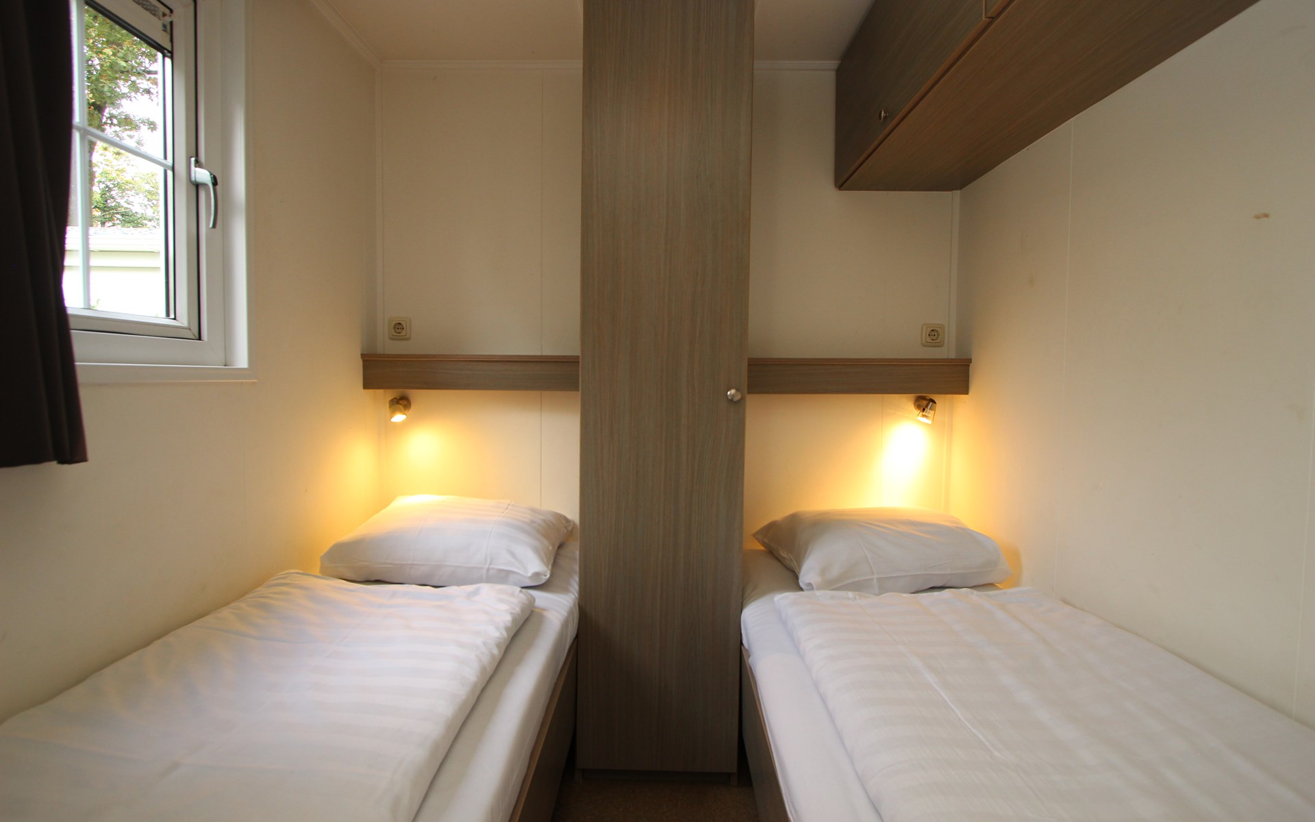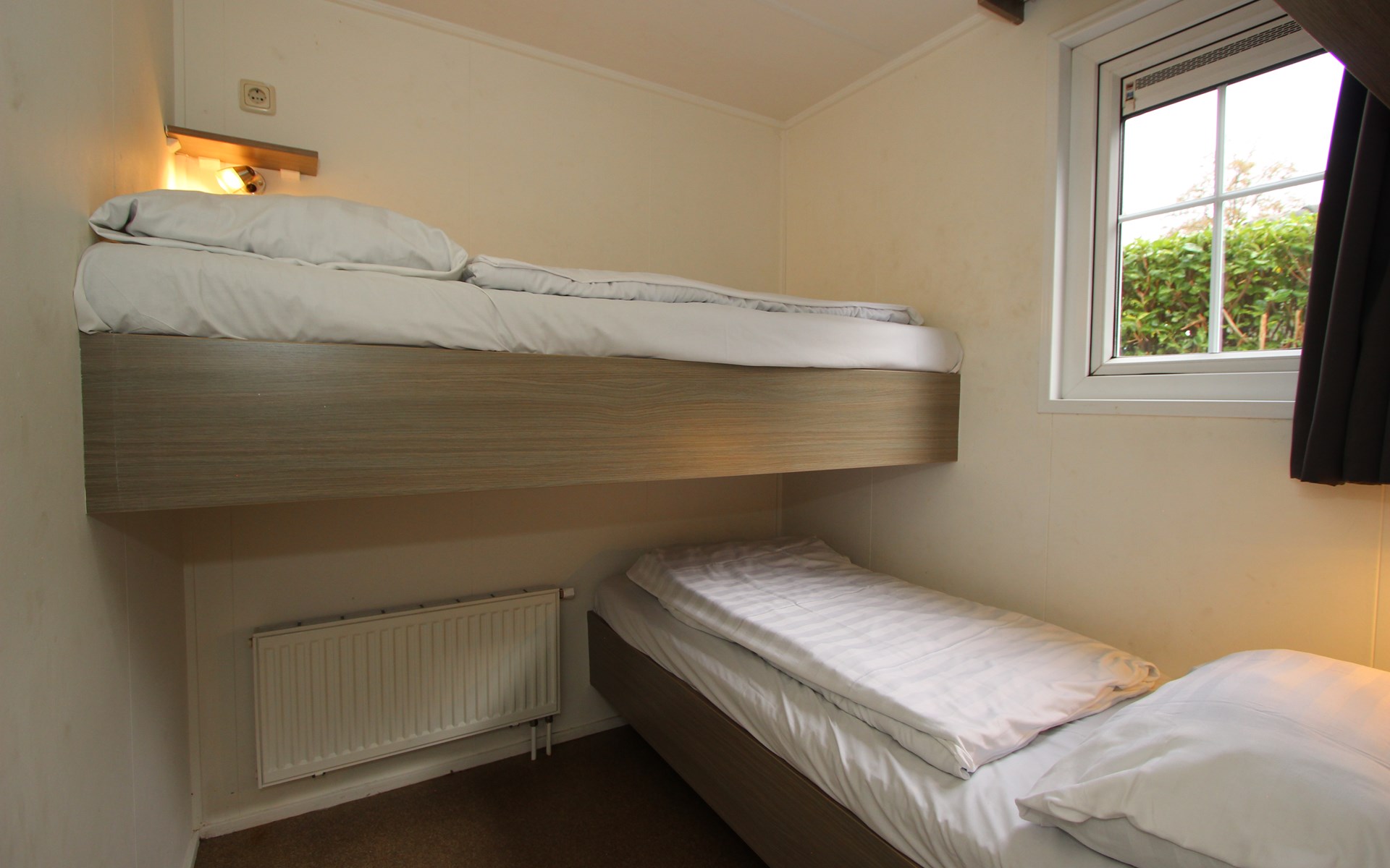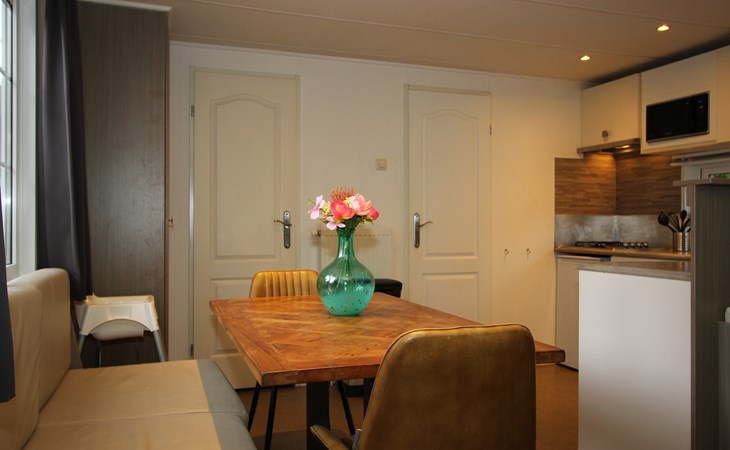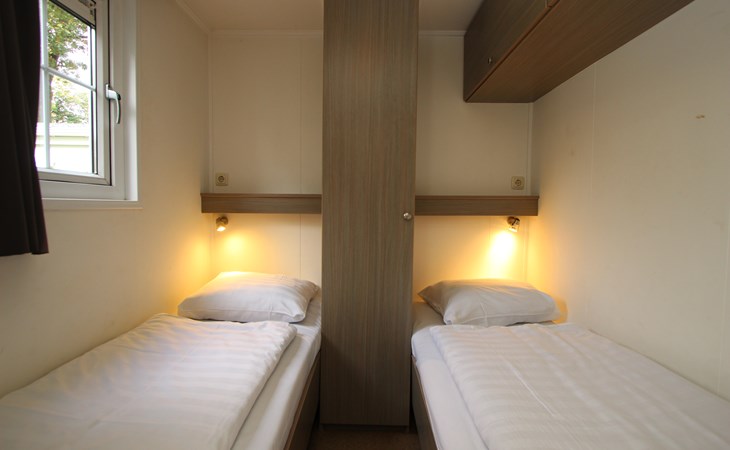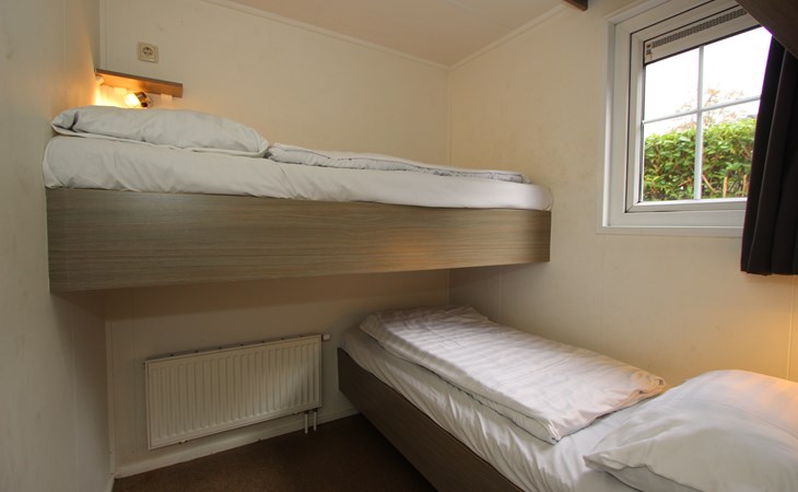 Berkel 6 ist ein freistehendes, ebenerdiges Chalet mit allen Annehmlichkeiten für einen entspannten Aufenthalt mit 6 Personen. Im Wohnzimmer befindet sich eine Sitzecke mit Fernseher, ein Essbereich und eine Küche mit Mikrowelle, Wasserkocher und Kaffeemaschine. Das Chalet hat 3 Schlafzimmer, 2 Schlafzimmer mit 2 Einzelbetten und 1 Schlafzimmer mit einem Etagenbett. Das Badezimmer hat eine Toilette, eine Dusche und ein Waschbecken. Im Außenbereich des Berkel 6 lädt eine möblierte, gemütliche Terrasse zum Verweilen ein. Am Haus befindet sich ein Parkplatz für ein Auto. Das WLAN ist kostenfrei nutzbar.