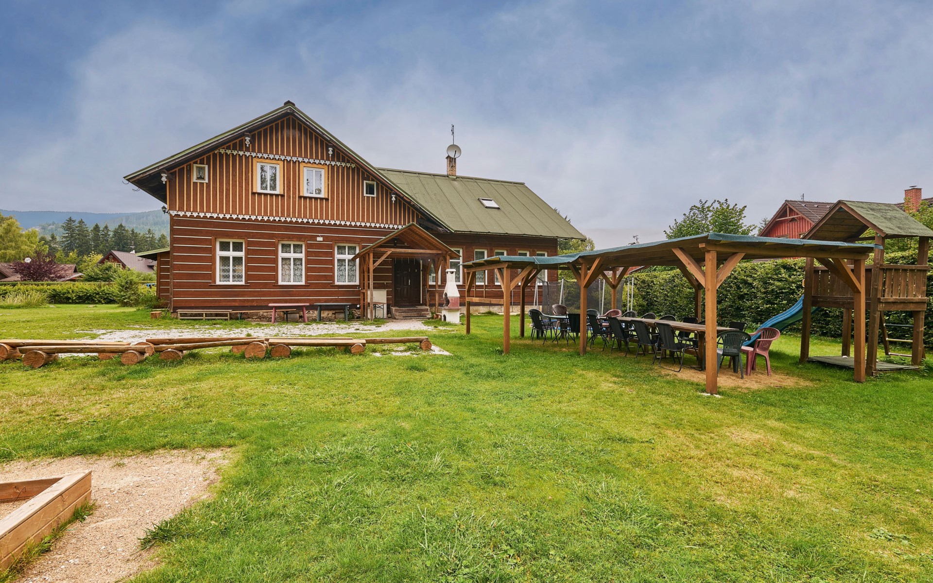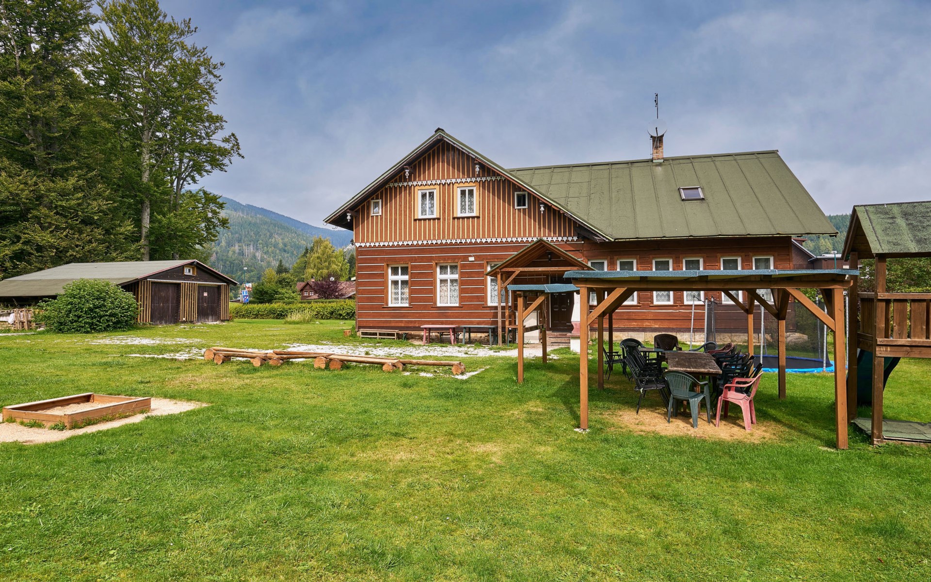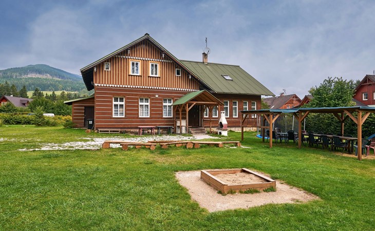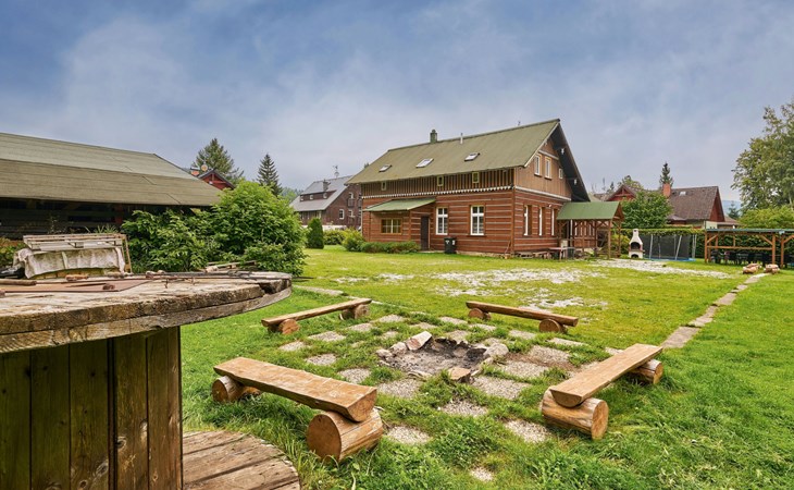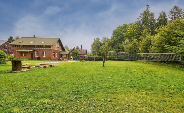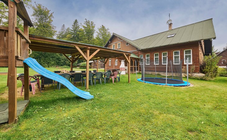 Freistehendes, komfortables Landhaus "Švýcarský dvůr Lodge", auf 2 Stockwerken, aus dem 19. Jahrhundert. Im Ort, 800 m vom Zentrum von Janské Lázně, ruhige Lage, 200 m vom Skigebiet. Zur Alleinbenutzung: grosser Garten 3'000 m2 mit Rasen. Sitzplatz, Gartenmöbel, Grill, Kinderspielplatz (Rutschbahn, Schaukel). In der Anlage: Trampolin, Zentralheizung. Parkplatz beim Haus. Lebensmittelgeschäft 1.2 km, Supermarkt 2 km, Restaurant 1 km, Café 1 km, Bushaltestelle "Janské Lázně, Lesní dům" 700 m, Bahnstation "Svoboda nad Úpou" 2.8 km, Freibad 1 km, Hallenbad 1 km, Thermalbad "Janské Lázně" 1 km. Golfplatz (18 Loch) 8 km, Tennis 800 m, Minigolf 2.5 km, Reitstall 2 km, Wanderwege ab Haus 20 m, Radweg 700 m, Skilift 900 m, Gondelbahn 1.7 km, Skipisten 200 m, Skiverleih 600 m, Skibushaltestelle 50 m, Skischule, Schlittelbahn 800 m, Langlaufloipe 2.5 km, Kinderspielplatz 200 m. Nahe gelegene Sehenswürdigkeiten: Aquacentrum, Janské Lázně Spa 1 km, Stezka korunami stromů Janské Lázně 3 km, RelaxPark Pec, lanovka Sněžka 15 km, zámek Vrchlabí, Aquacentrum Vrchlabí 18 km, Špindlerův Mlýn, Zoo Safari Dvůr Králové 33 km, Adršpašské skály 42 km. Bekannte Skigebiete sind gut erreichbar: Janské Lázně - Košťálka 1.5 km, Černá hora - Pec 1900 m, Mladé Buky 7 km, Horní Malá Úpa 20 km, Špindlerův Mlýn 34 km. Bekannte Seen in der Umgebung sind gut erreichbar: Dolce Trutnov 18 km. Wandergebiete: krkonošské naučné stezky.