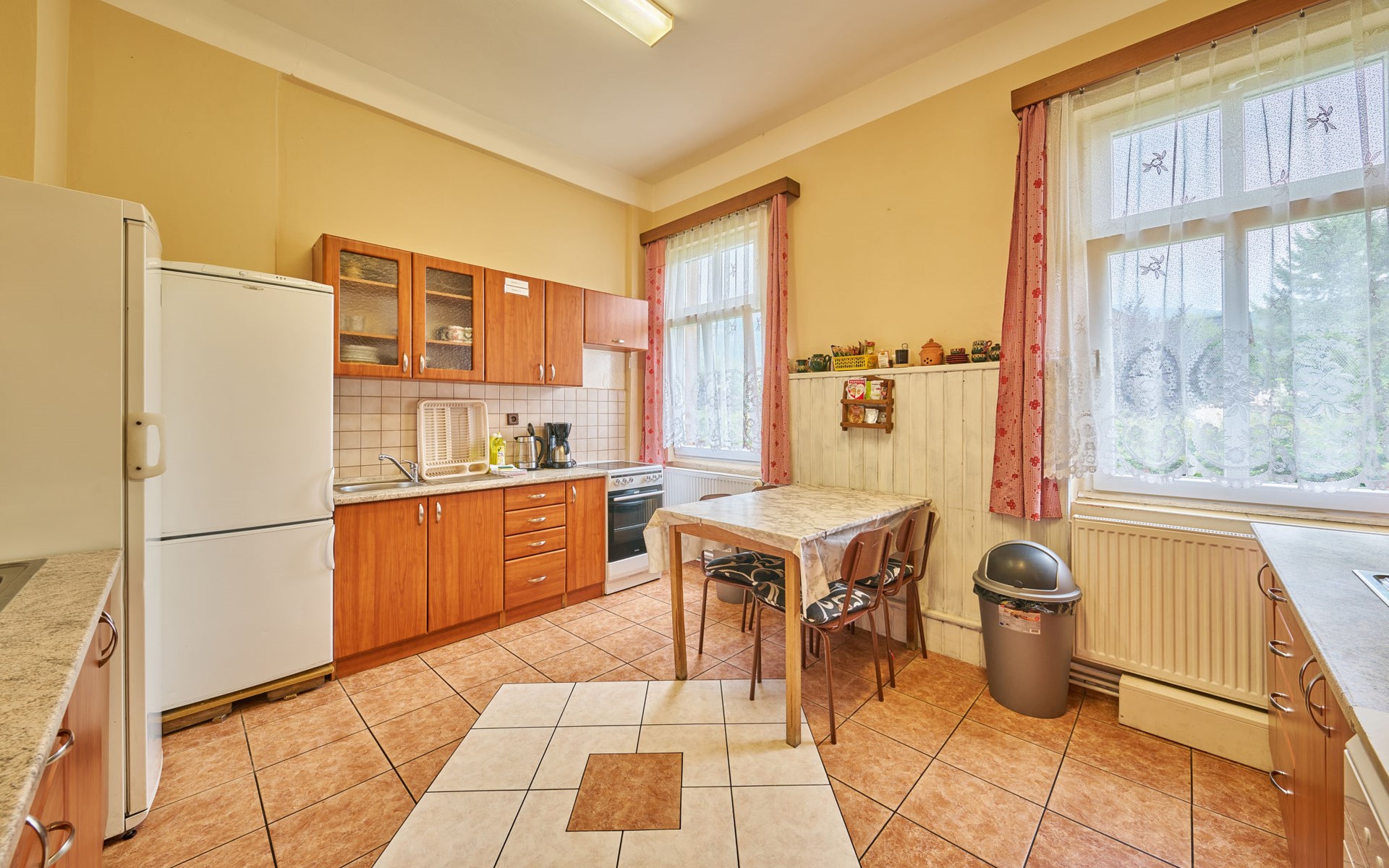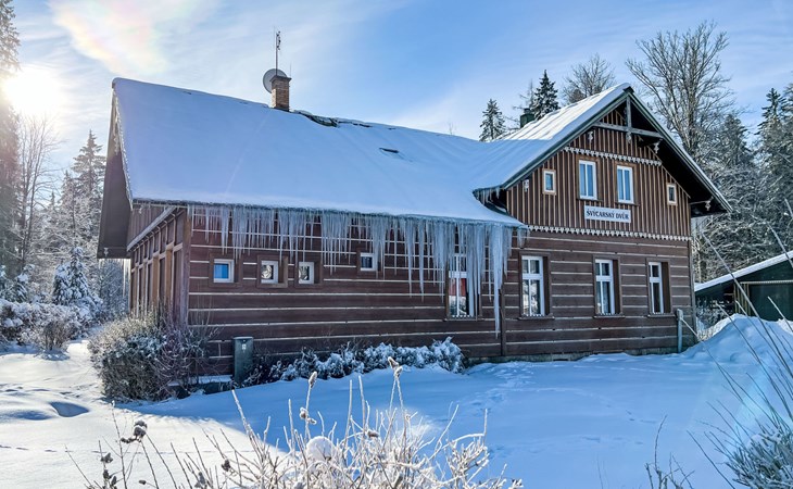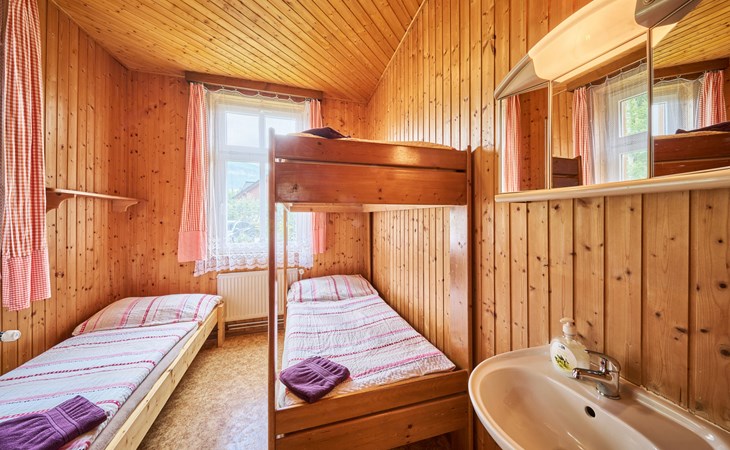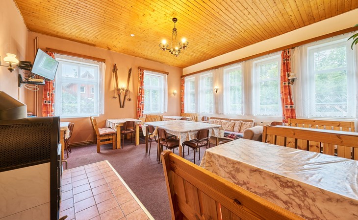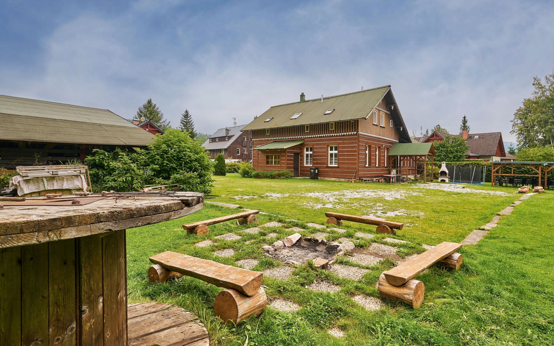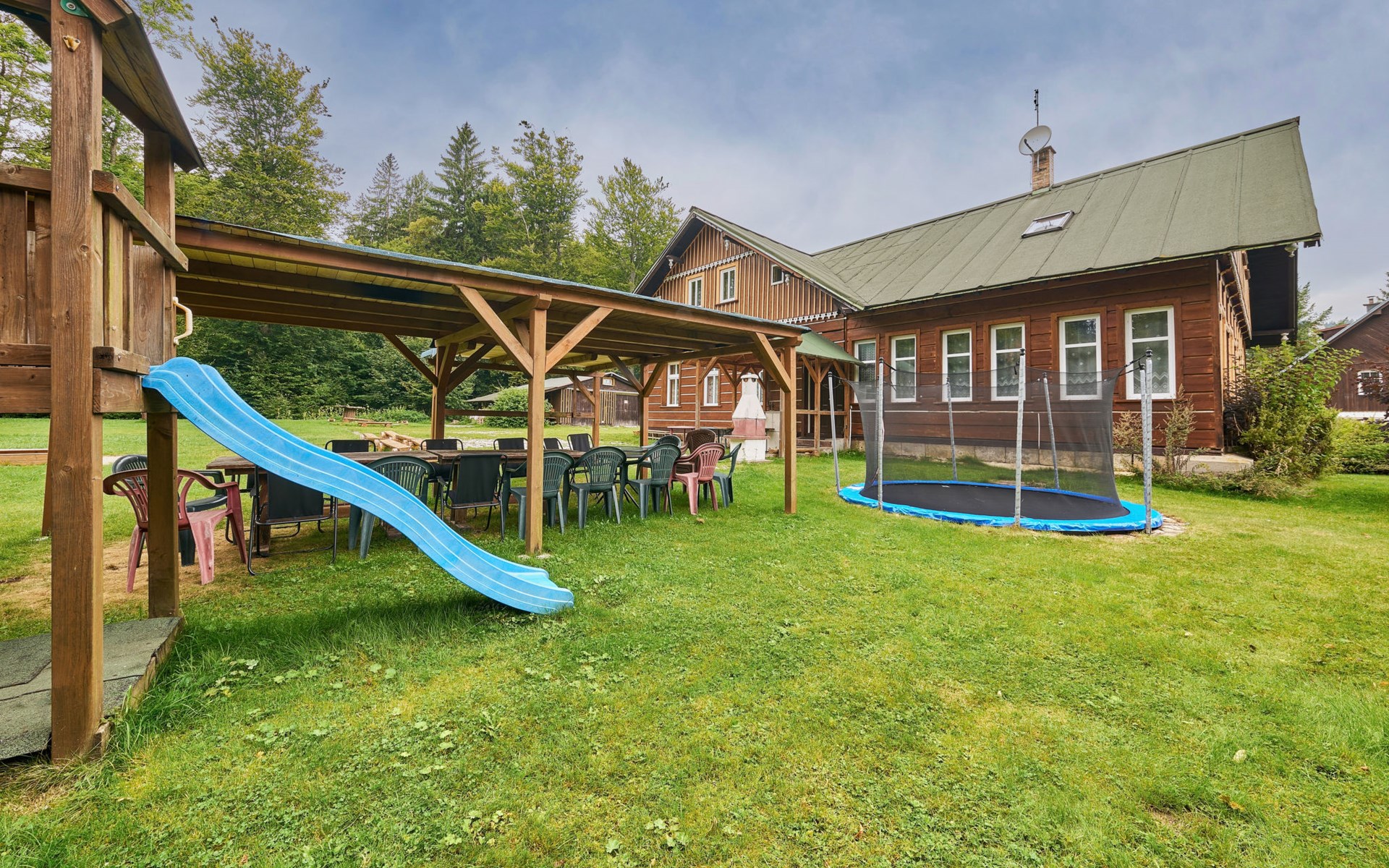 Freistehendes, komfortables Landhaus "Švýcarský dvůr Lodge", auf 2 Stockwerken, aus dem 19. Jahrhundert. Im Ort, 800 m vom Zentrum von Janské Lázně, ruhige Lage, 200 m vom Skigebiet. Zur Alleinbenutzung: grosser Garten 3'000 m2 mit Rasen. Sitzplatz, Gartenmöbel, Grill, Kinderspielplatz (Rutschbahn, Schaukel). In der Anlage: Trampolin, Zentralheizung. Parkplatz beim Haus. Lebensmittelgeschäft 1.2 km, Supermarkt 2 km, Restaurant 1 km, Café 1 km, Bushaltestelle "Janské Lázně, Lesní dům" 700 m, Bahnstation "Svoboda nad Úpou" 2.8 km, Freibad 1 km, Hallenbad 1 km, Thermalbad "Janské Lázně" 1 km. Golfplatz (18 Loch) 8 km, Tennis 800 m, Minigolf 2.5 km, Reitstall 2 km, Wanderwege ab Haus 20 m, Radweg 700 m, Skilift 900 m, Gondelbahn 1.7 km, Skipisten 200 m, Skiverleih 600 m, Skibushaltestelle 50 m, Skischule, Schlittelbahn 800 m, Langlaufloipe 2.5 km, Kinderspielplatz 200 m. Nahe gelegene Sehenswürdigkeiten: Aquacentrum, Janské Lázně Spa 1 km, Stezka korunami stromů Janské Lázně 3 km, RelaxPark Pec, lanovka Sněžka 15 km, zámek Vrchlabí, Aquacentrum Vrchlabí 18 km, Špindlerův Mlýn, Zoo Safari Dvůr Králové 33 km, Adršpašské skály 42 km. Bekannte Skigebiete sind gut erreichbar: Janské Lázně - Košťálka 1.5 km, Černá hora - Pec 1900 m, Mladé Buky 7 km, Horní Malá Úpa 20 km, Špindlerův Mlýn 34 km. Bekannte Seen in der Umgebung sind gut erreichbar: Dolce Trutnov 18 km. Wandergebiete: krkonošské naučné stezky.