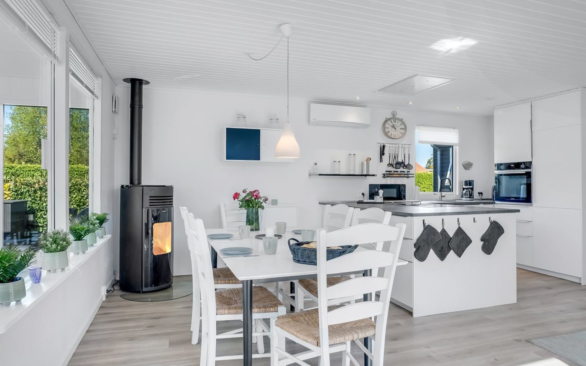 Einfamilienhaus, Baujahr 1970. 600 m vom Meer. Zur Alleinbenutzung: Grundstück 1'100 m2, gepflegter Garten. Grill. Im Hause: Trampolin, Waschmaschine. Parkplatz beim Haus. Carport. Lebensmittelgeschäft 600 m. Der Besitzer akzeptiert keine Jugendgruppen.