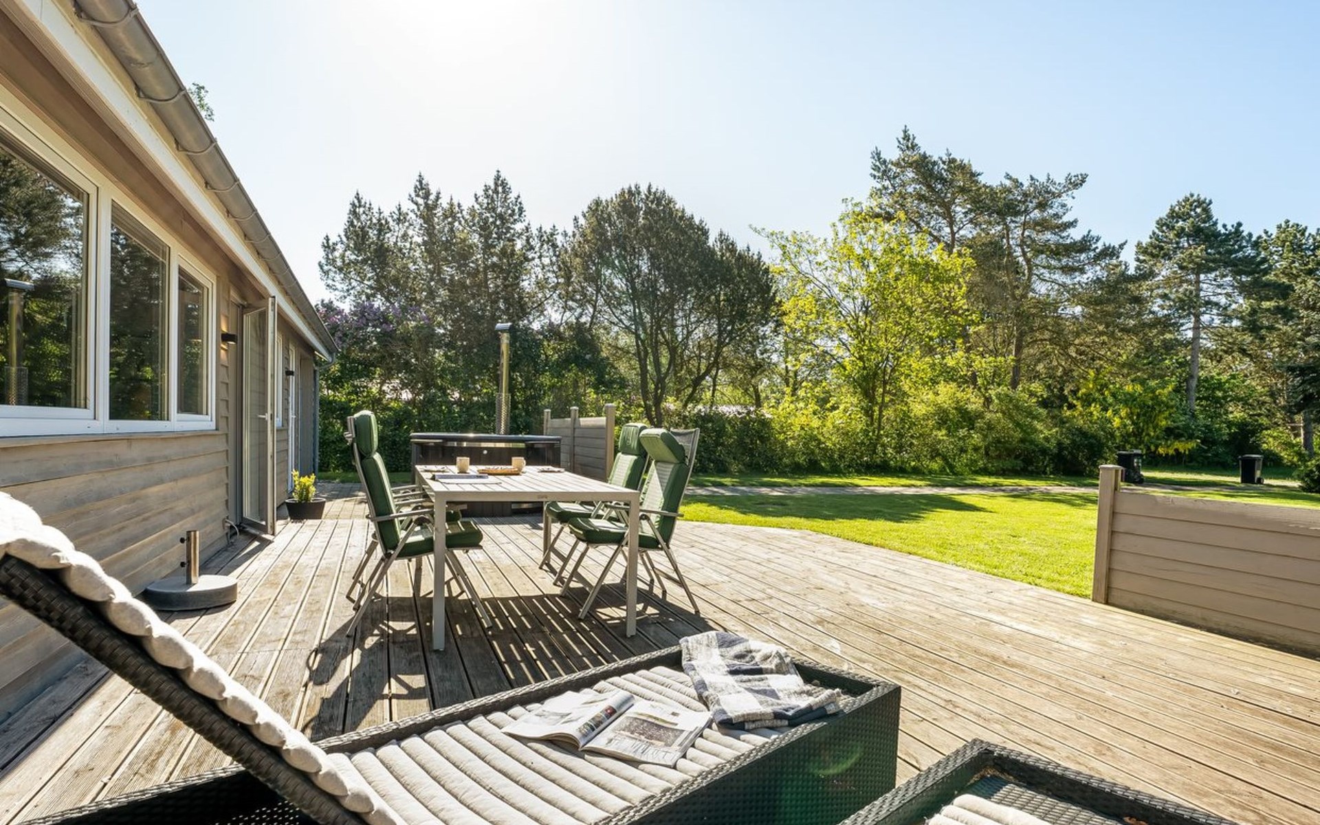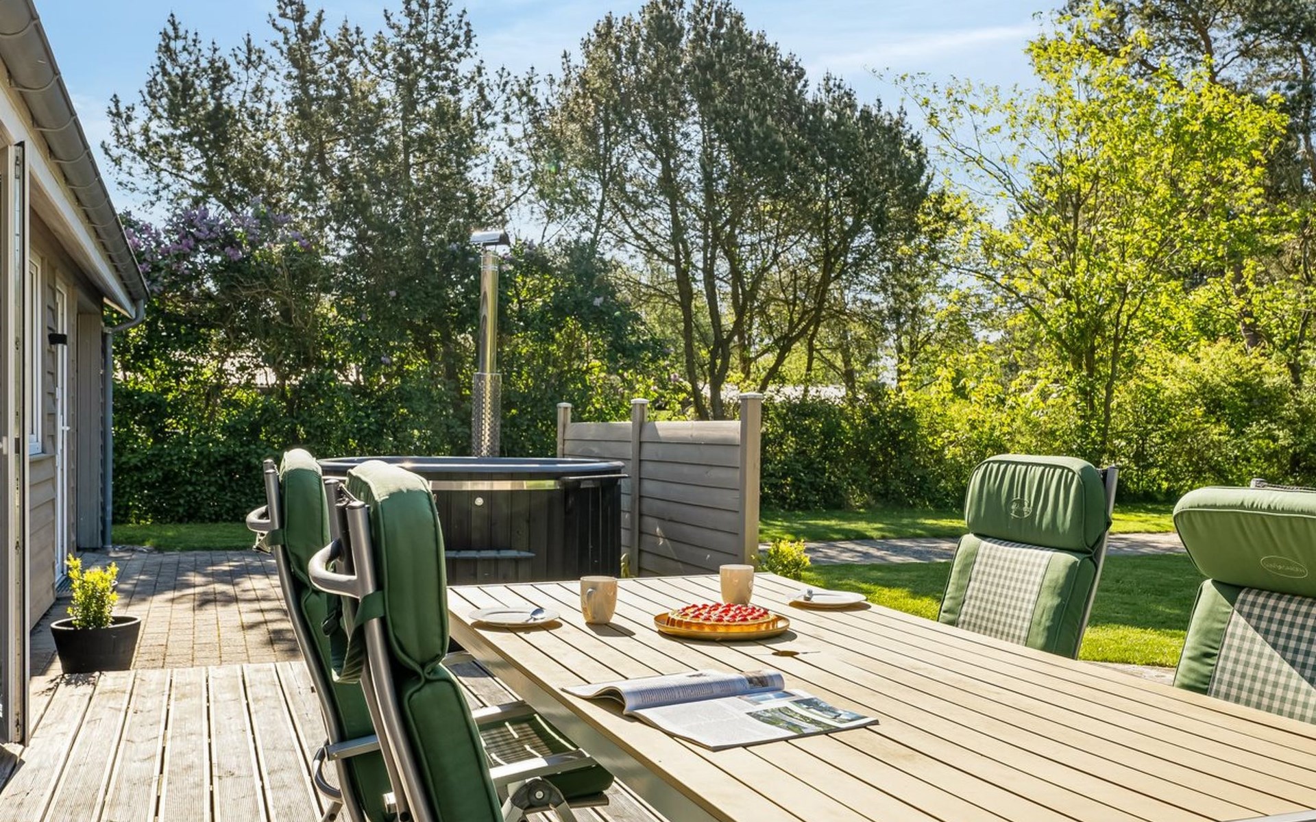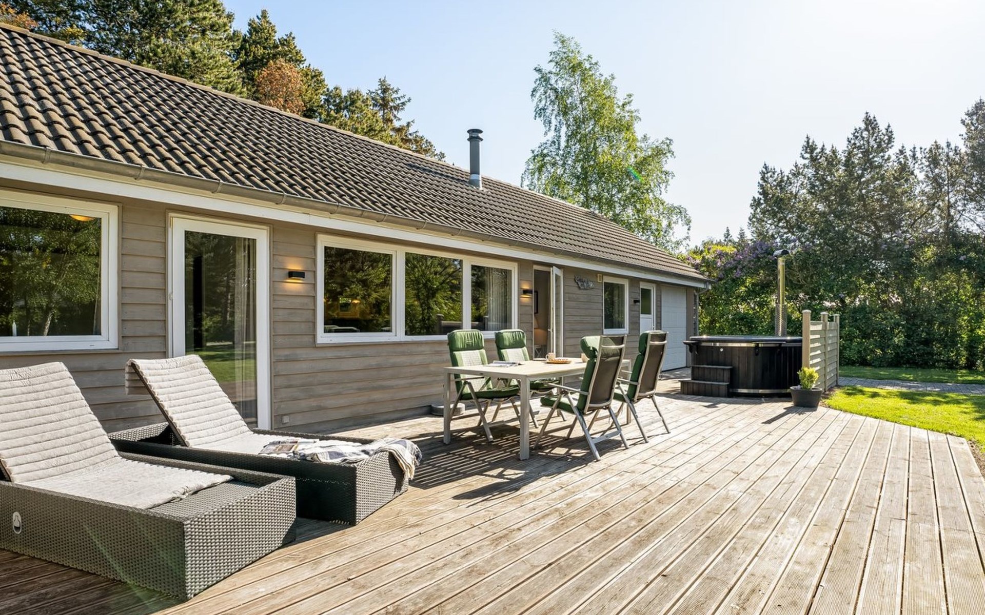 Einfamilienhaus, Baujahr 2009. 700 m vom Meer. Zur Alleinbenutzung: Grundstück 1'200 m2, gepflegter Garten. Grill. Im Hause: Tischfussball, Waschmaschine. Parkplatz beim Haus. E-Ladestation. Lebensmittelgeschäft 1 km. Golfplatz 5 km. Der Besitzer akzeptiert keine Jugendgruppen.