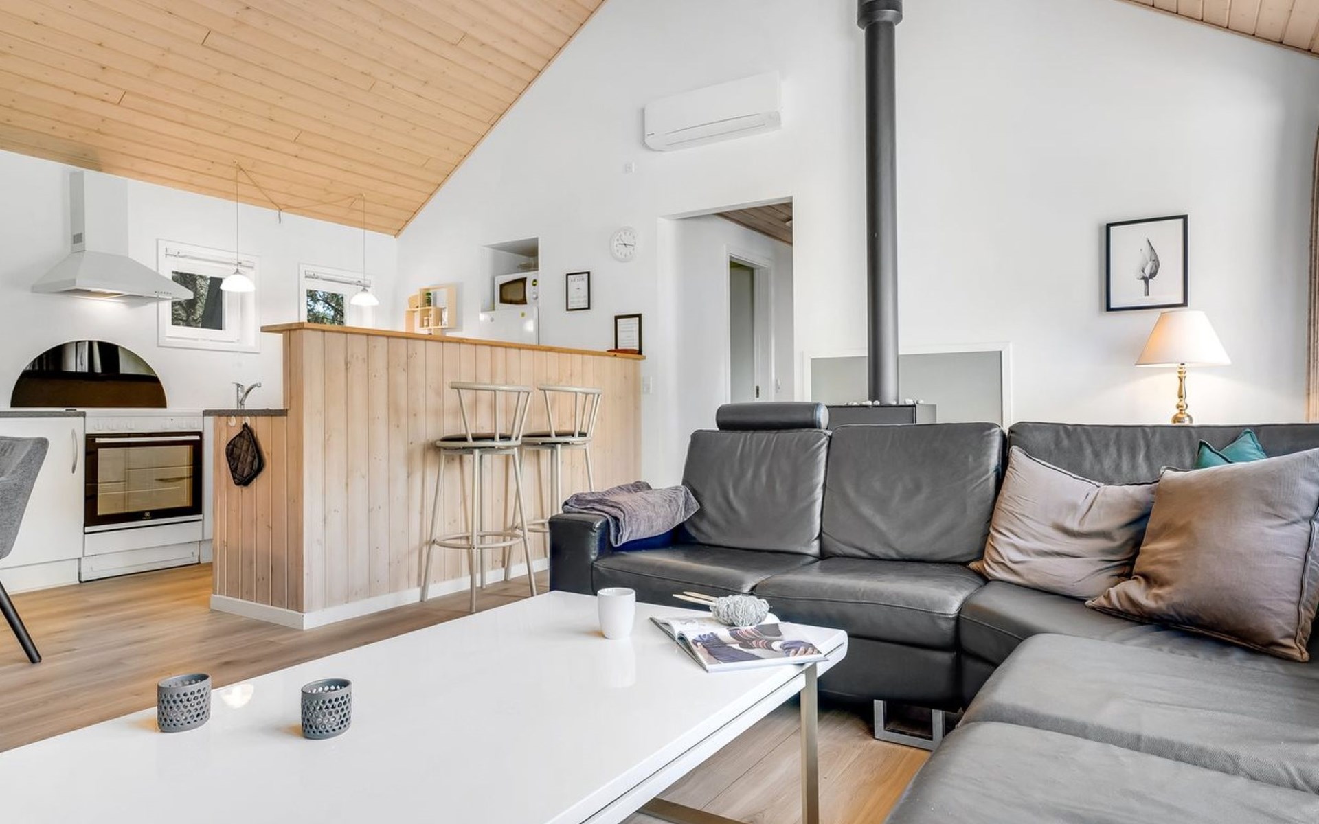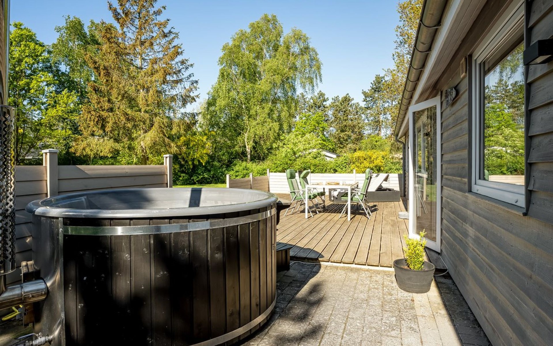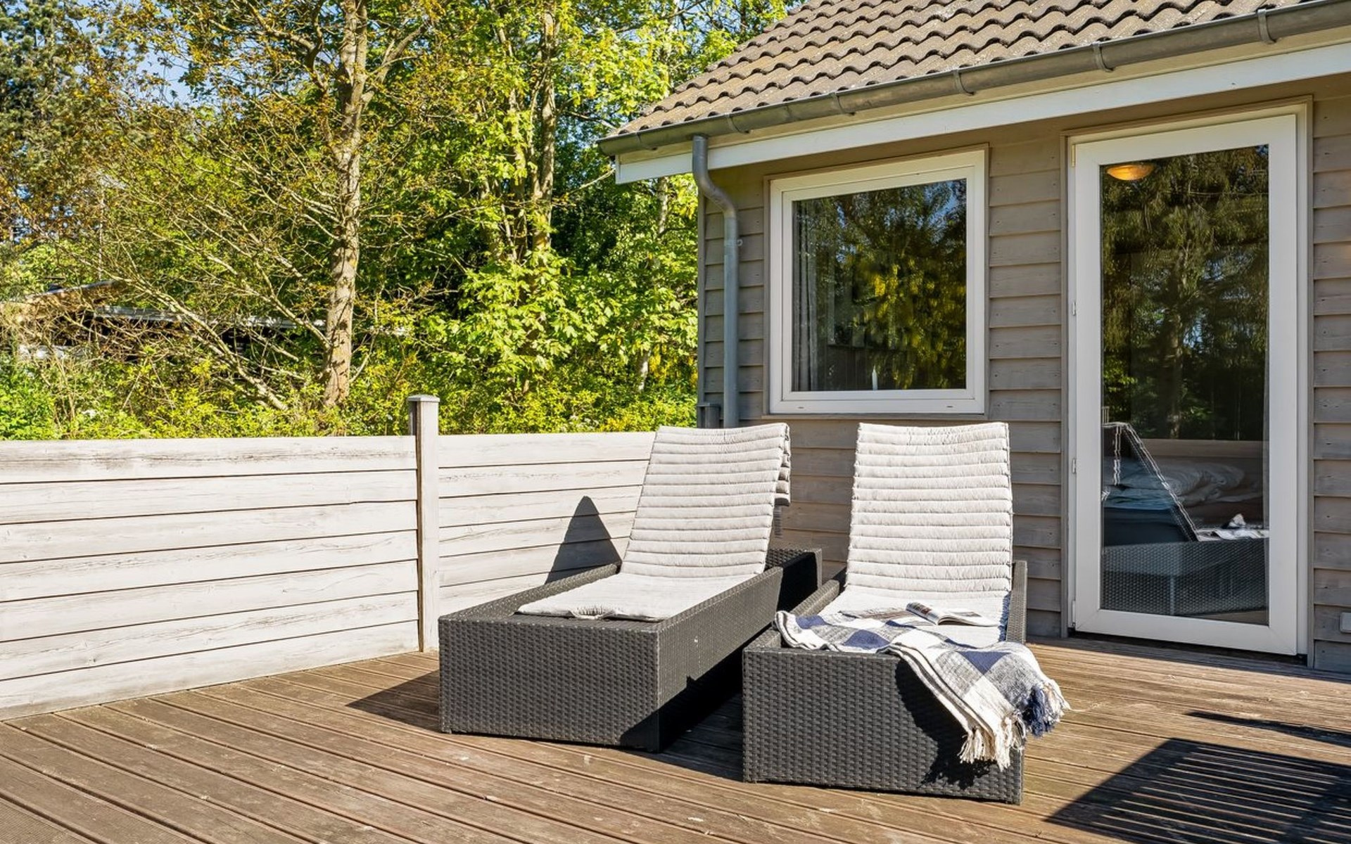 Einfamilienhaus, Baujahr 2009. 700 m vom Meer. Zur Alleinbenutzung: Grundstück 1'200 m2, gepflegter Garten. Grill. Im Hause: Tischfussball, Waschmaschine. Parkplatz beim Haus. E-Ladestation. Lebensmittelgeschäft 1 km. Golfplatz 5 km. Der Besitzer akzeptiert keine Jugendgruppen.