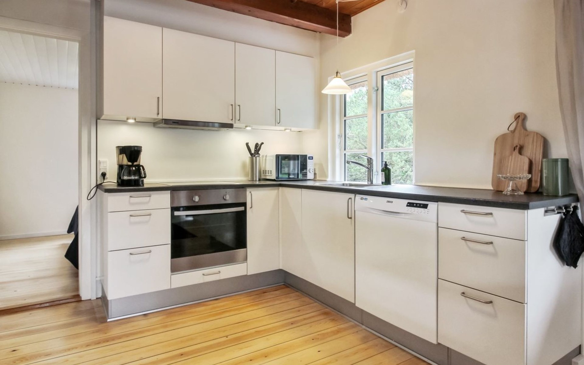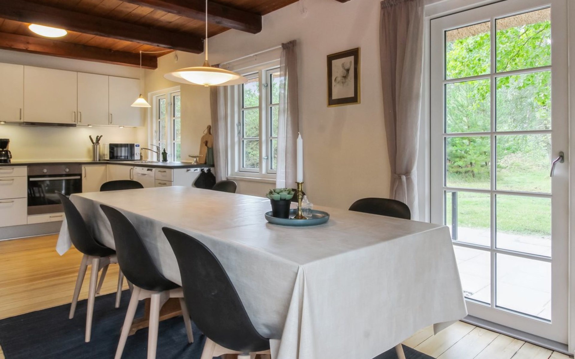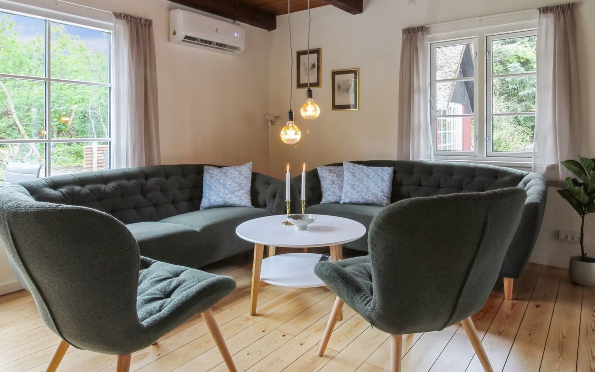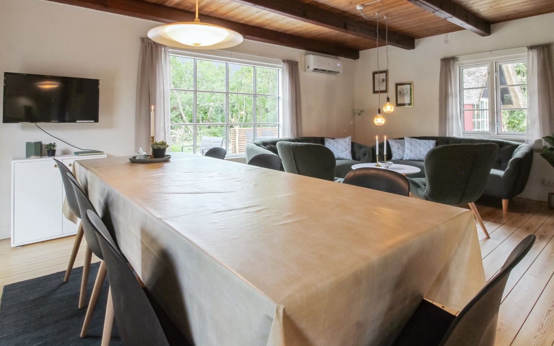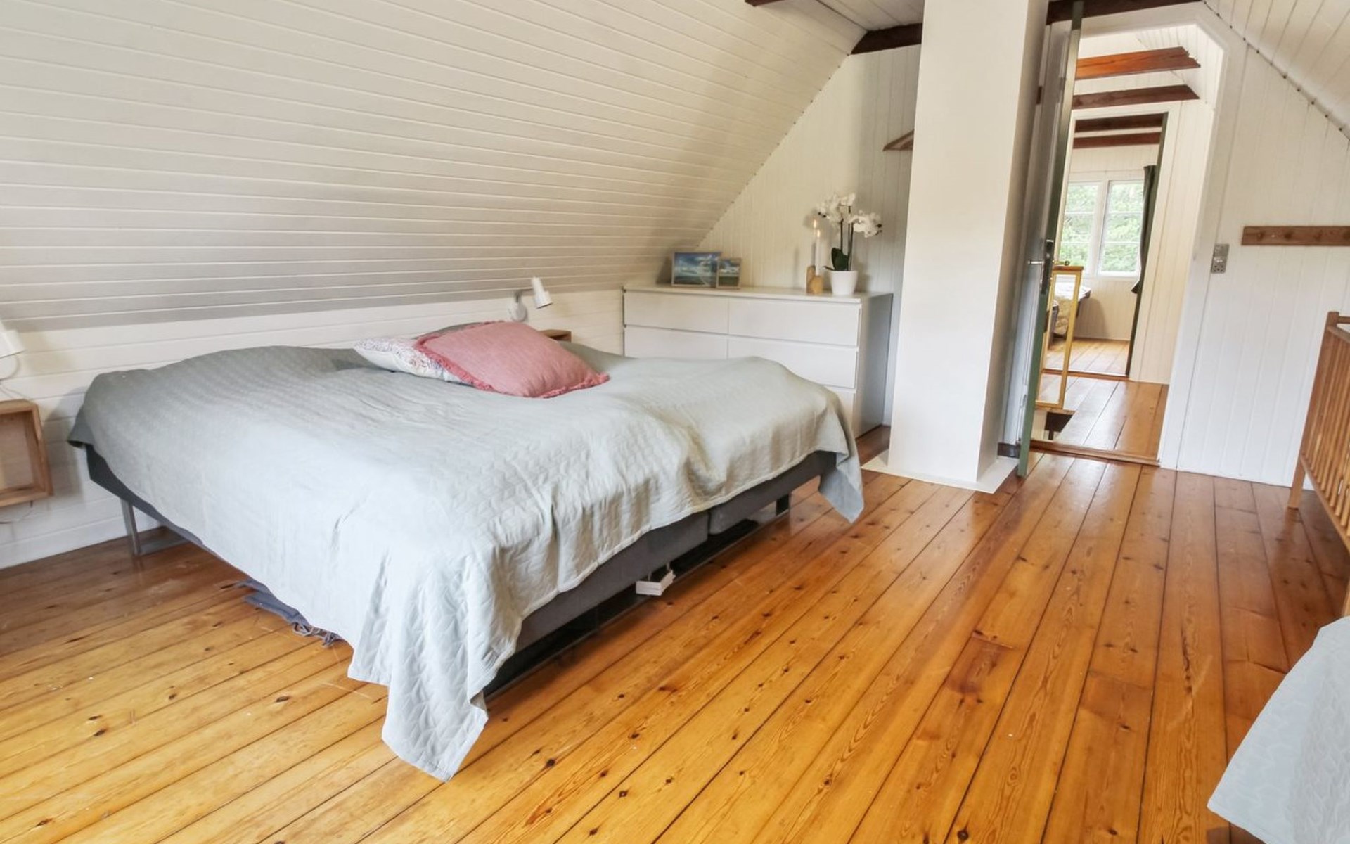 Einfamilienhaus, Baujahr 1966. Zur Alleinbenutzung: naturbelassenes Grundstück 3'870 m2. Grill. Im Hause: Waschmaschine, Wäschetrockner. Parkplatz beim Haus. E-Ladestation. Lebensmittelgeschäft 1.7 km. Golfplatz 4.8 km. Der Besitzer akzeptiert keine Jugendgruppen.