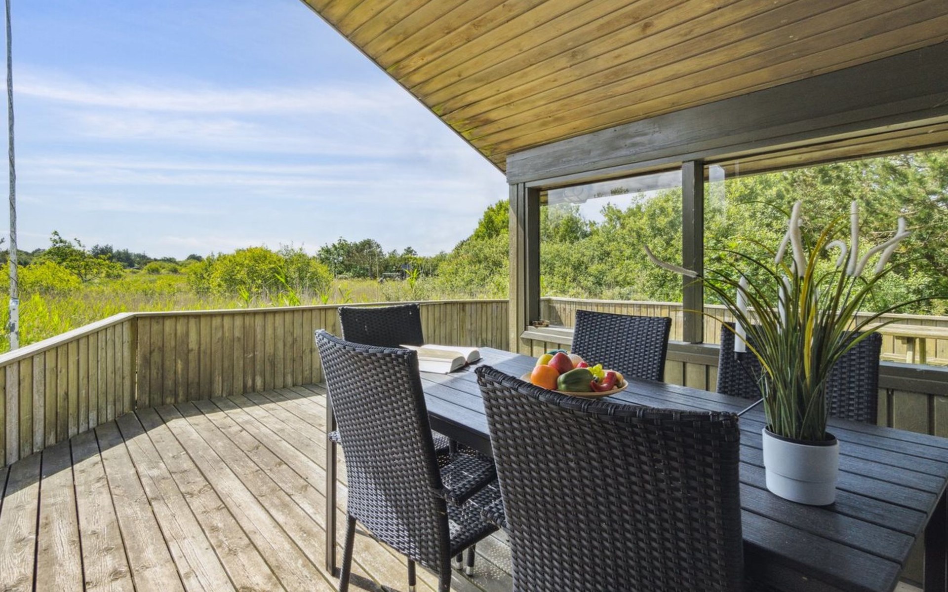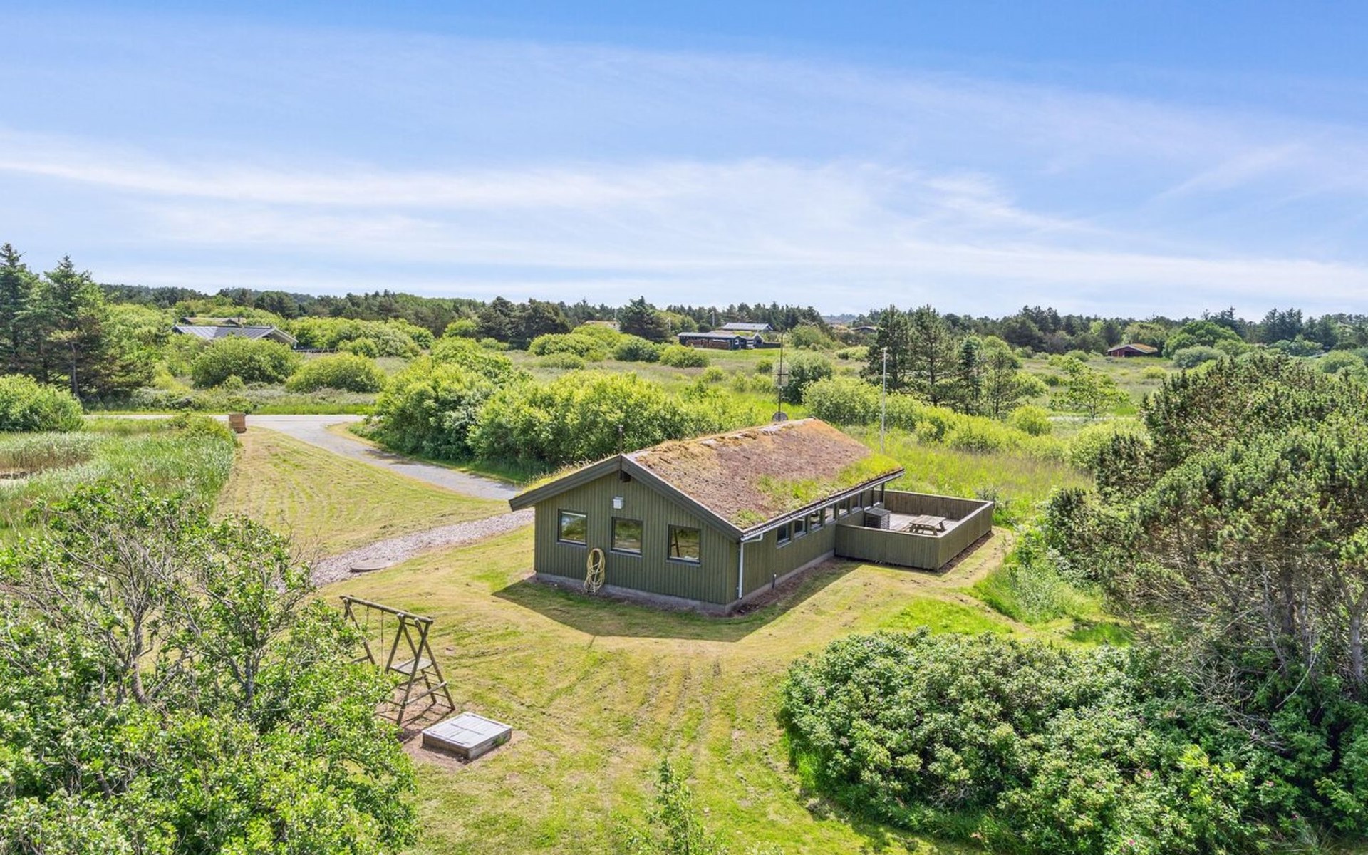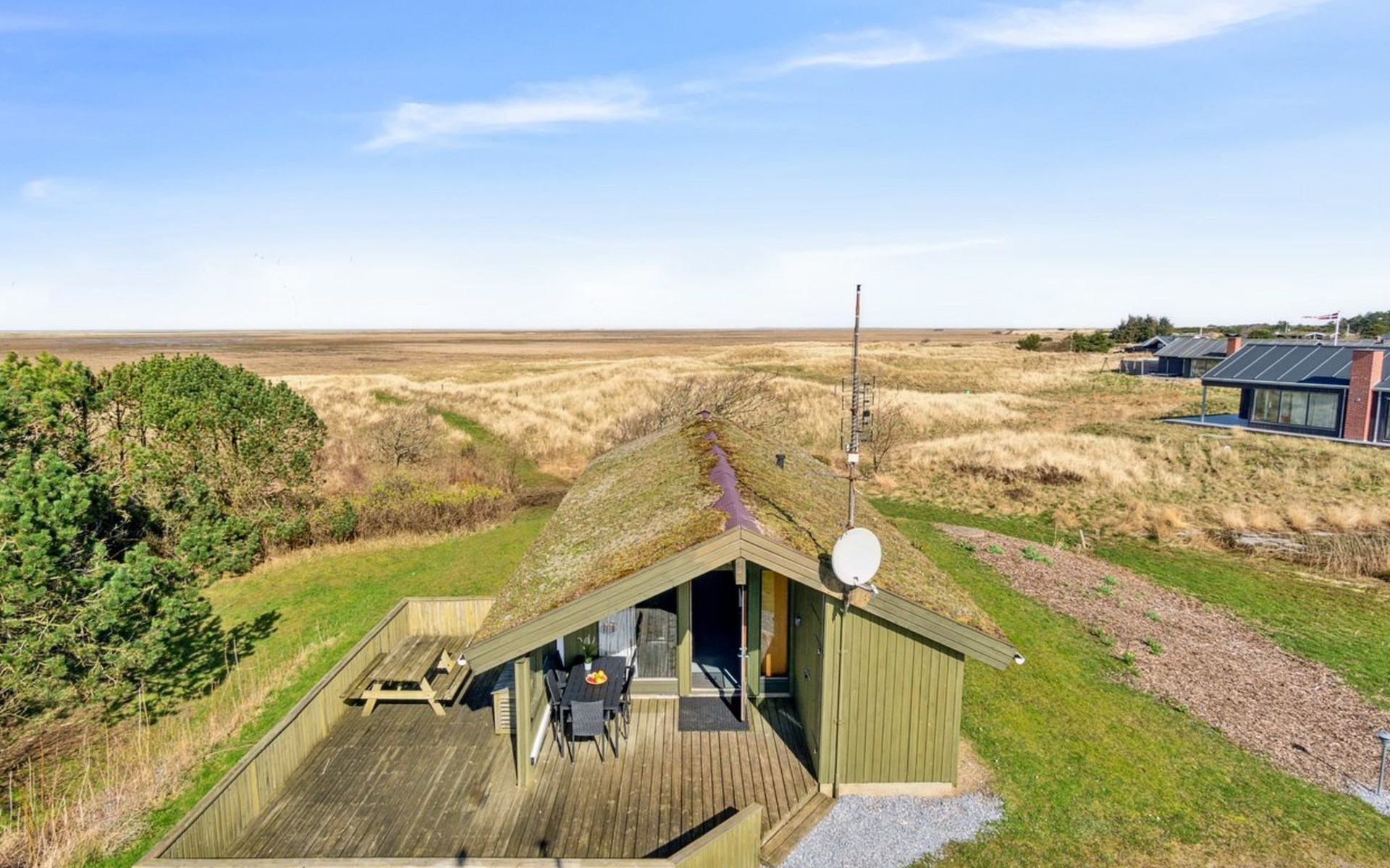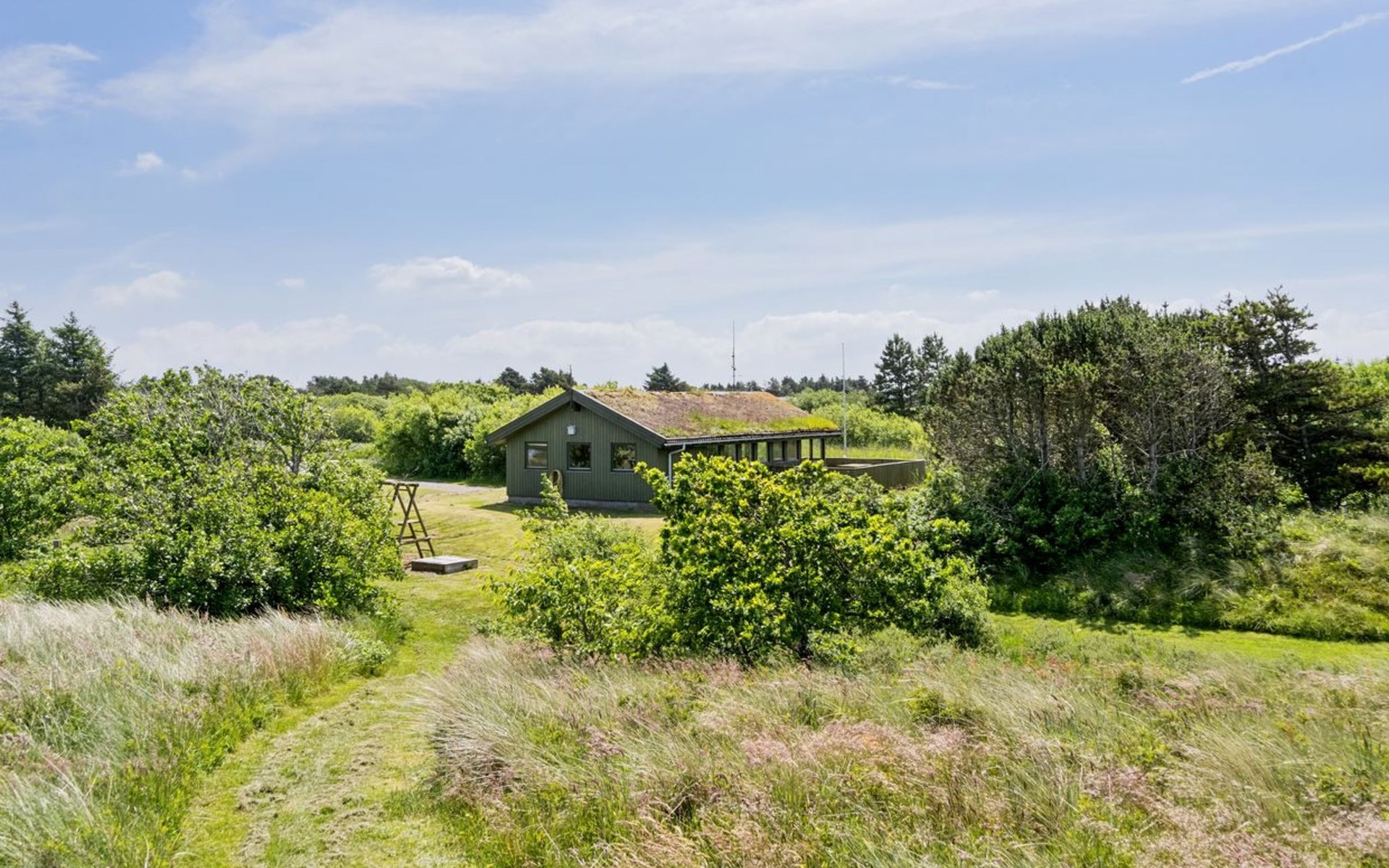 Einfamilienhaus, Baujahr 1985. 1.7 km vom Meer. Zur Alleinbenutzung: naturbelassenes Grundstück 12'000 m2. Kinderspielplatz (Schaukel). Im Hause: Waschmaschine. Parkplatz beim Haus. E-Ladestation. Lebensmittelgeschäft 1.6 km. Golfplatz 7.9 km. Der Besitzer akzeptiert keine Jugendgruppen.