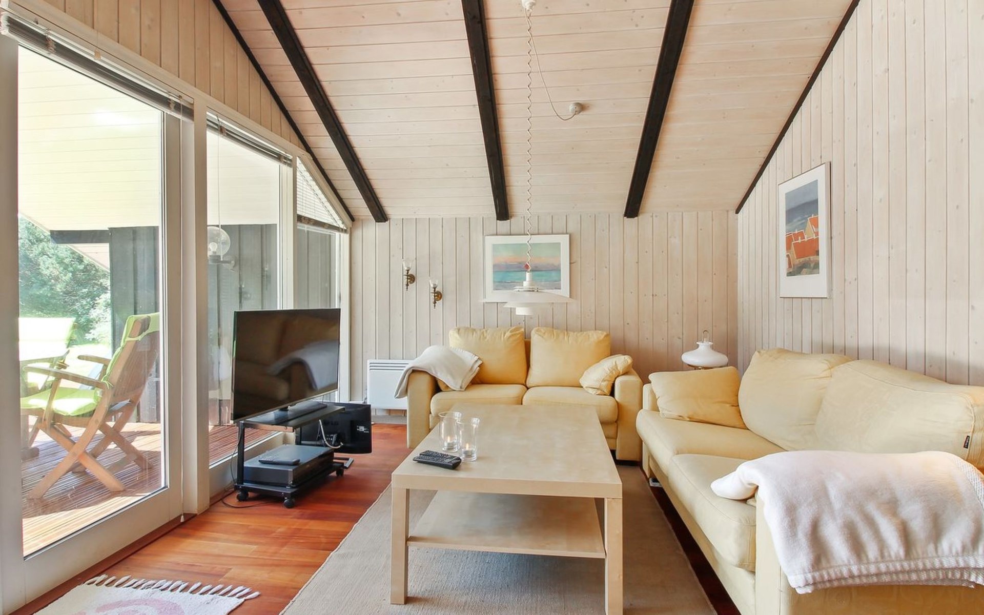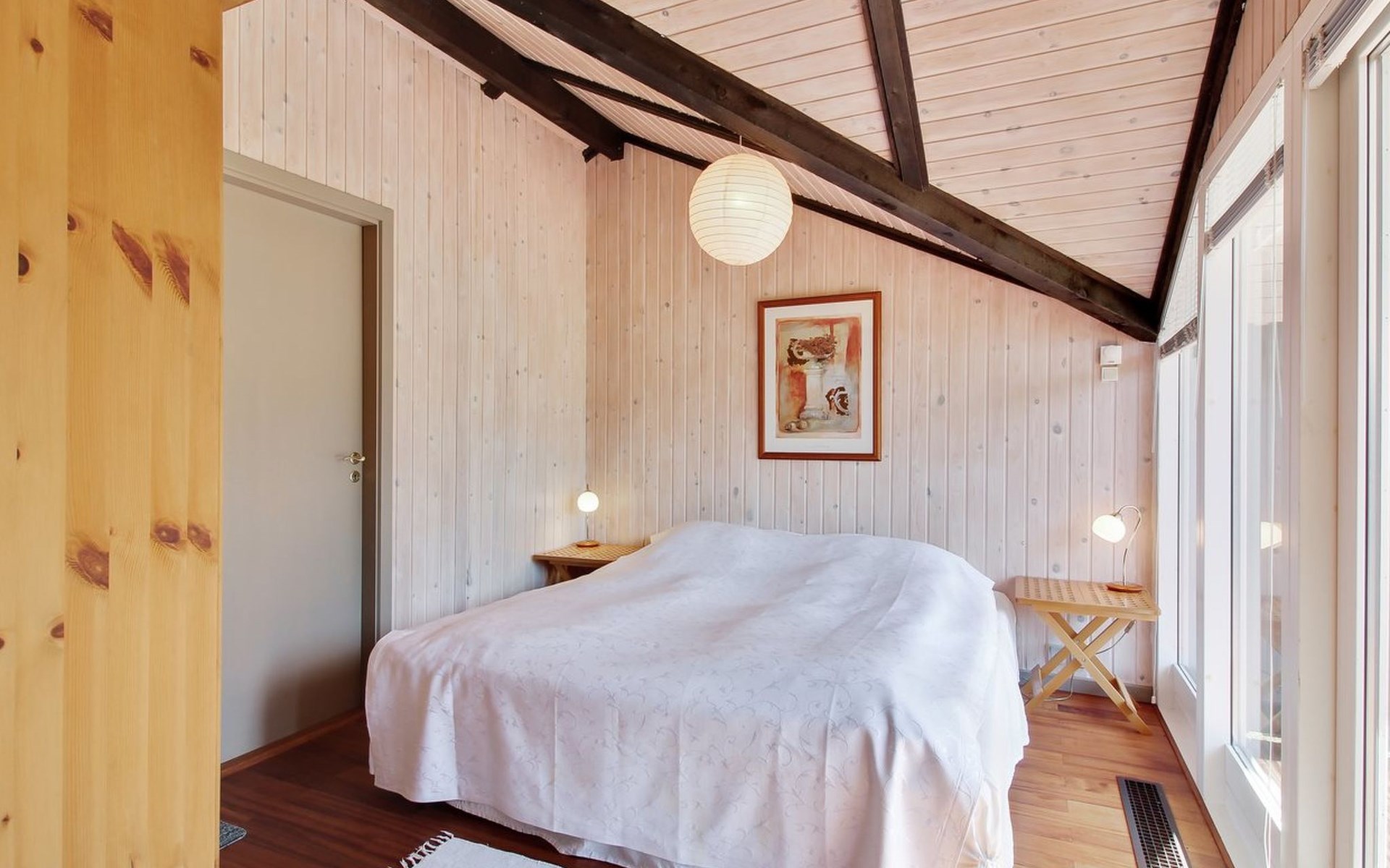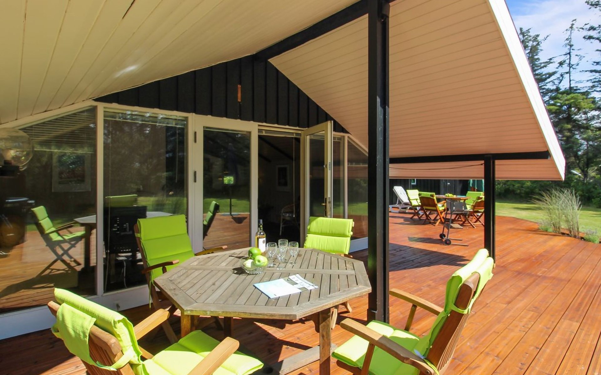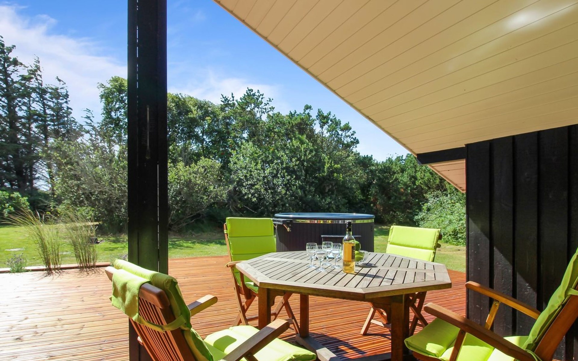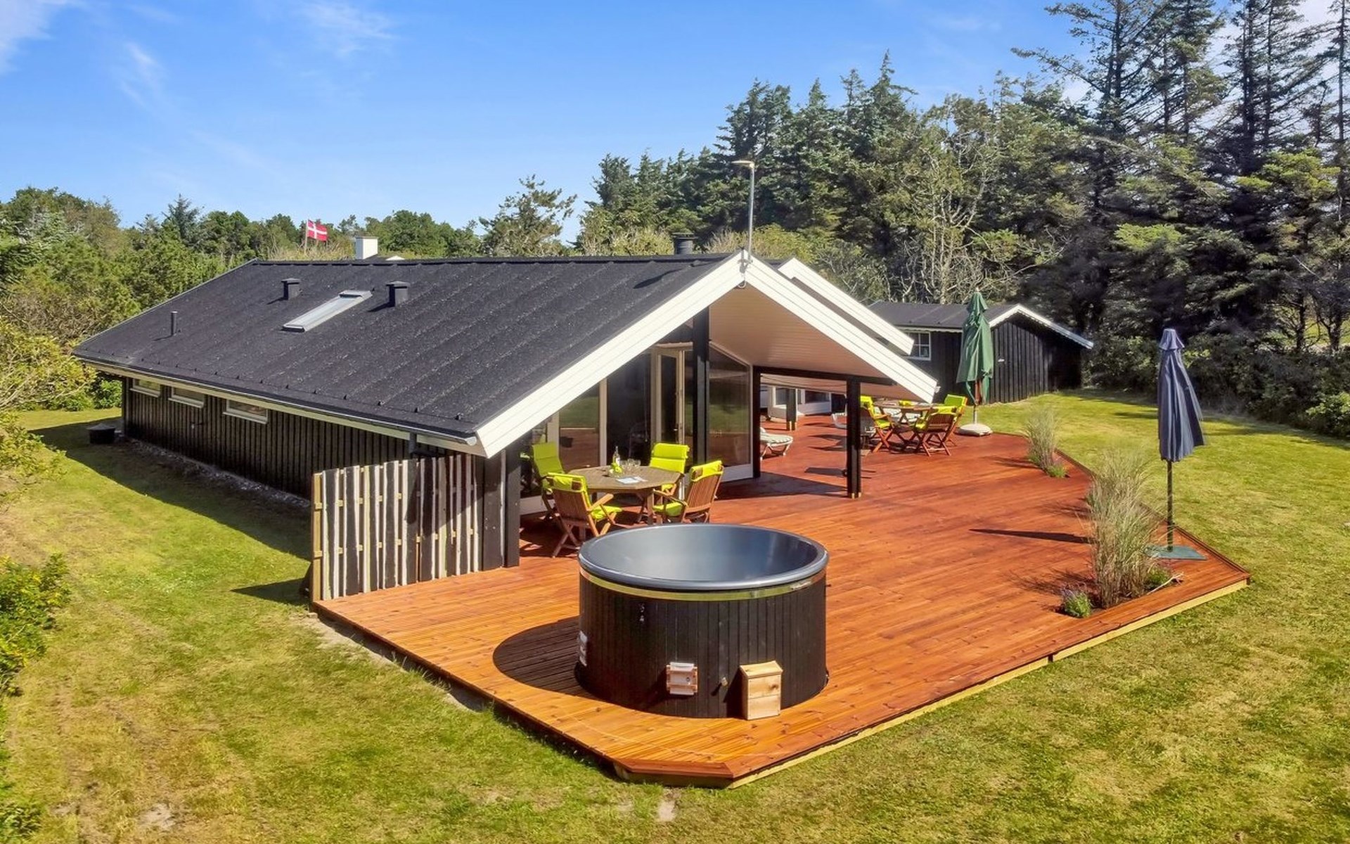 Einfamilienhaus, Baujahr 1976. 700 m vom Meer. Zur Alleinbenutzung: naturbelassenes Grundstück 1'262 m2. Terrasse (75 m2), Grill. Im Hause: Waschmaschine, Wäschetrockner. Parkplatz beim Haus. Lebensmittelgeschäft 3.5 km. Golfplatz 5 km. Der Besitzer akzeptiert keine Jugendgruppen.