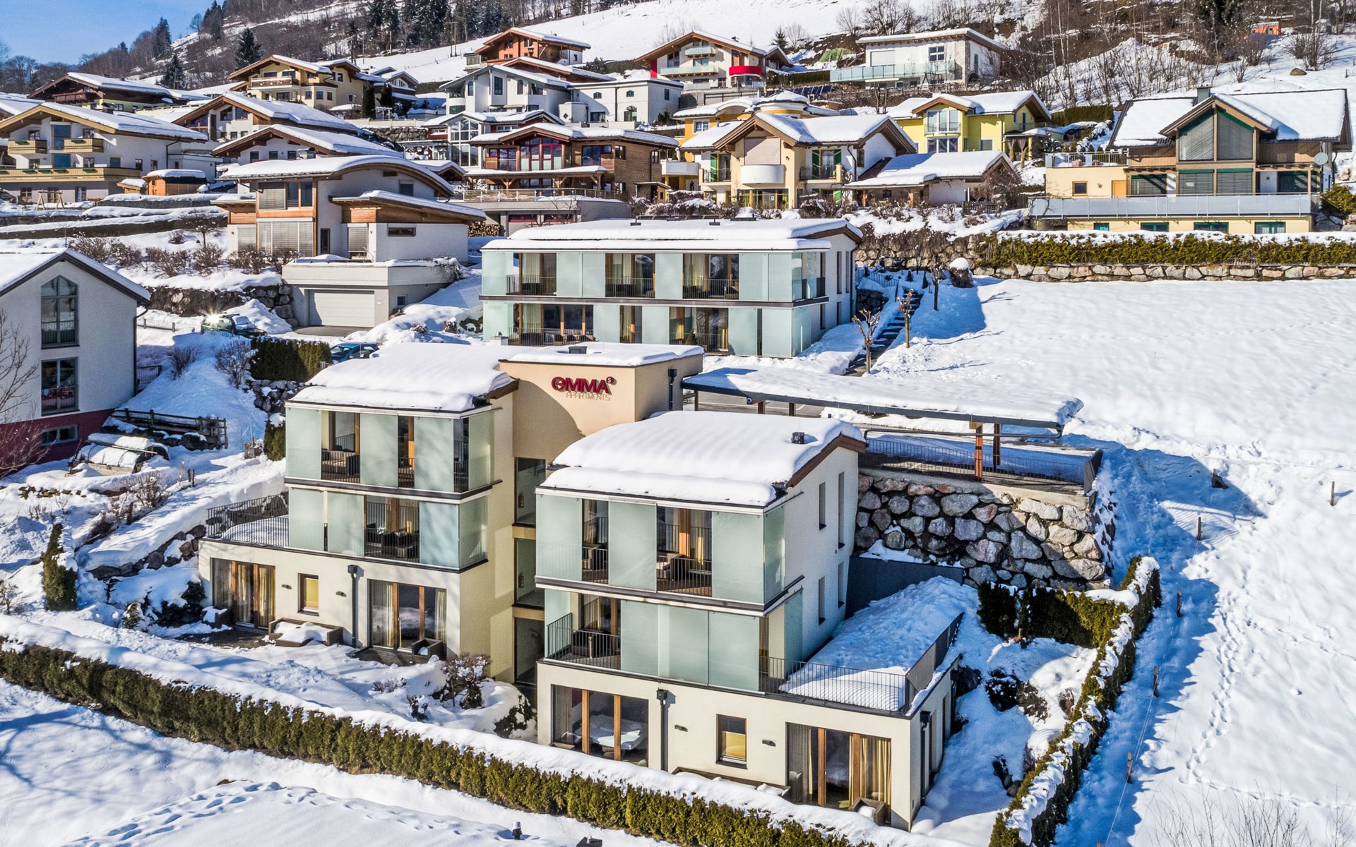 Piesendorf-Fürth: Modernes, komfortables Appartementhaus "Emma", auf 3 Stockwerken. 2 Häuser in der Residenz. Sonnige, erhöhte Lage am Hang, 1 km vom See, 2.5 km vom Skigebiet. Im Hause: Sauna (extra). Skiraum, Skischuhtrockner. Brötchenservice. Im Winter bitte Schneeketten mitbringen. Parkplatz (überdacht) beim Haus. Supermarkt 2.5 km, Restaurant 280 m, Bushaltestelle "nach Kaprun und Zell am See" 500 m, Freibad 3 km, Thermalbad "Tauern Spa Kaprun" 1.7 km. Golfplatz (36 Loch) 2.5 km, Gondelbahn 2.7 km, Langlaufloipe 1 km. Bekannte Skigebiete sind gut erreichbar: Maiskogel 2.7 km, Schmittenhöhe 8.9 km, Kitzsteinhorn 9 km. Bekannte Seen in der Umgebung sind gut erreichbar: Zeller See 6.5 km. Die Mietobjekte können sich in Wohnfläche, Raumaufteilung, Ausstattung und Einrichtung unterscheiden. Der Check-In für die Emma Apartements befindet sich im Appartementhaus Emma Deluxe (Fürth 153, 5721 Piesendorf). Spätanreisen nur nach vorheriger Absprache möglich (24h vorab).