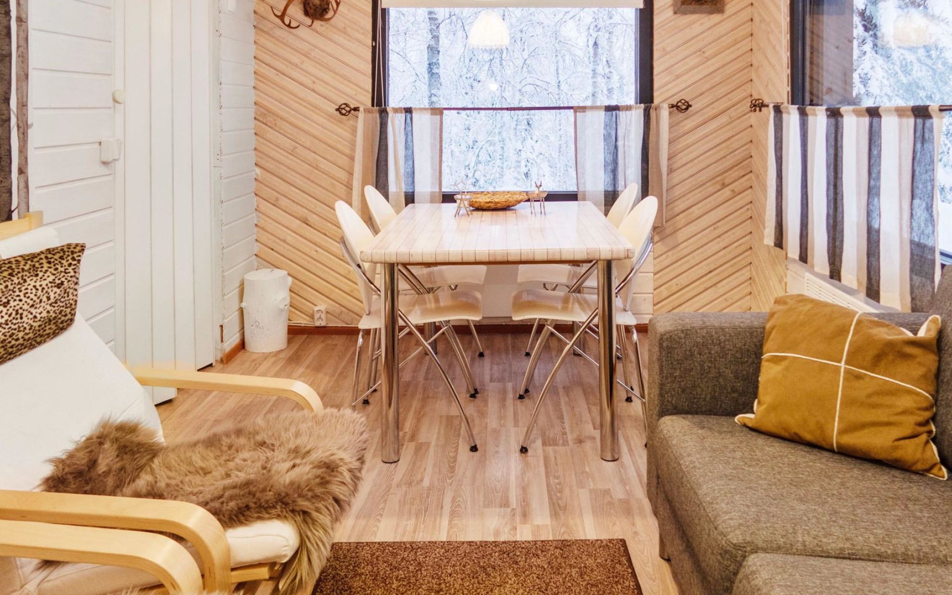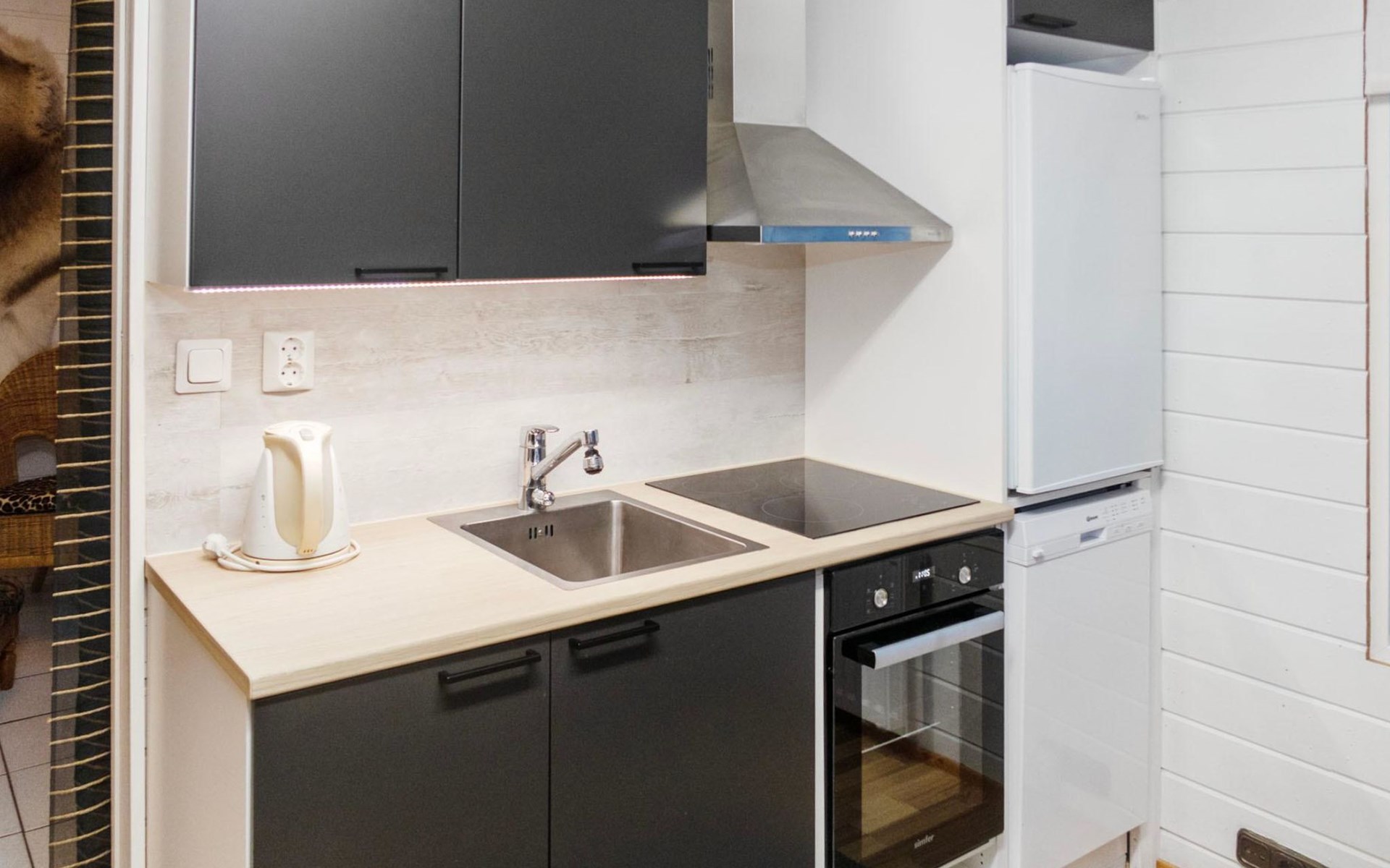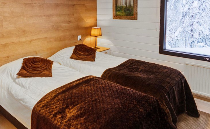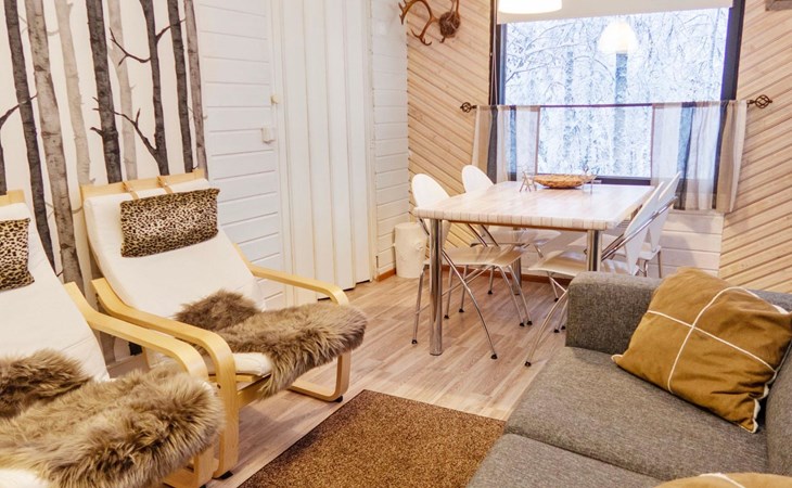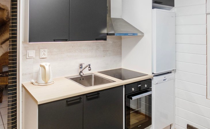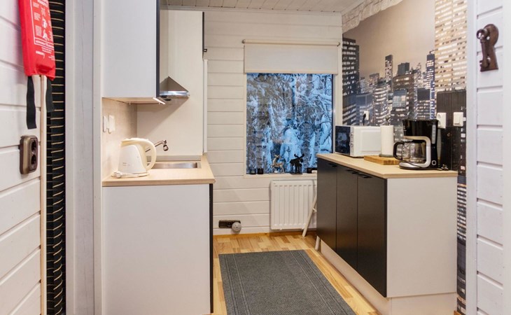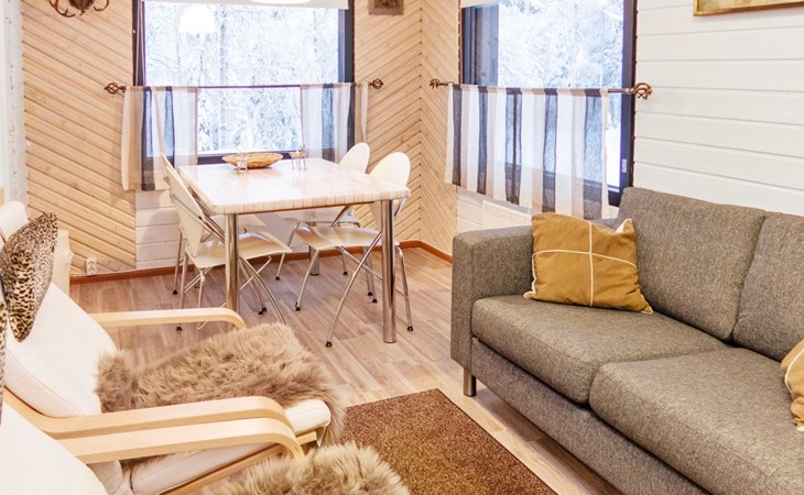 20 km to the north from Kuusamo, Ruka 7 km, pond Mustalampi 100 m. Wooden cabin built in 1990 and extended in 2012. Completely renovated inside in 2022.