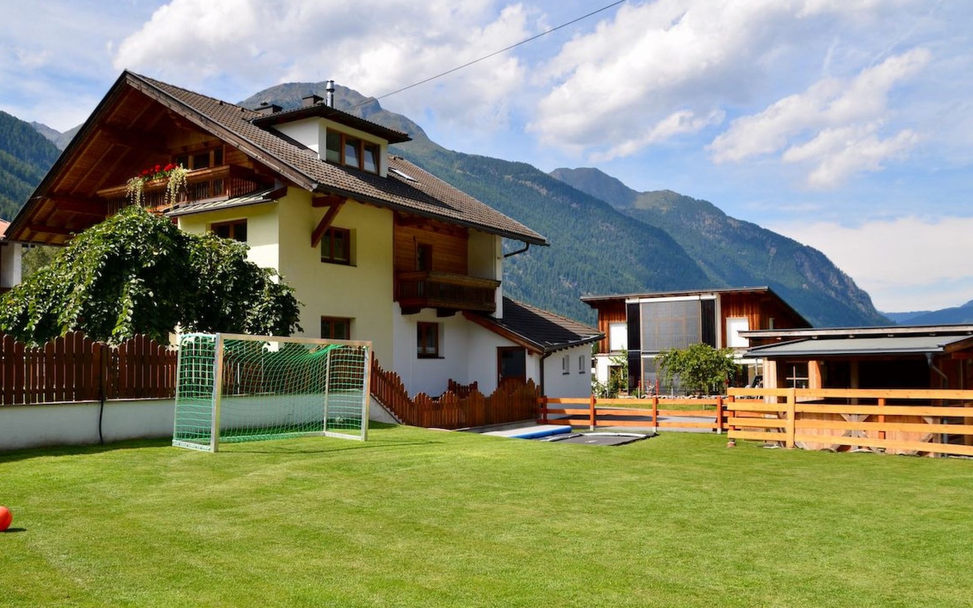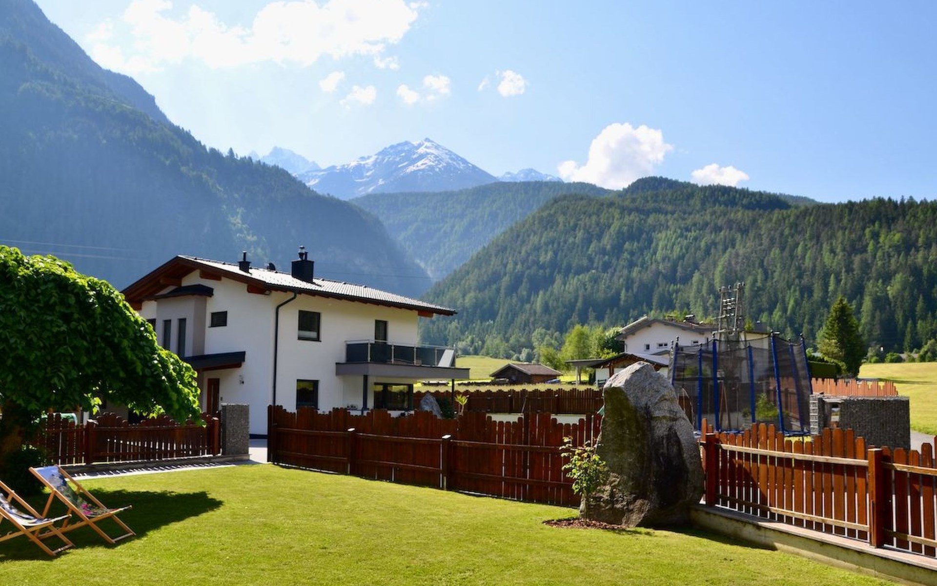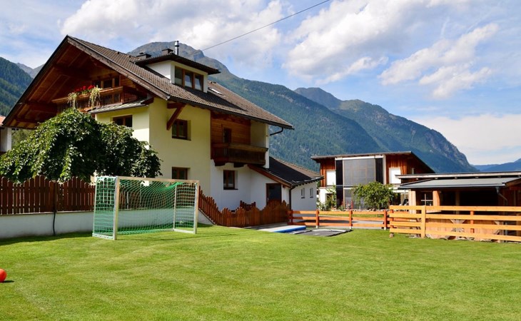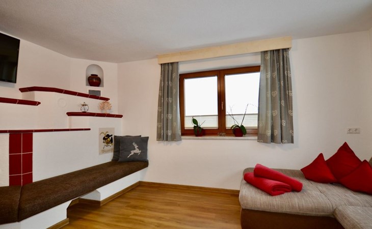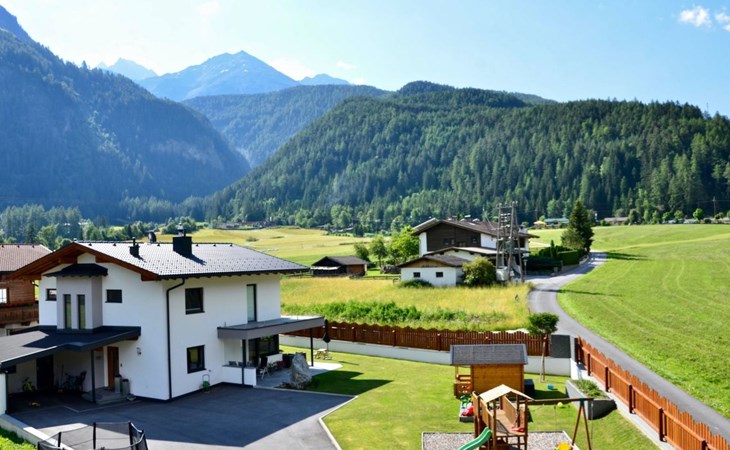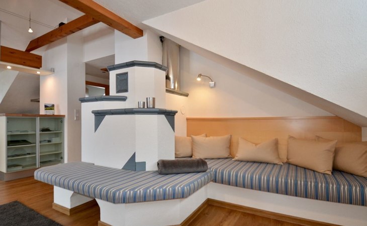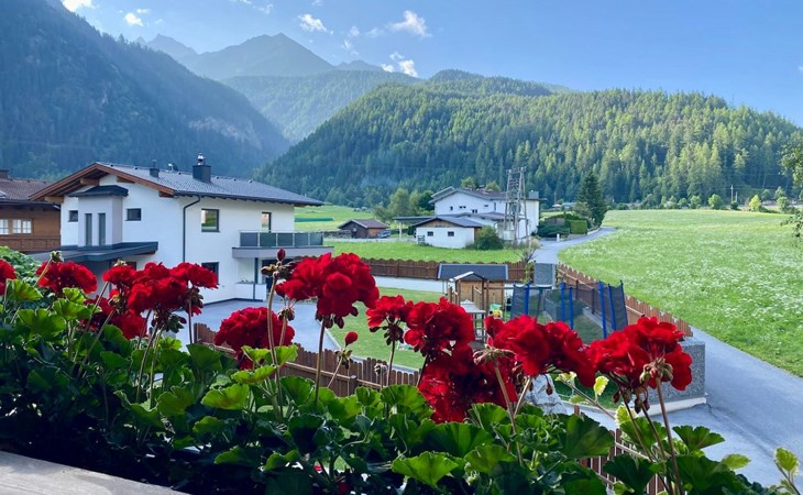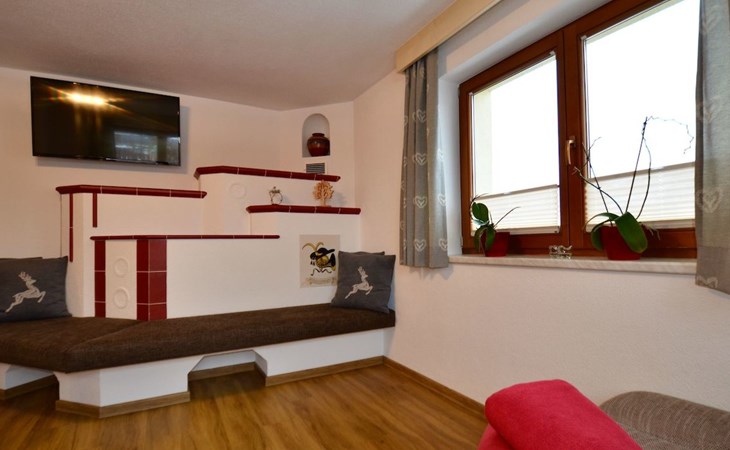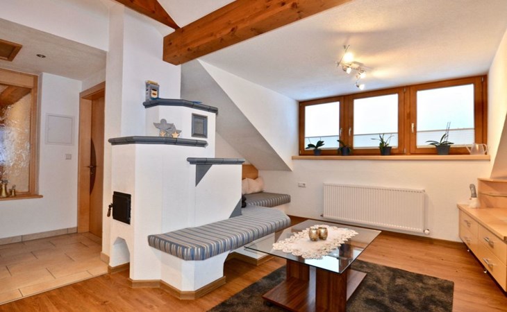 Im 2. Obergeschoss befindet sich zudem ein Wohnbereich mit Kachelofen und Ofenbank. Von hier aus hat man einen traumhaften Ausblick auf die Ötztaler Bergwelt. Im Garten befindet sich eine Sitzecke mit Grillmöglichkeit und ein Spielplatz mit Trampolin.