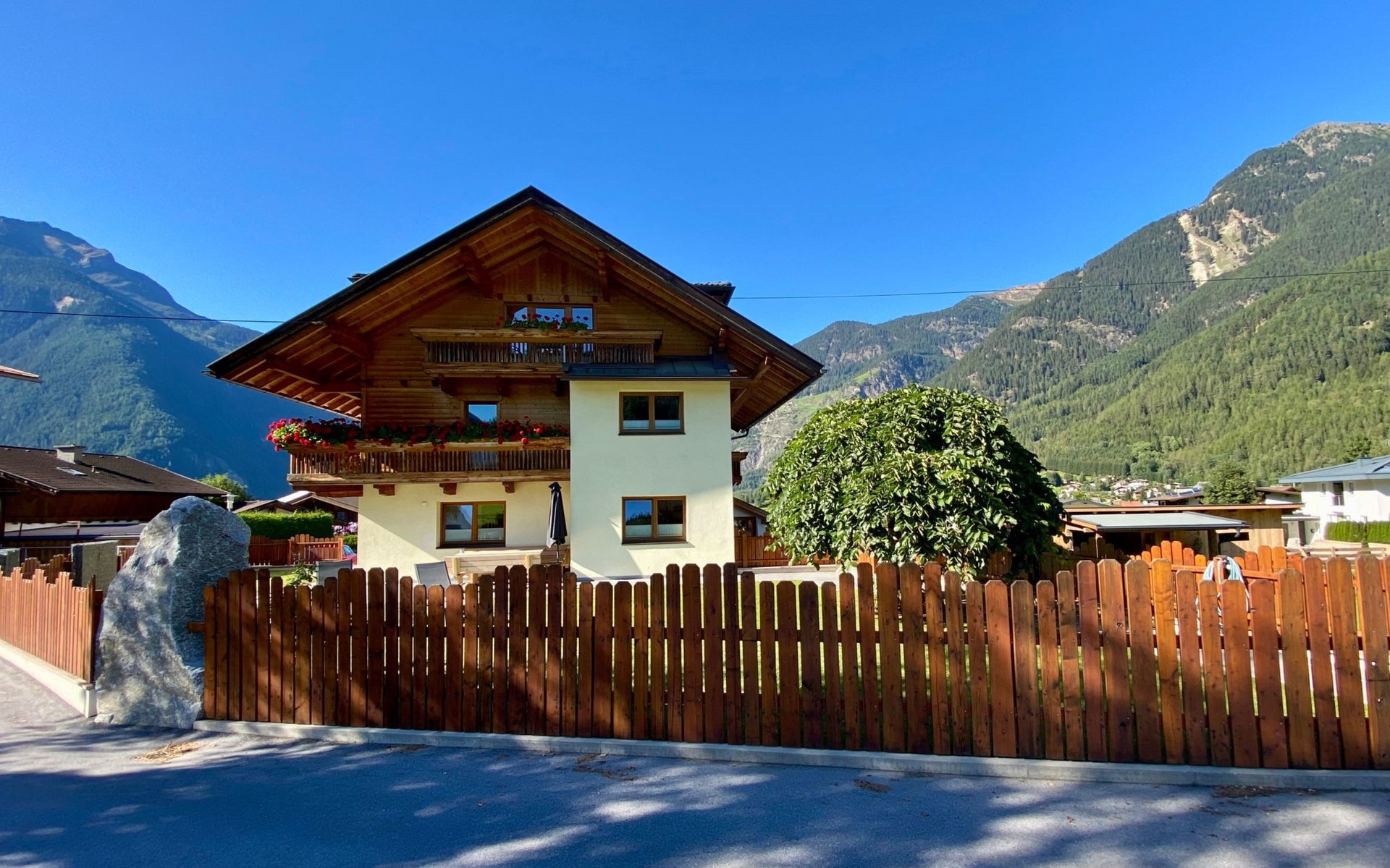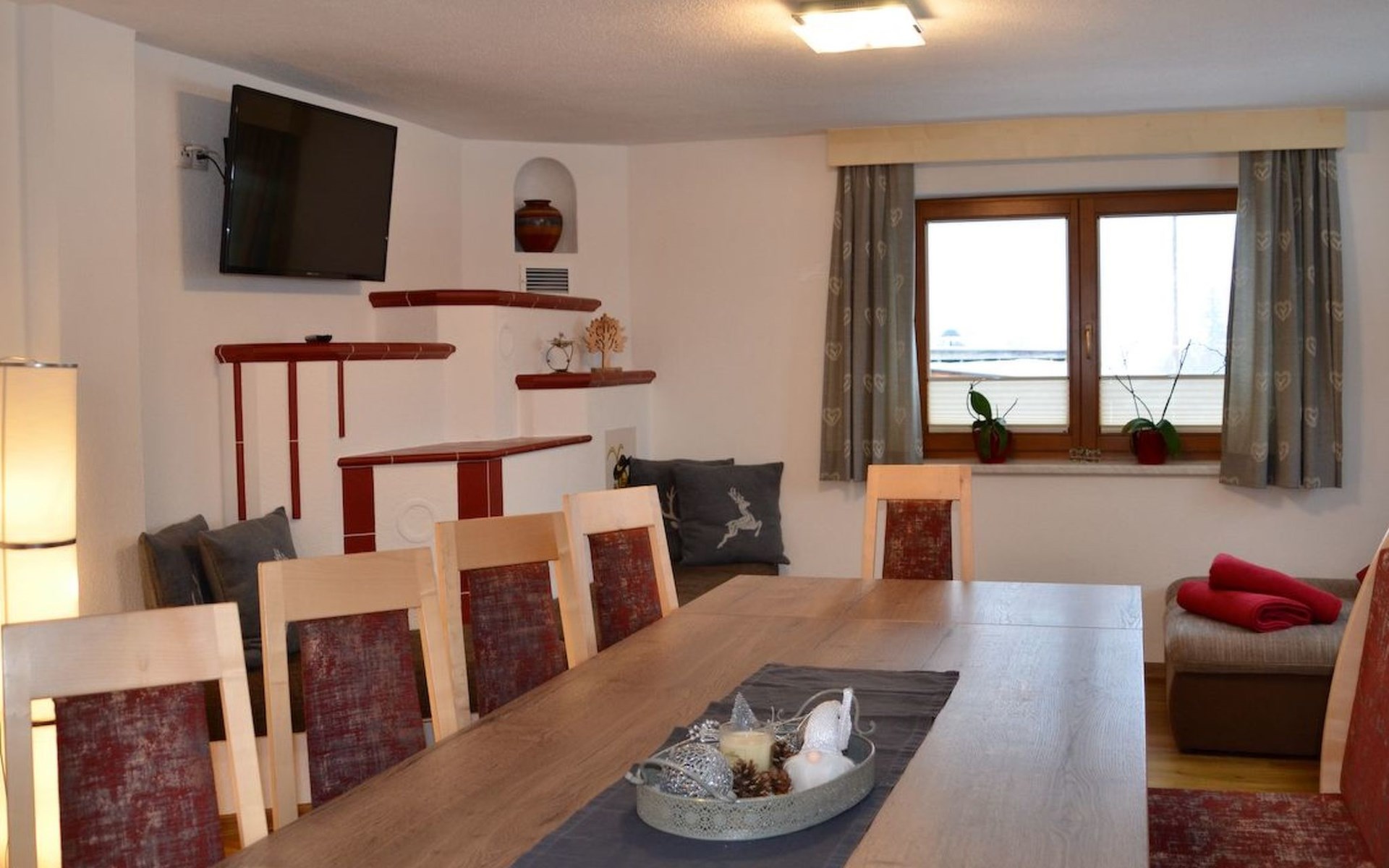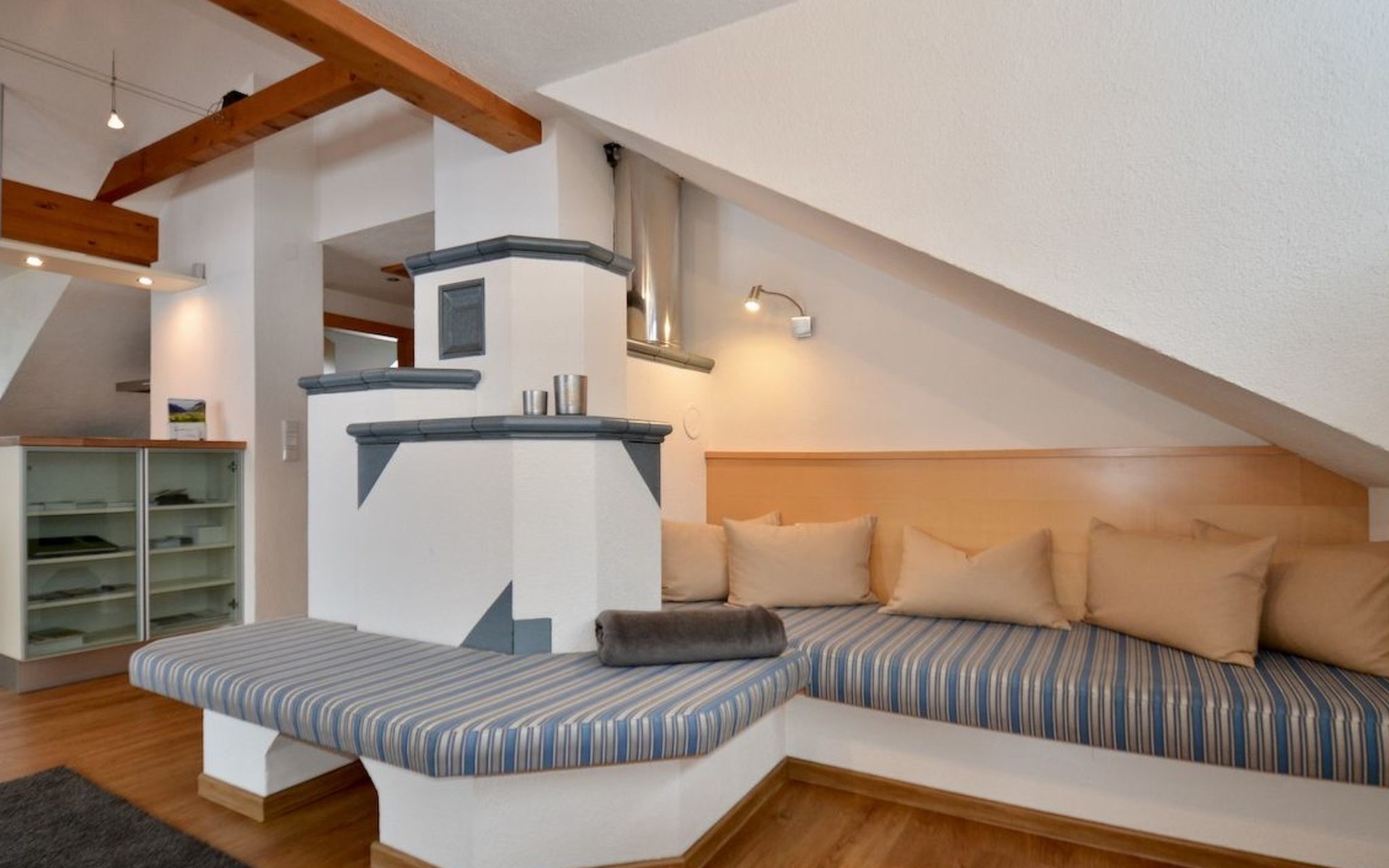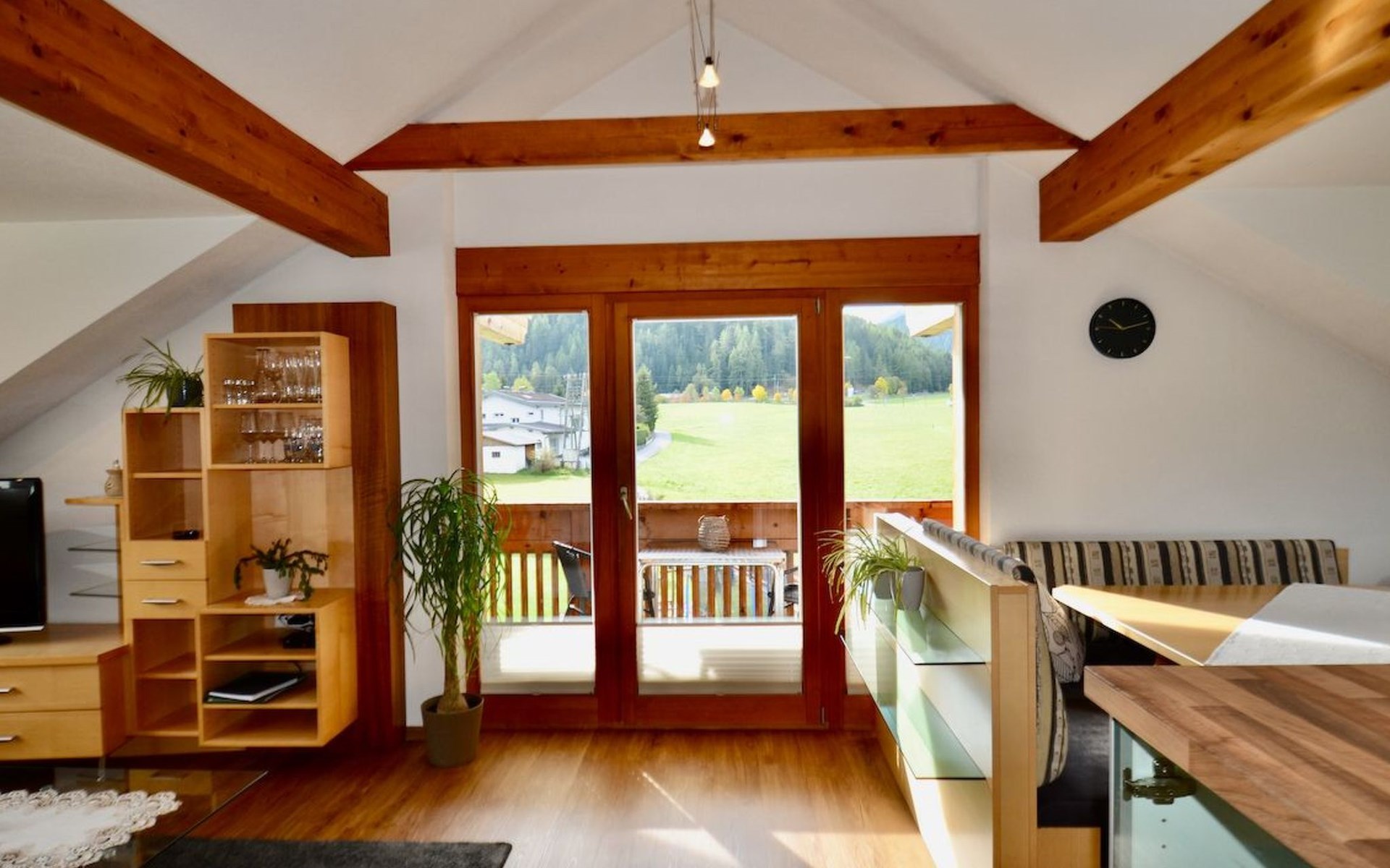 Im 2. Obergeschoss befindet sich zudem ein Wohnbereich mit Kachelofen und Ofenbank. Von hier aus hat man einen traumhaften Ausblick auf die Ötztaler Bergwelt. Im Garten befindet sich eine Sitzecke mit Grillmöglichkeit und ein Spielplatz mit Trampolin.