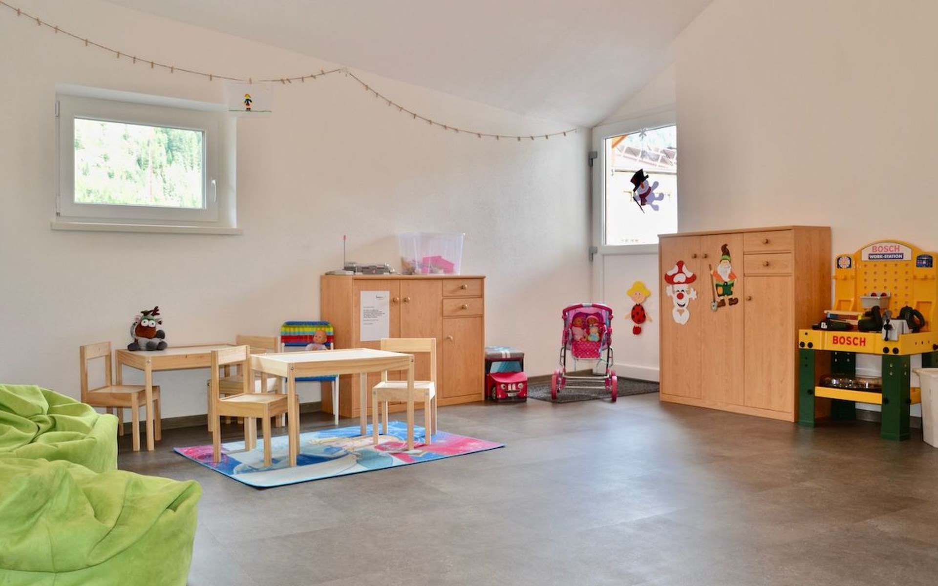 Im Freizeit- bzw. Spieleraum finden Sie Spielzeug für Ihre Kleinsten, eine Tischtennisplatte und ein Skischuhtrockner.