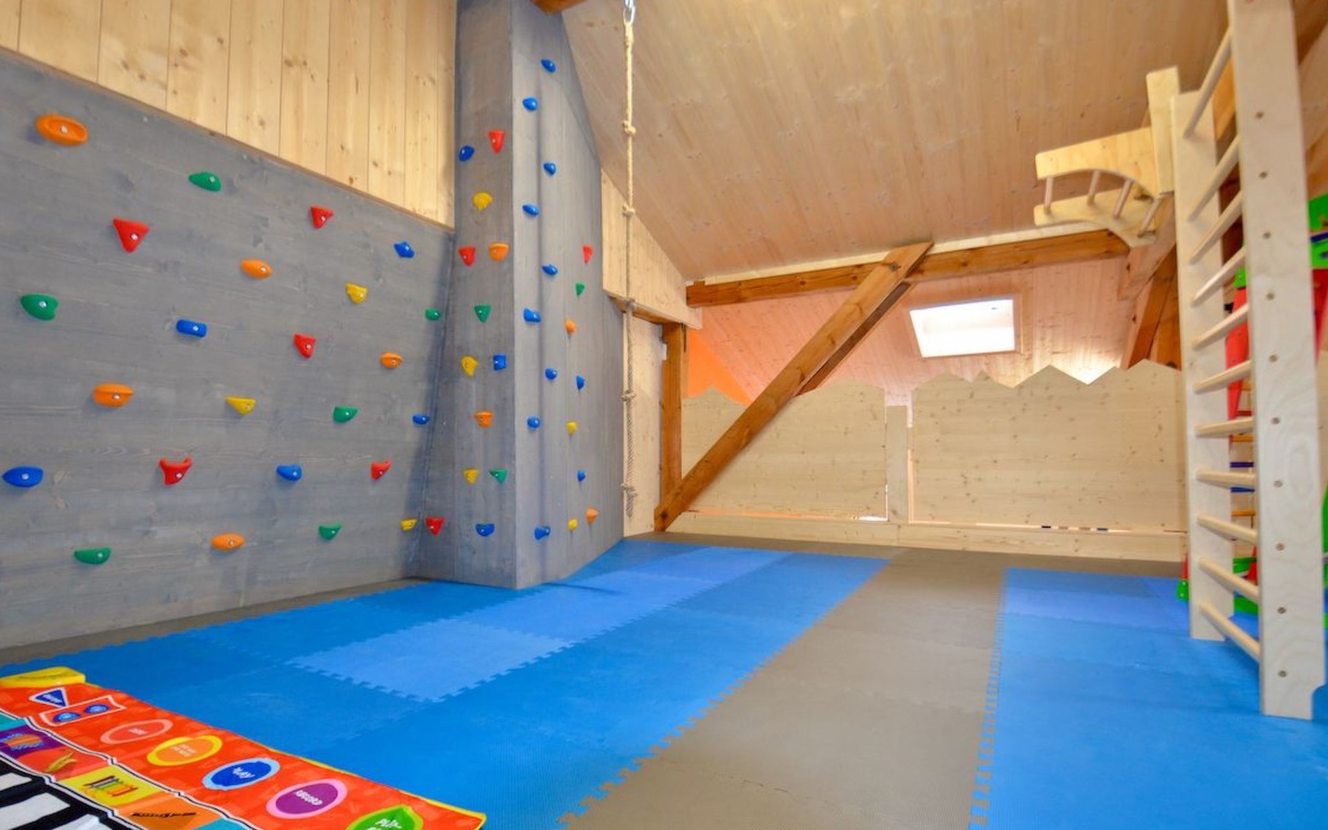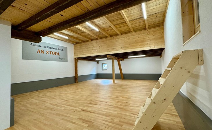 In unserem "Erlebnisstodl" finden Sie einen Kreativraum zum Basteln und Malen, eine Turnwelt mit Boulderbereich und einen Spieleraum mit Playmobil und Lego (für Kinder von 0-8 Jahre).